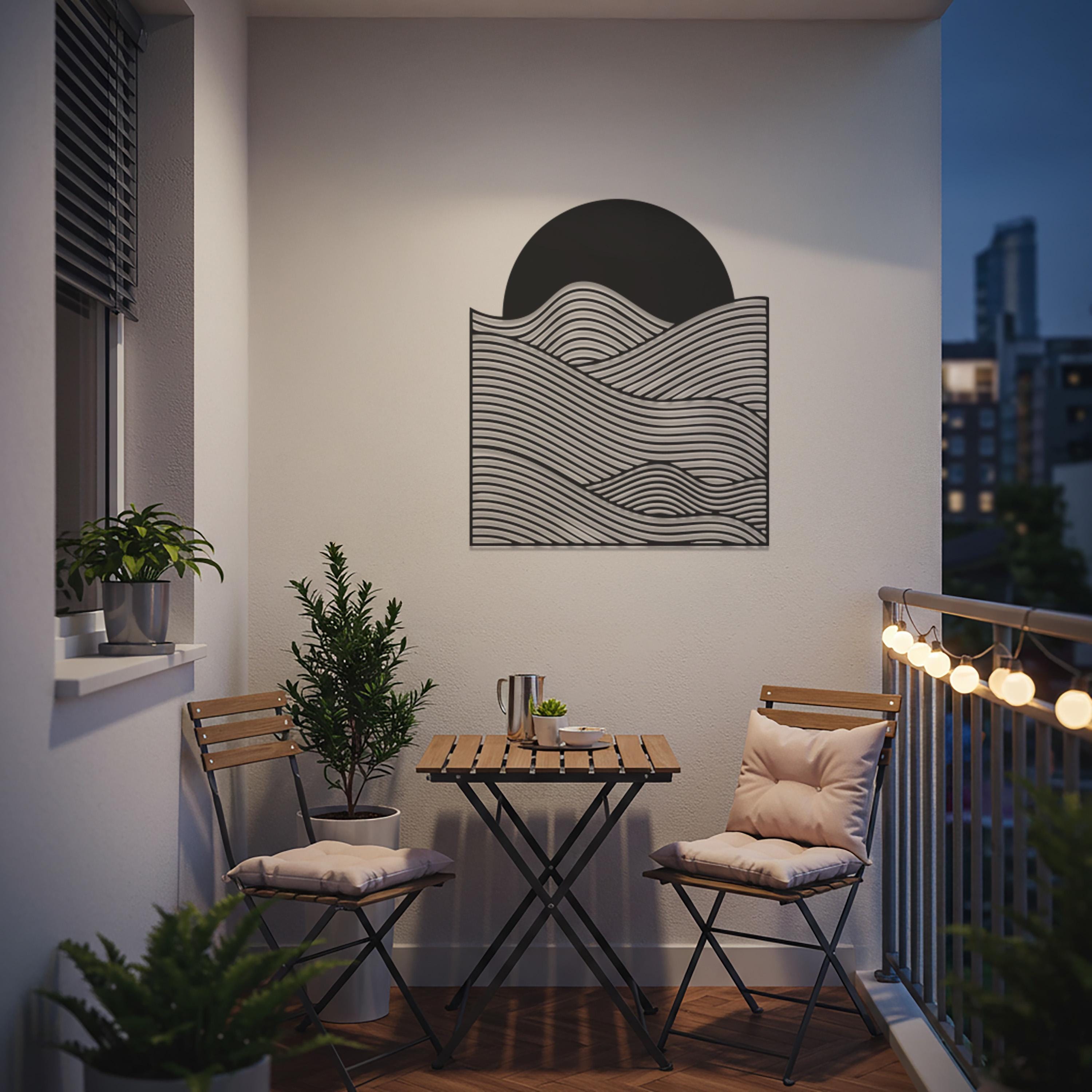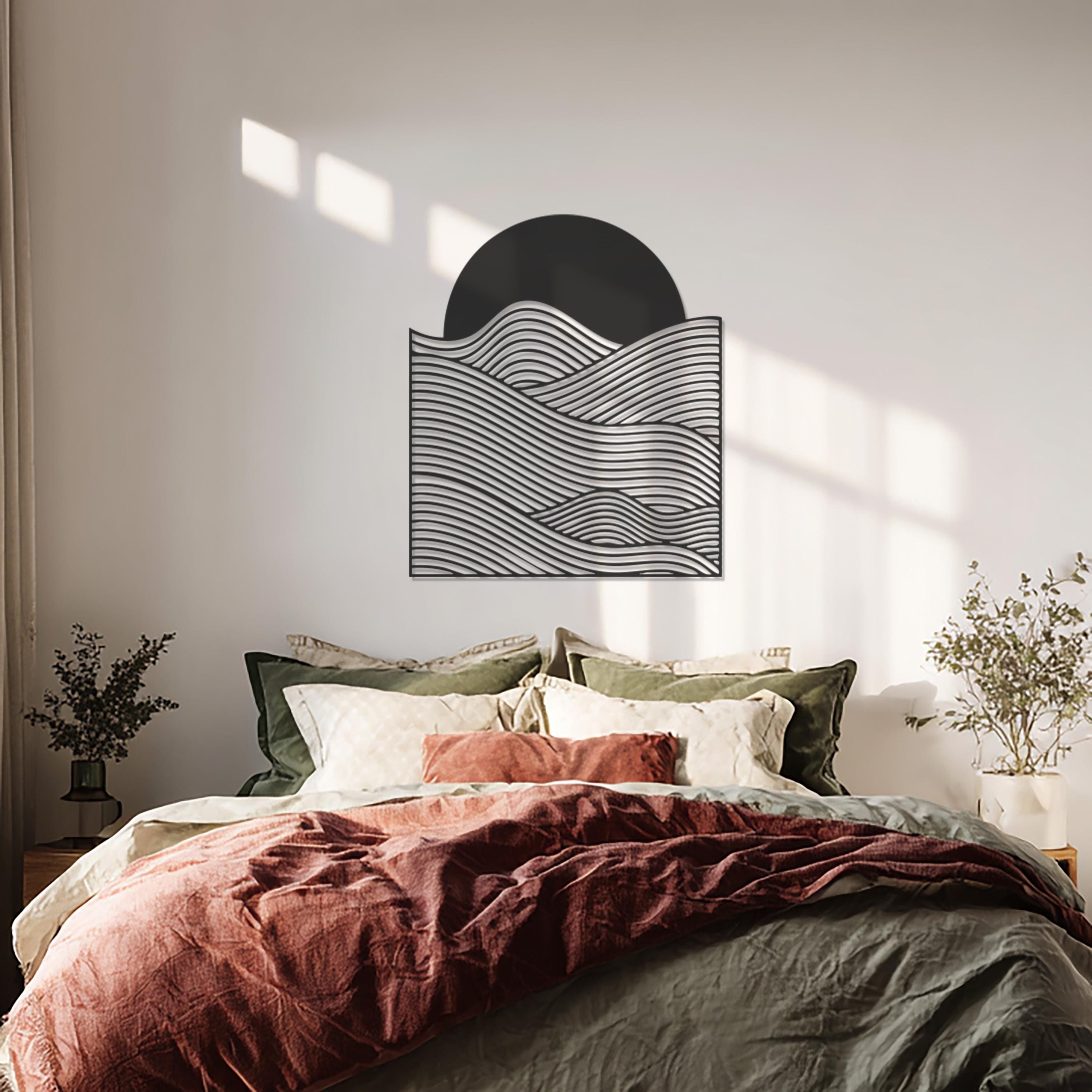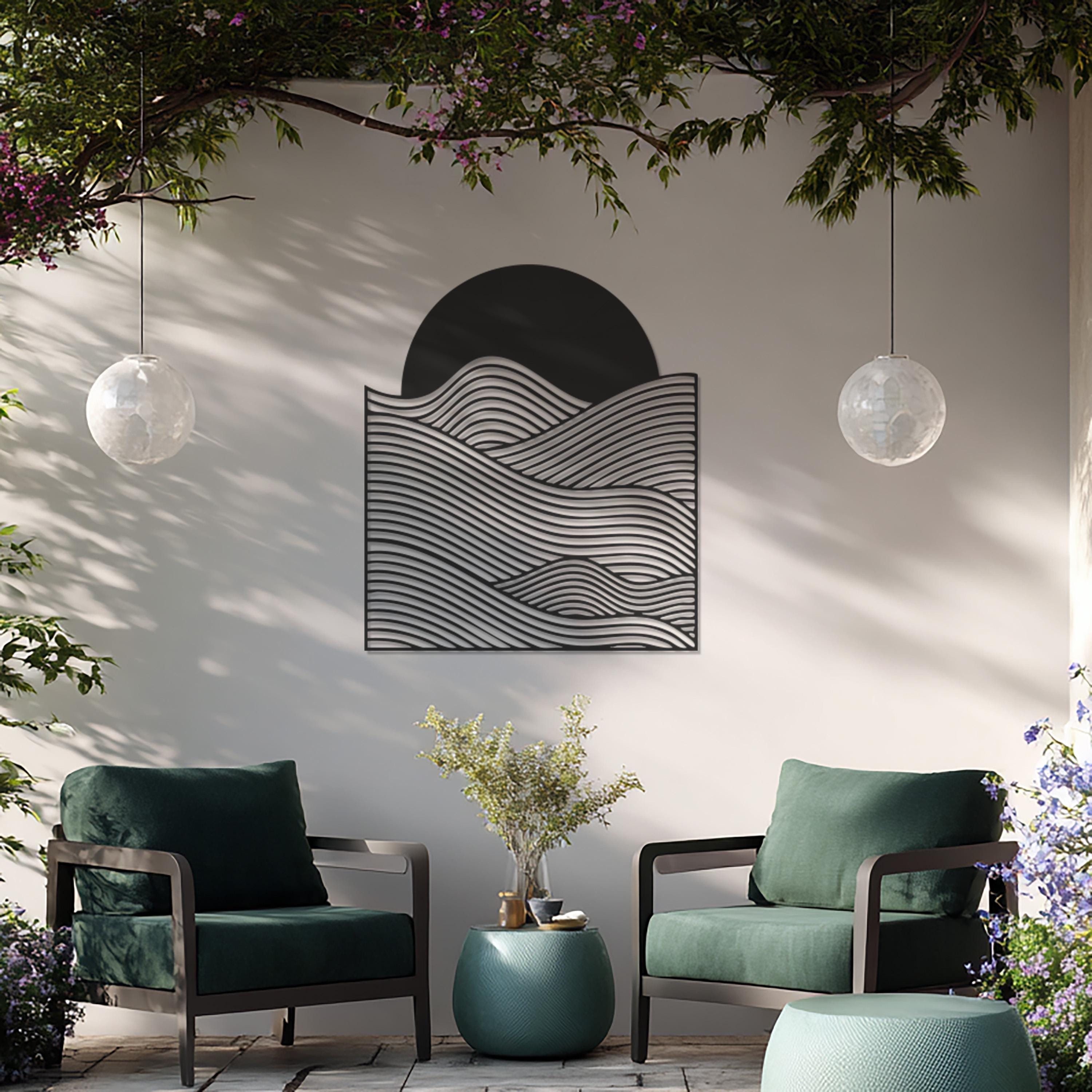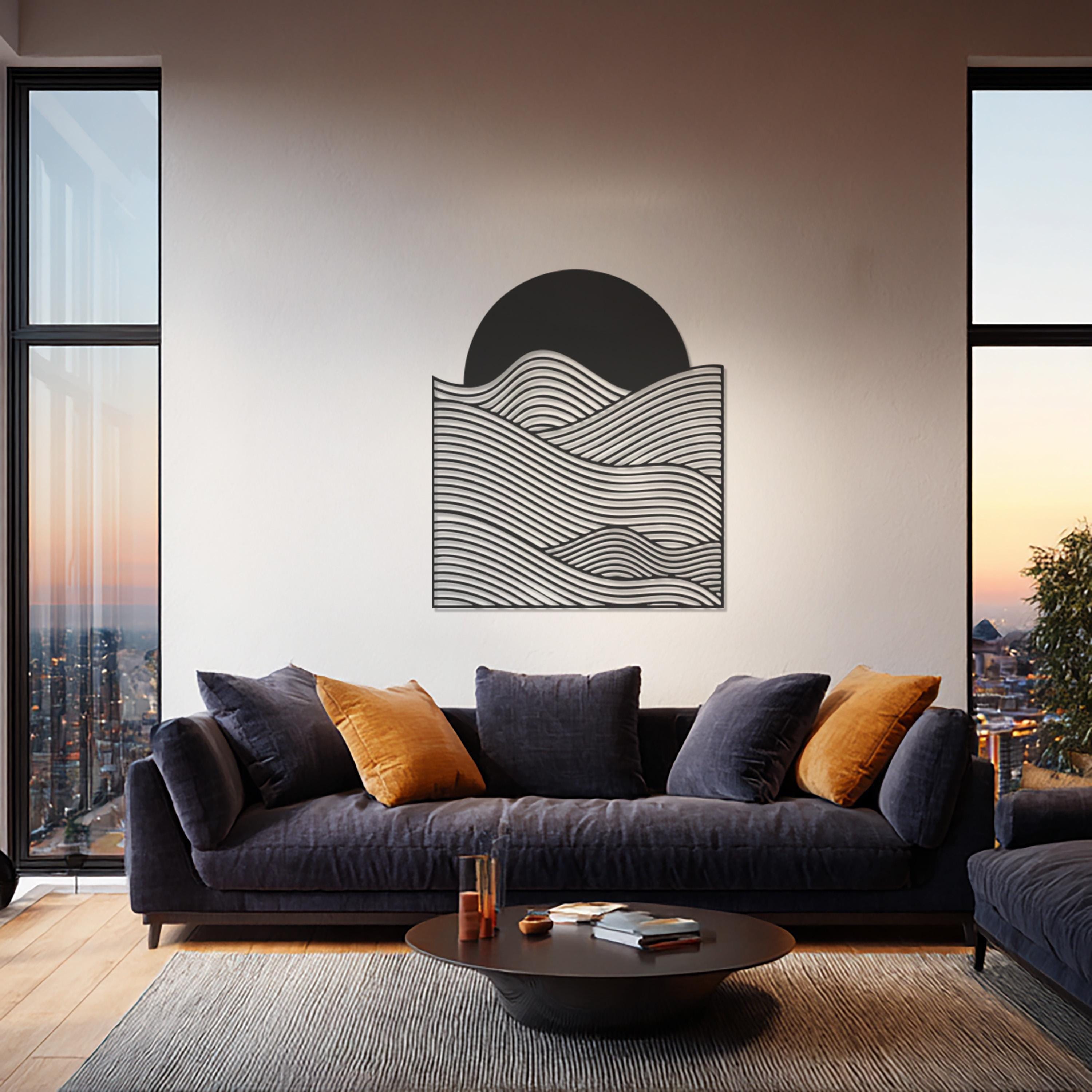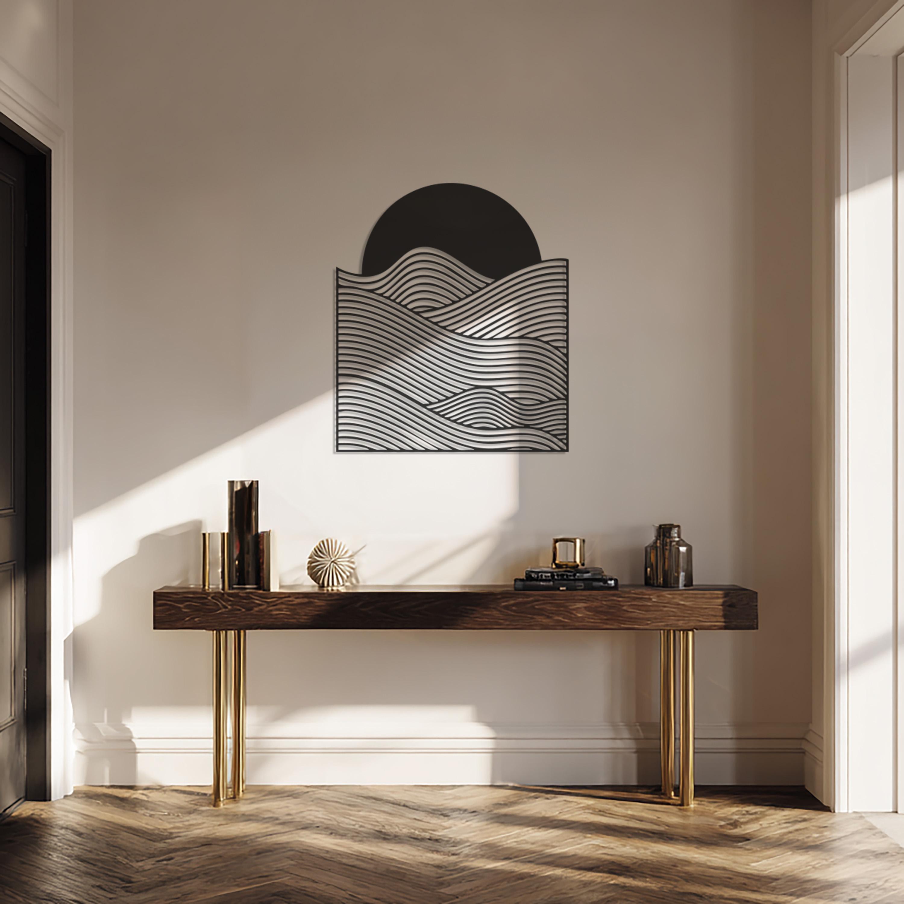 Illuminate your space with this Abstract Sun Metal Wall Art, a modern interpretation of harmony and balance. The flowing wave lines paired with the rising sun create a sense of calm and serenity, making it a perfect centerpiece for any contemporary home or office. Handcrafted from premium metal with a smooth matte finish, it brings sophistication and depth to minimalist interiors while adding a touch of artistic warmth.