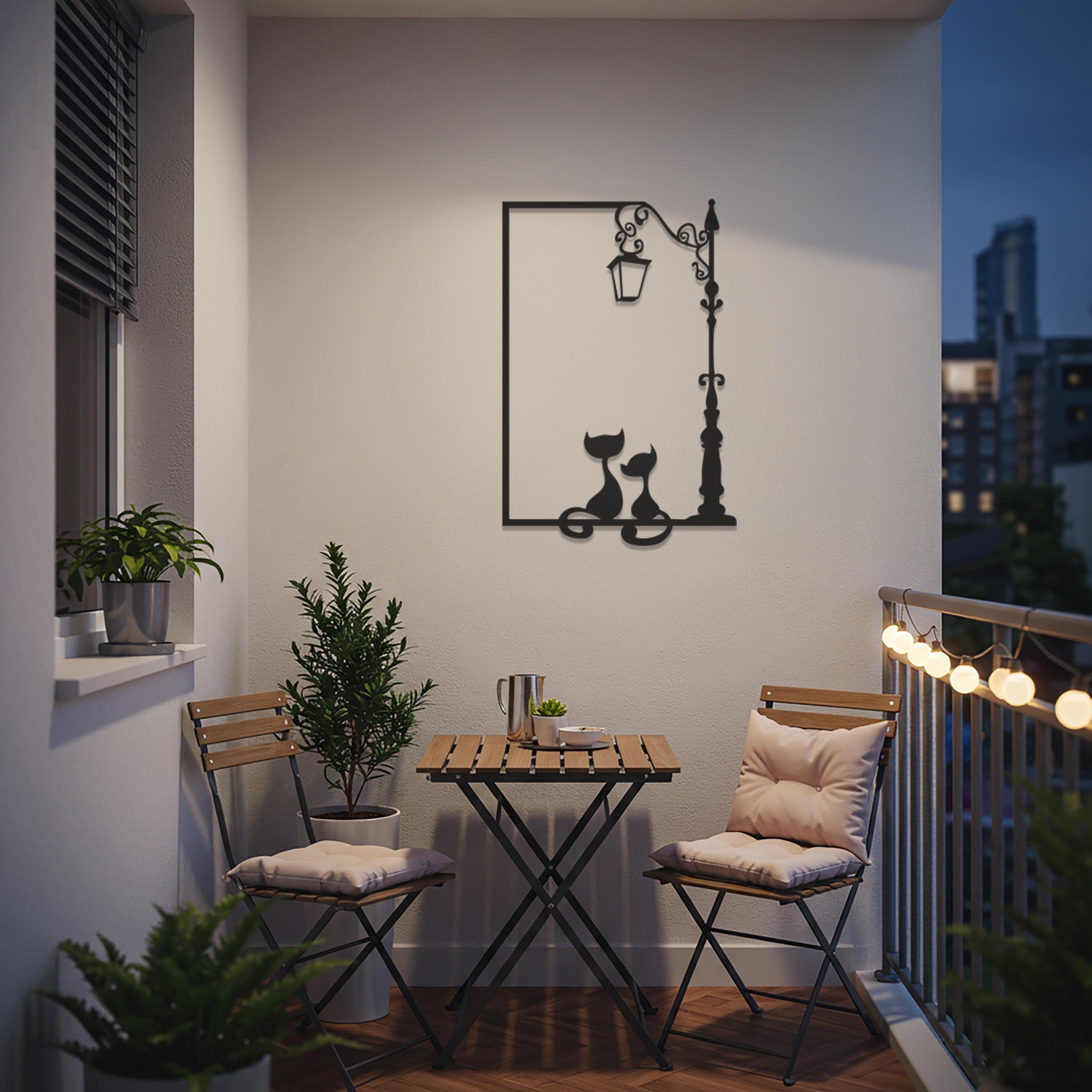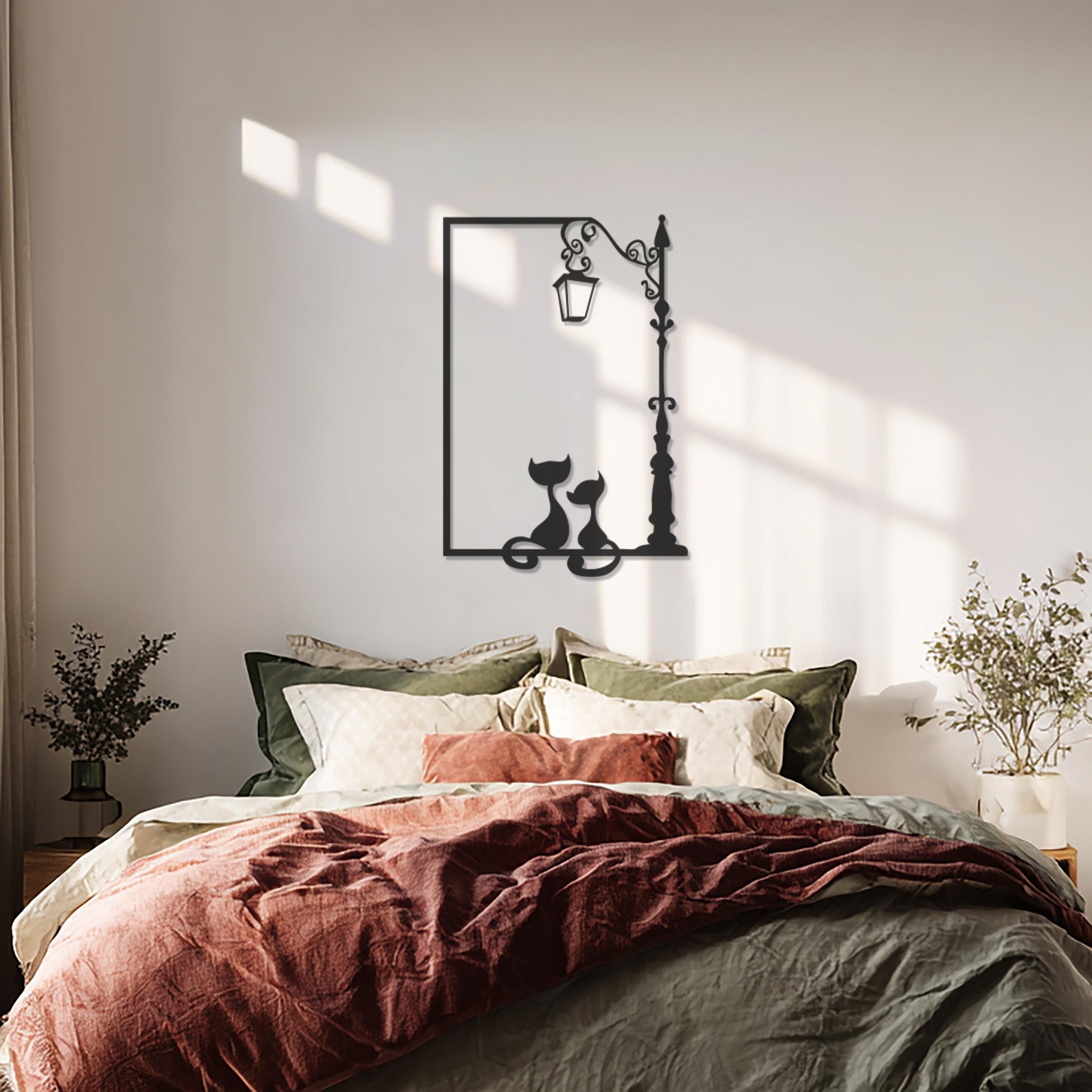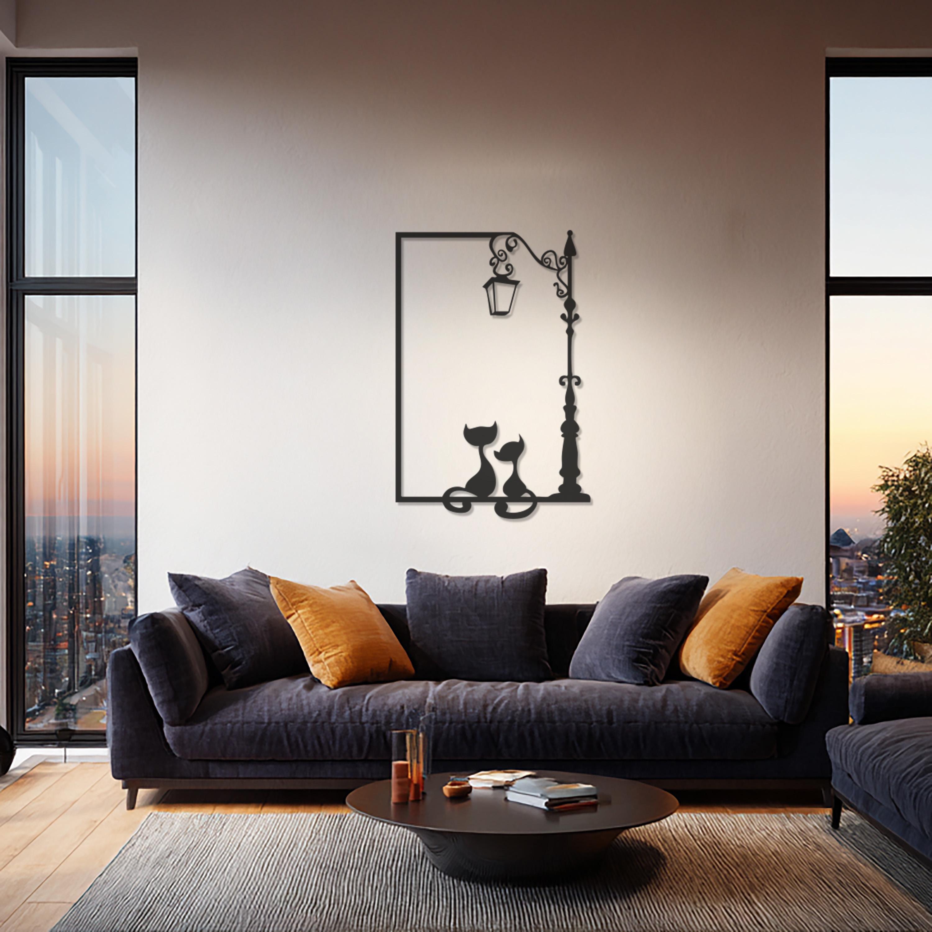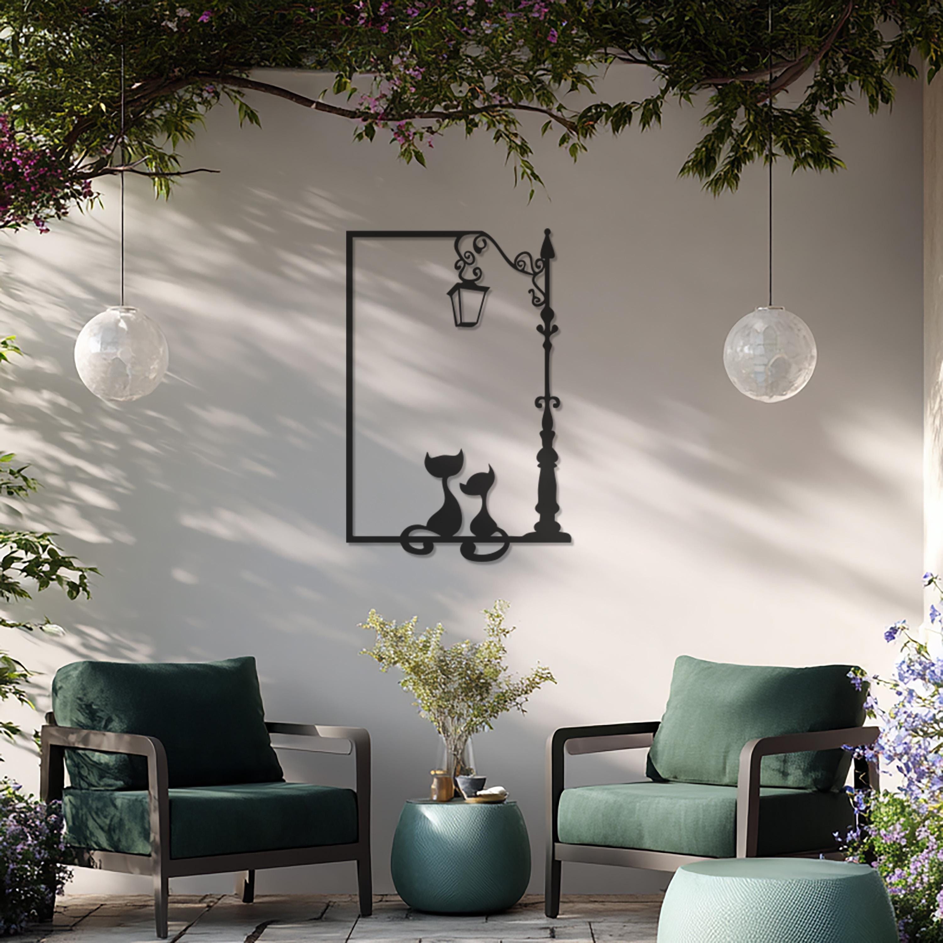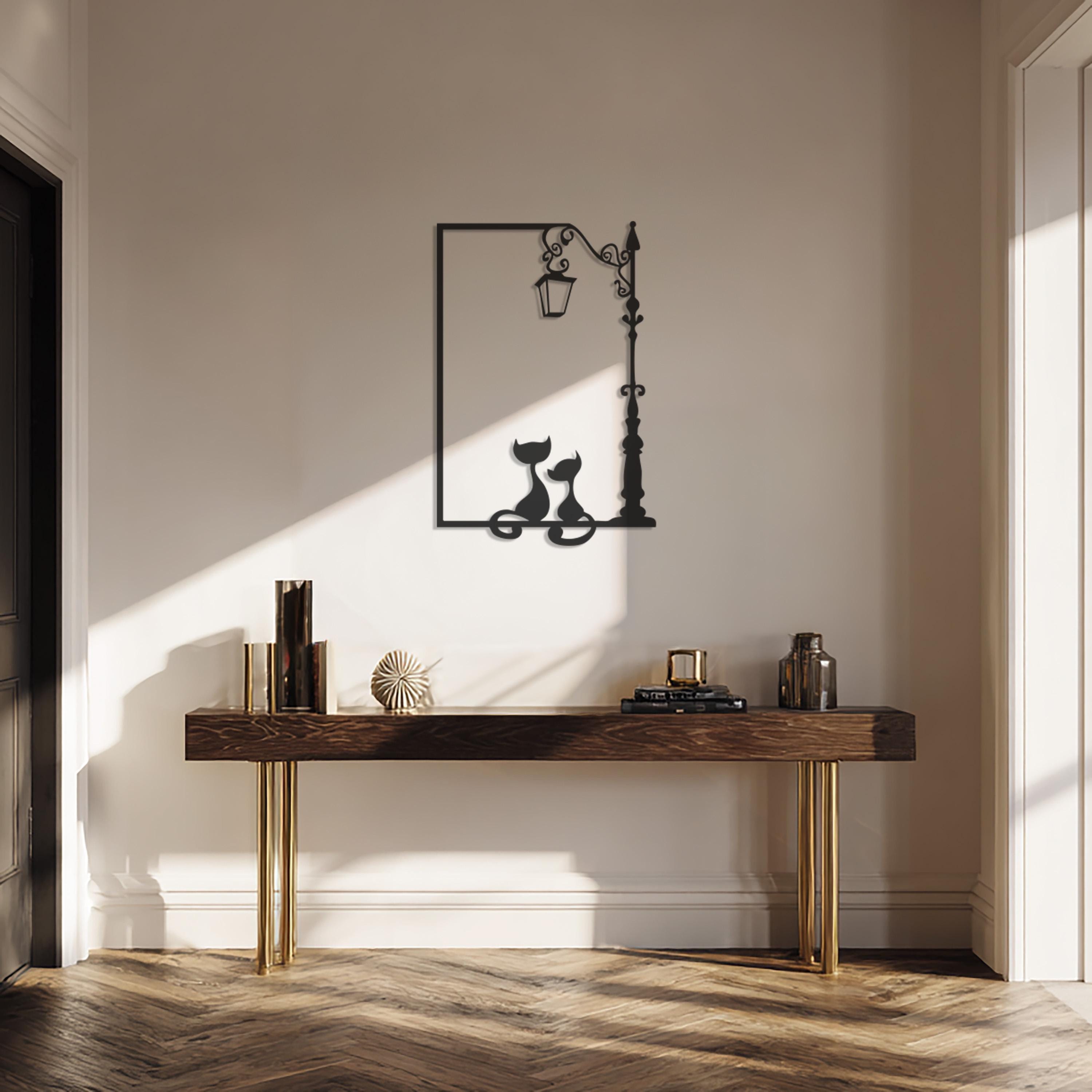 Add charm and romance to your space with this Cat Couple Metal Wall Art. Featuring two cats sitting beneath a vintage street lamp, this design beautifully combines elegance and warmth. Handcrafted from durable metal, the minimalist structure and detailed lamp post create a timeless aesthetic that suits both modern and classic interiors. Perfect for cat enthusiasts and art lovers alike, it’s an ideal wall centerpiece for living rooms, bedrooms, or hallways.