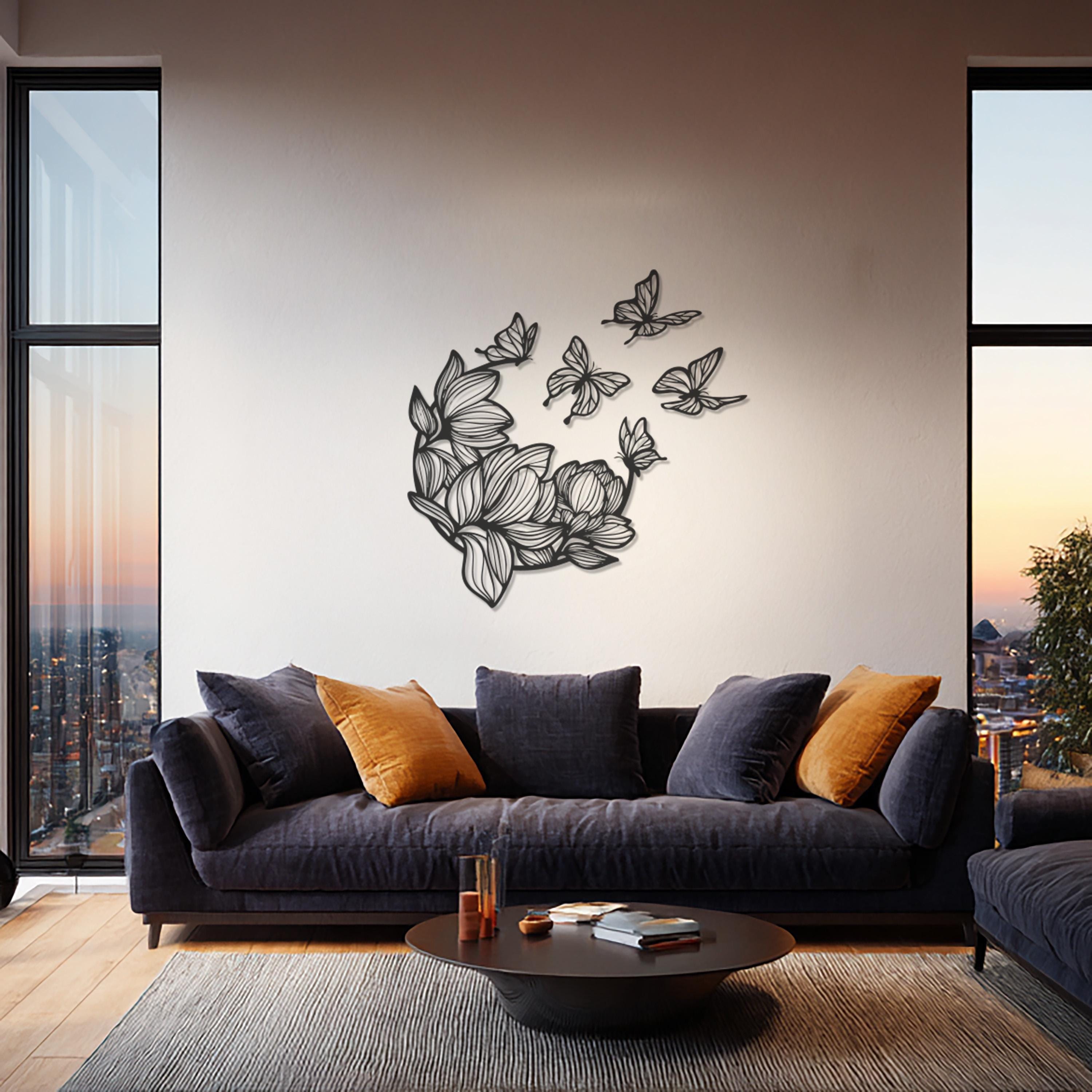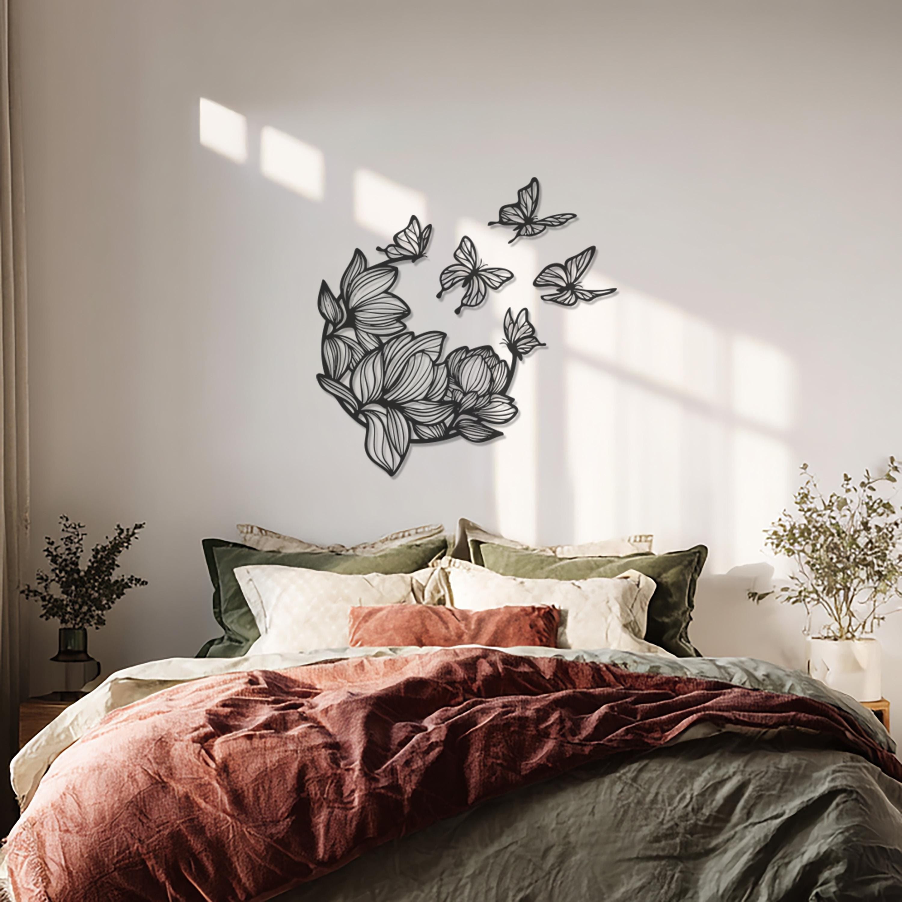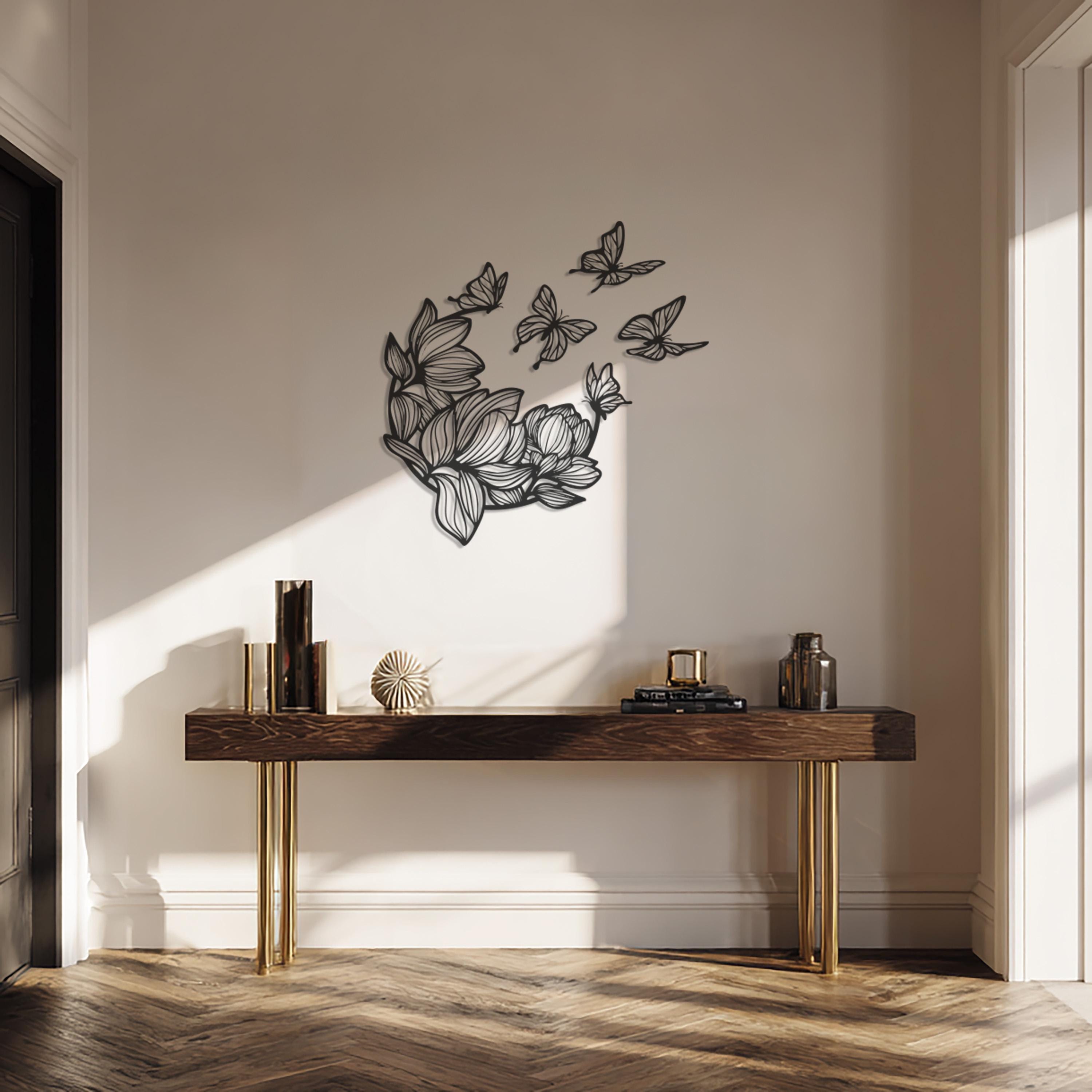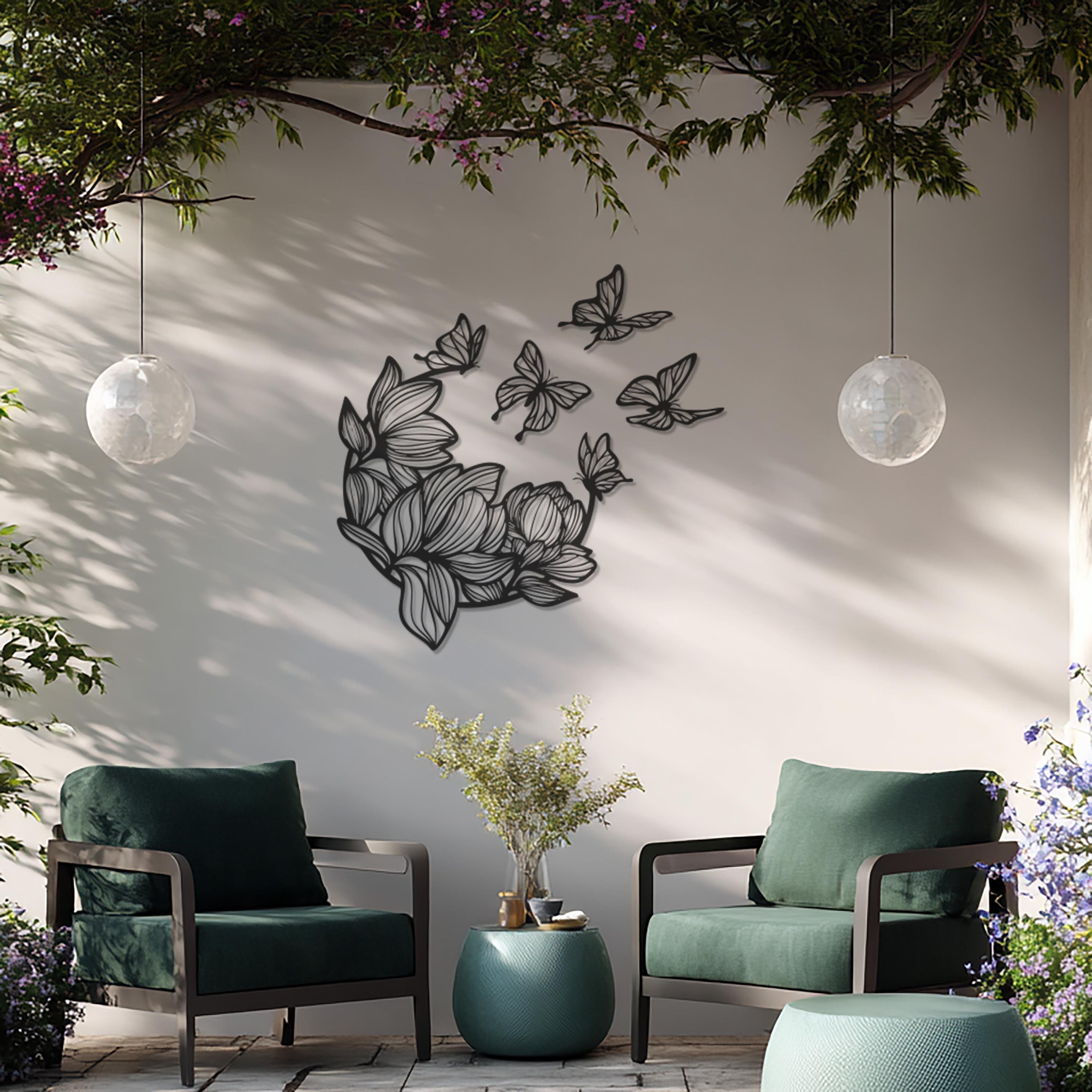 Bring beauty and balance to your walls with this Butterfly and Flower Metal Wall Art. Combining delicate floral patterns and graceful butterflies, this piece symbolizes harmony, transformation, and renewal. Its intricate metalwork and elegant flow create a captivating focal point for any modern or bohemian interior. Perfect for bedrooms, living rooms, or entryways, it adds a soft yet striking statement of artful sophistication.