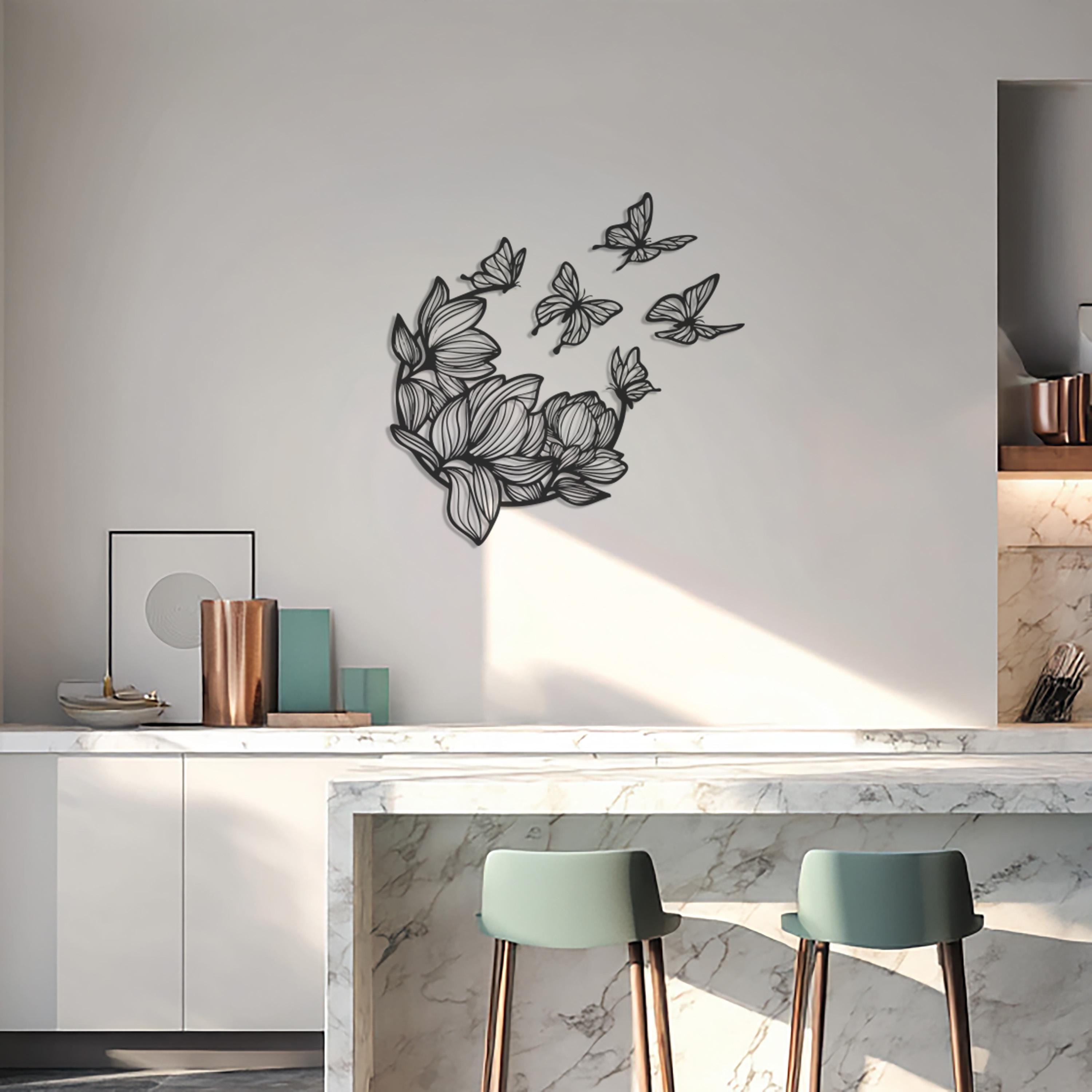 Butterfly and Flower Metal Wall Art, Elegant Floral Design, Modern Nature-Inspired Sculpture, Minimalist Metal Decor for Living Room,Bedroom