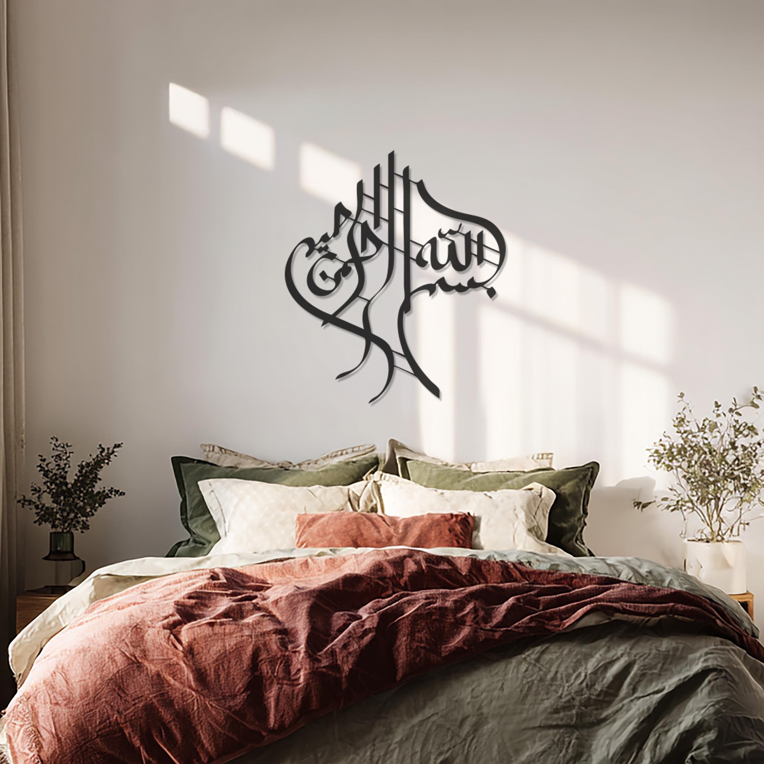 Bismillah Metal Wall Art, Islamic Calligraphy Home Decor, Arabic Wall Sculpture, Modern Religious Metal Design for Living Room or Mosque