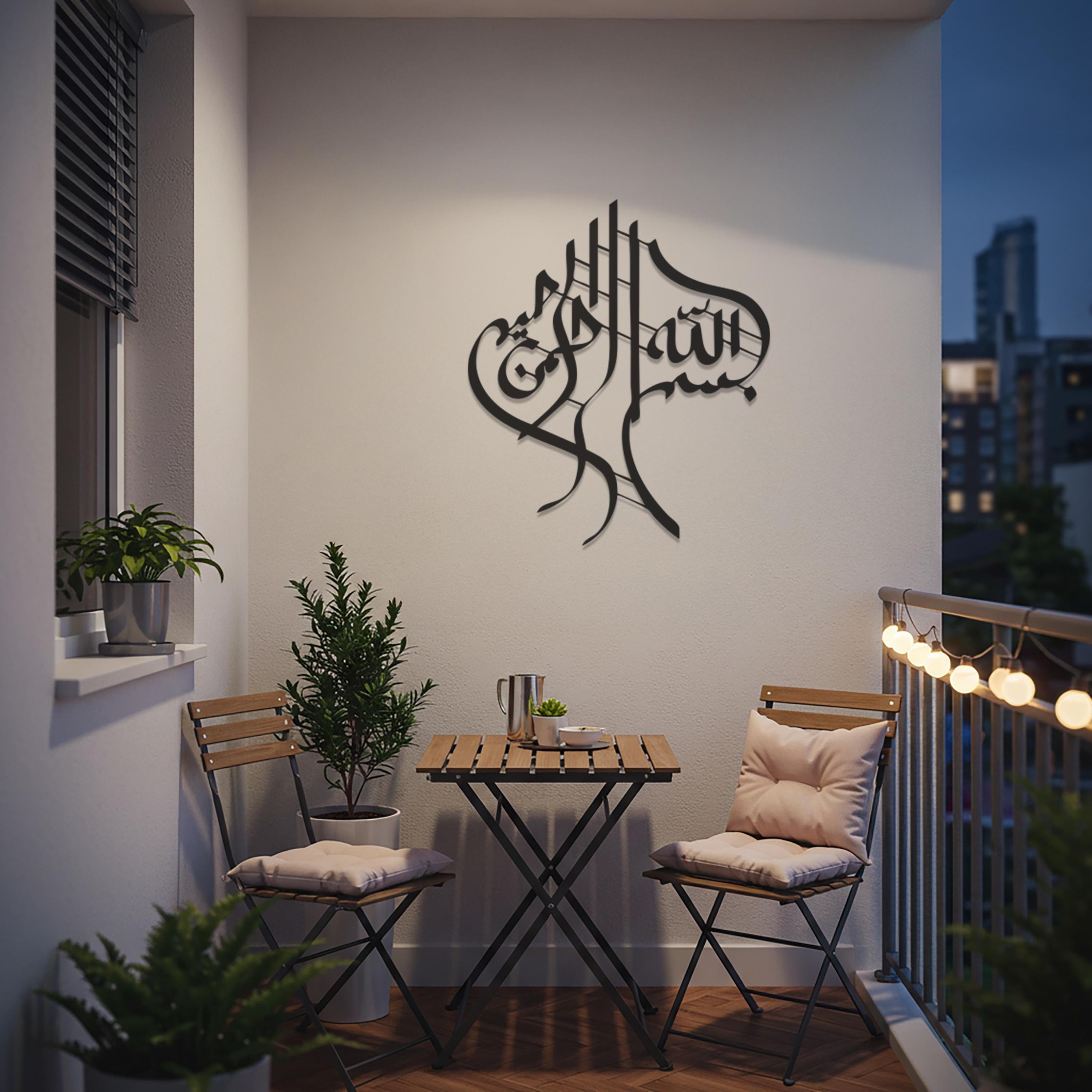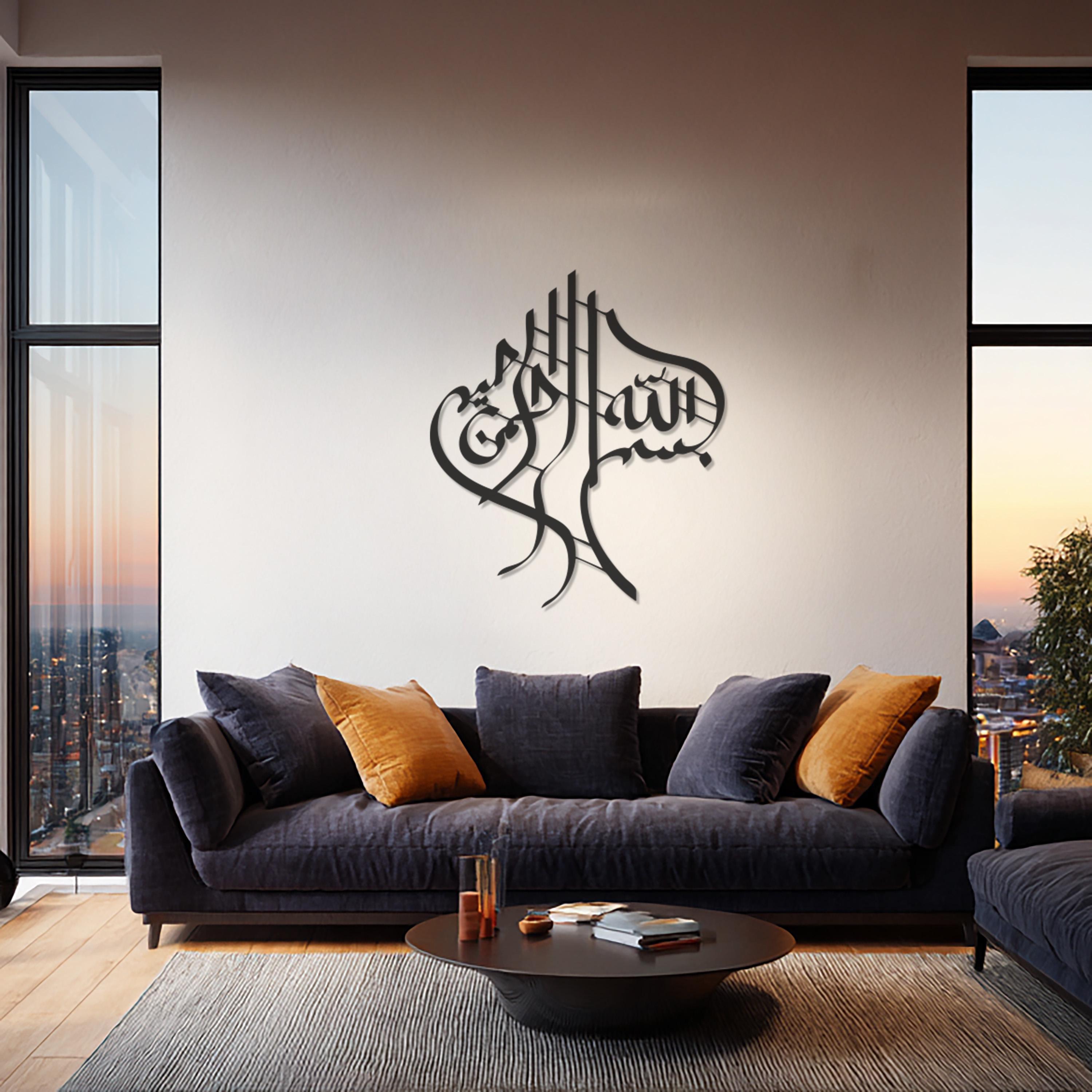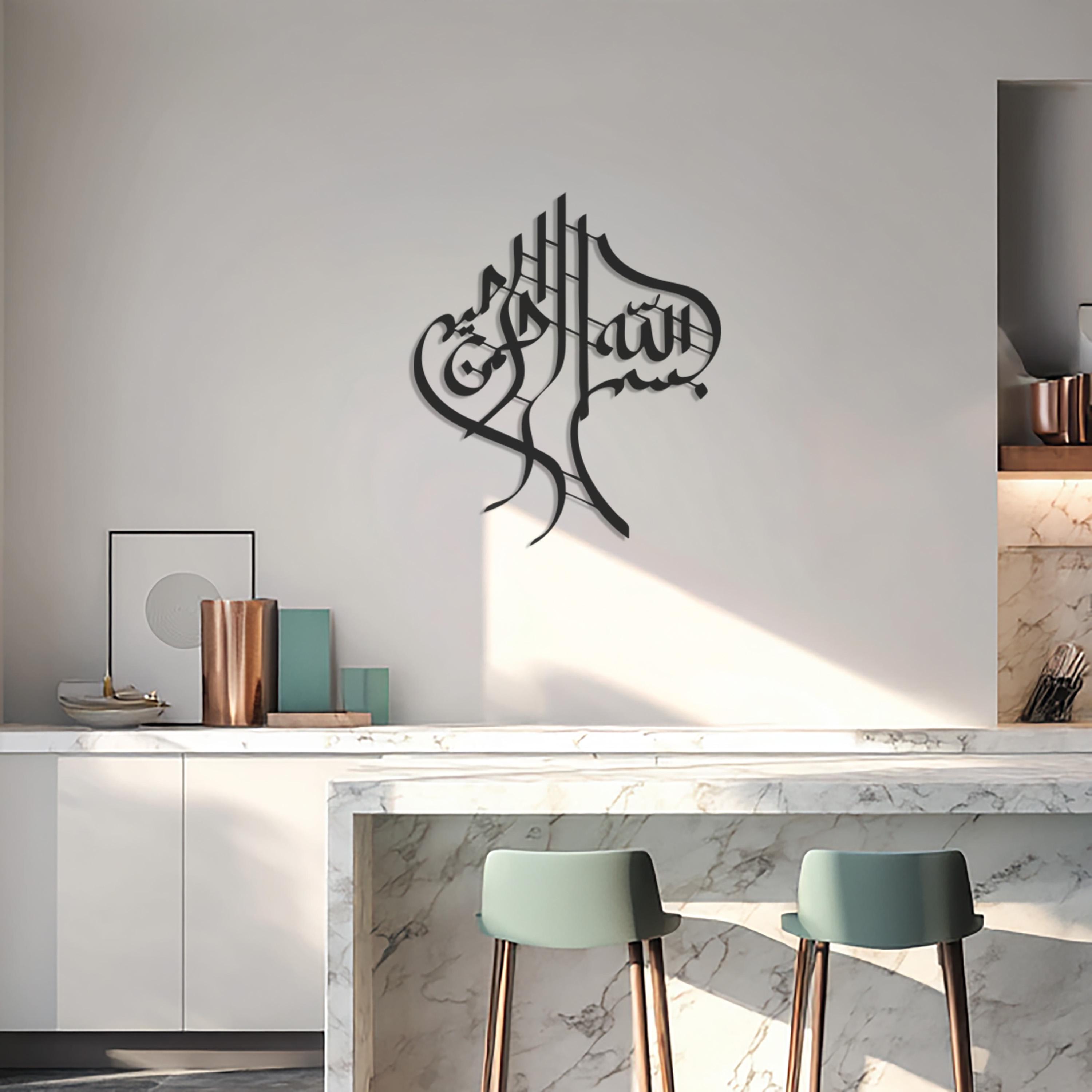 Add spiritual elegance to your home with this Bismillah Metal Wall Art. Beautifully designed in Arabic calligraphy, this piece represents faith, devotion, and peace. Handcrafted from durable, high-quality metal, it blends traditional Islamic artistry with a contemporary minimalist aesthetic. Perfect for living rooms, entryways, offices, or prayer spaces, this design enriches any interior with serenity and cultural depth.