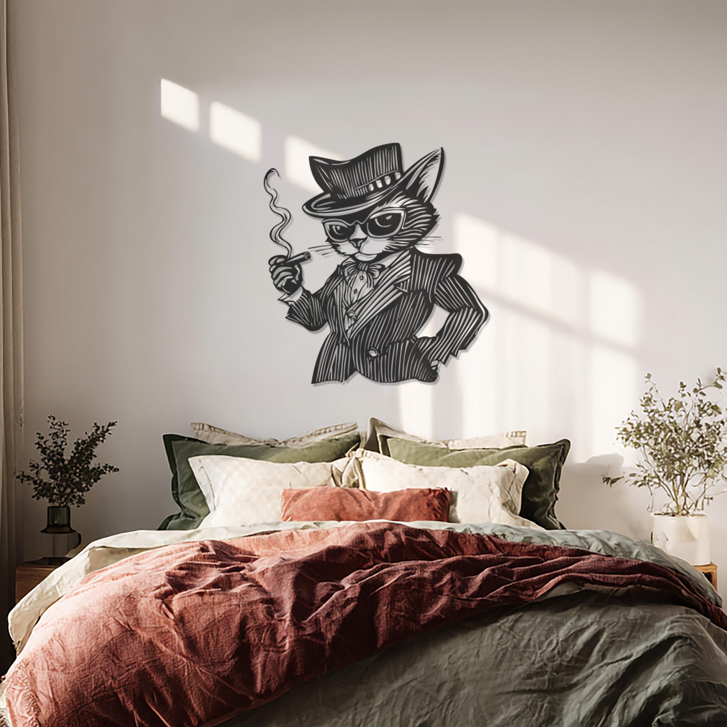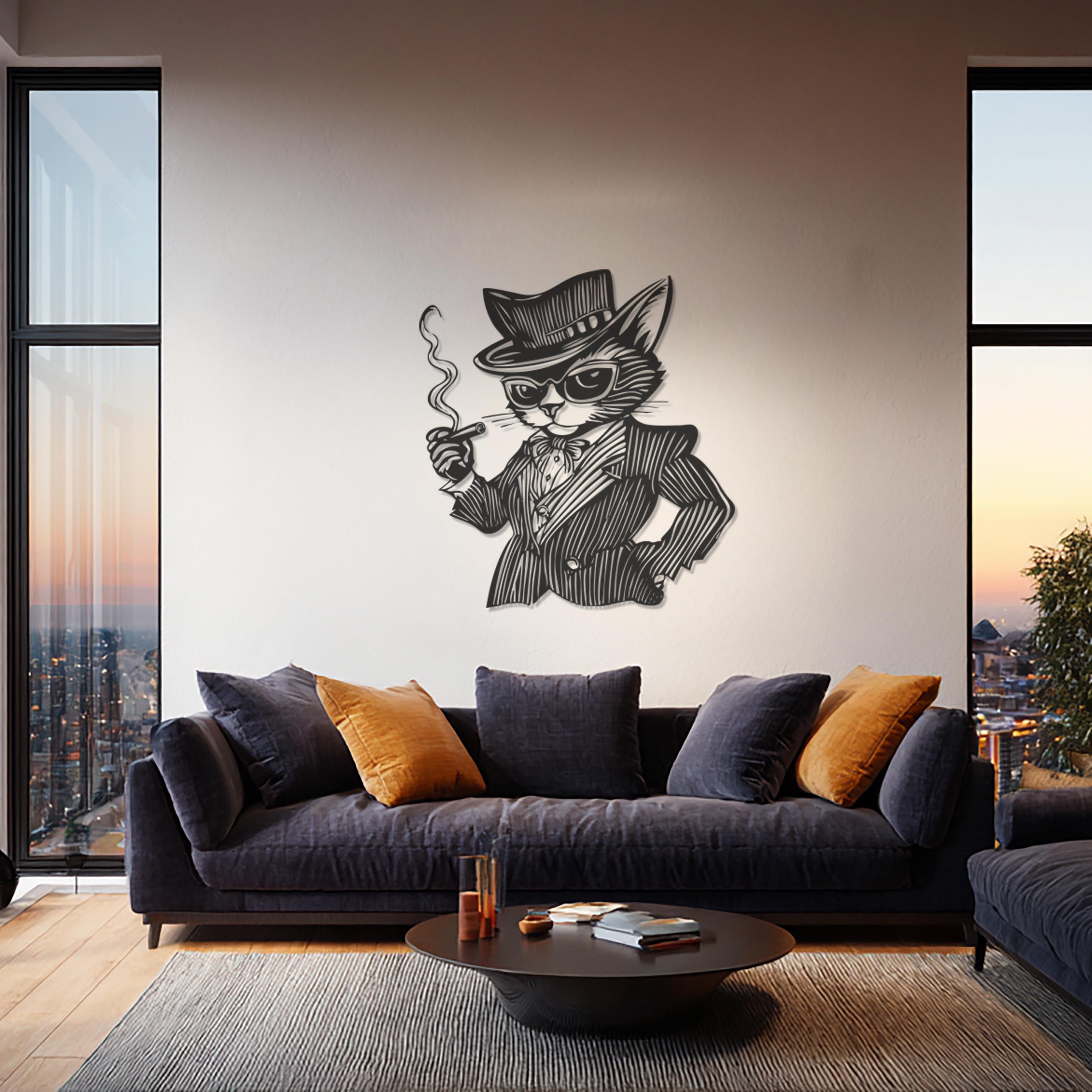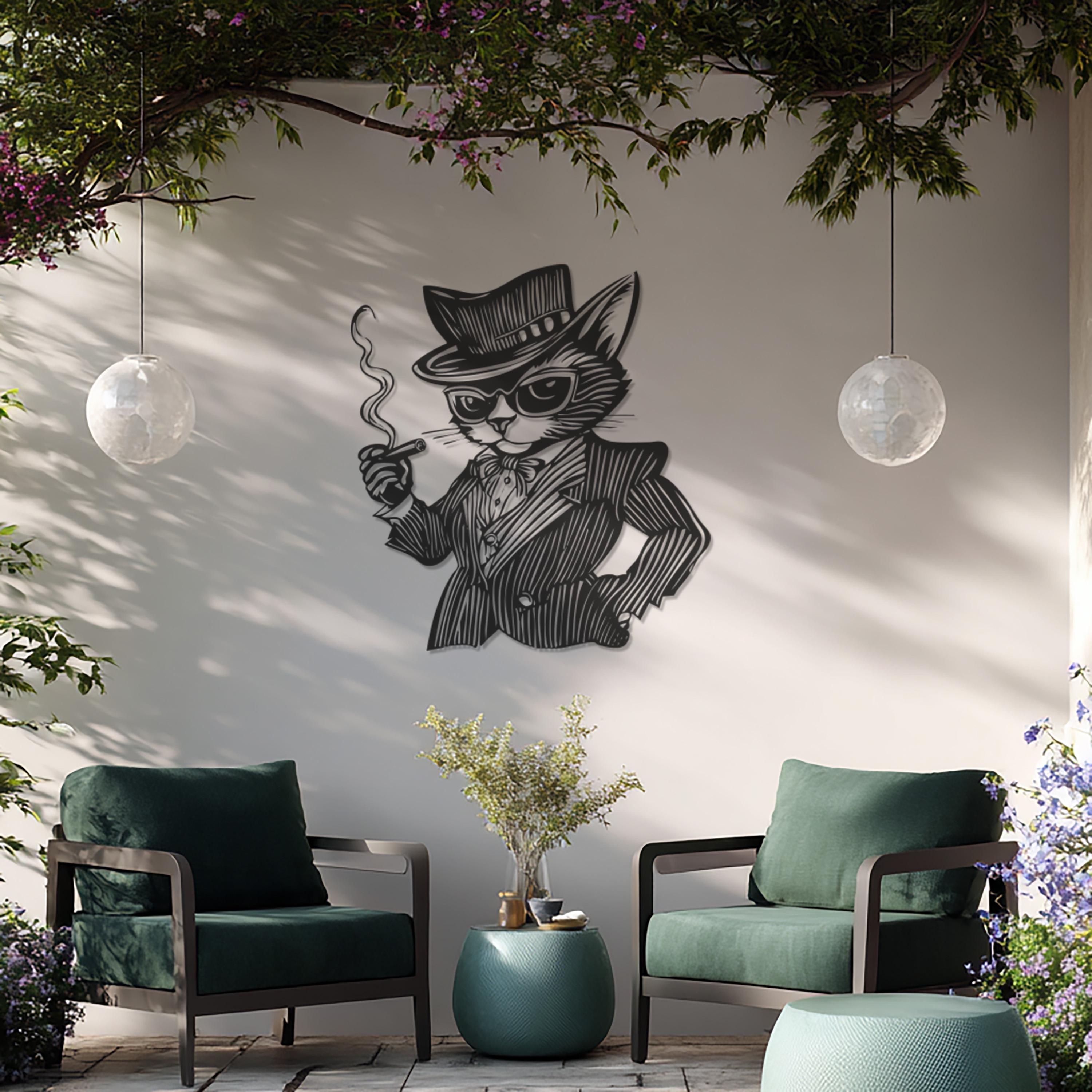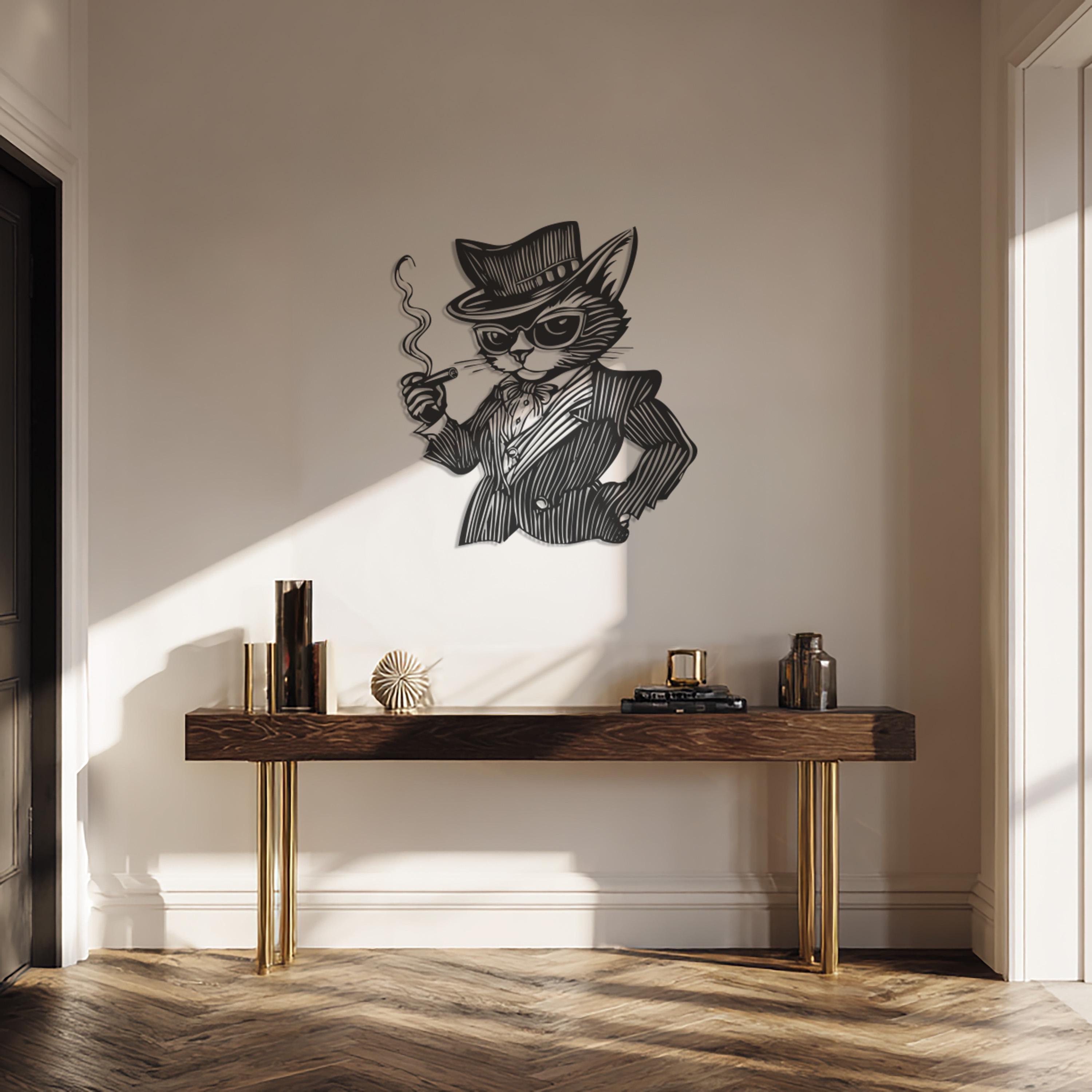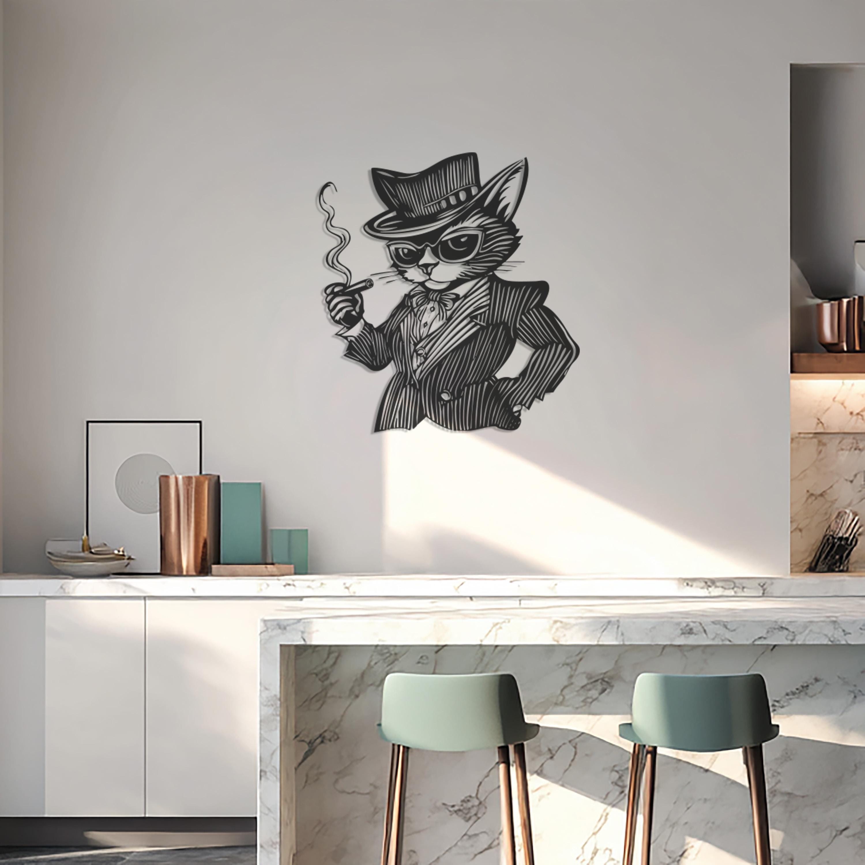 Add charm and sophistication to your walls with this Cat Gentleman Metal Wall Art. Featuring a classy feline in a suit, hat, and bow tie, holding a pipe, this creative piece combines humor and elegance in perfect balance. Crafted from high-quality metal with a sleek matte black finish, it’s ideal for kitchens, bars, or modern interiors seeking a playful yet refined accent. Its detailed line design makes it an instant conversation starter and a unique art statement.