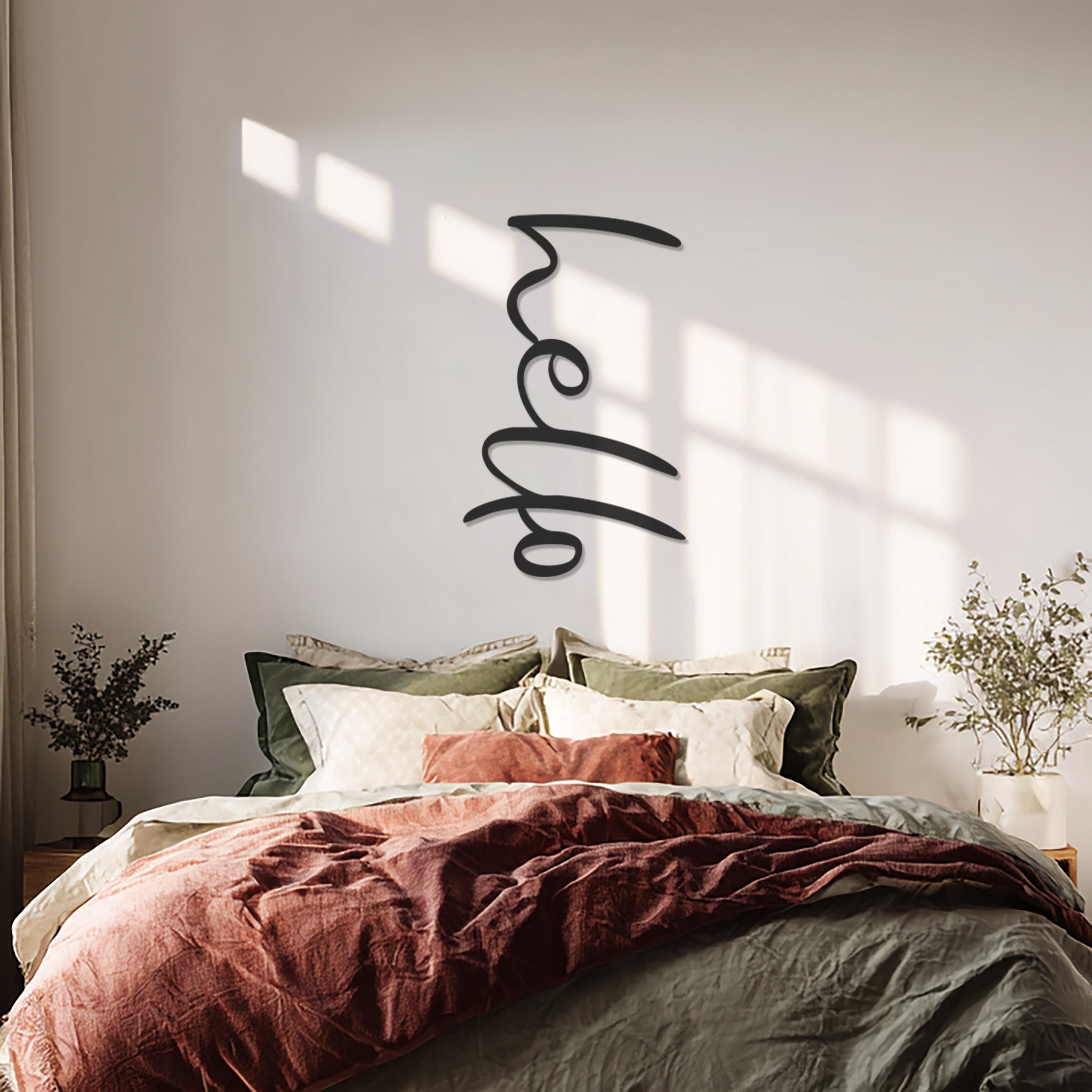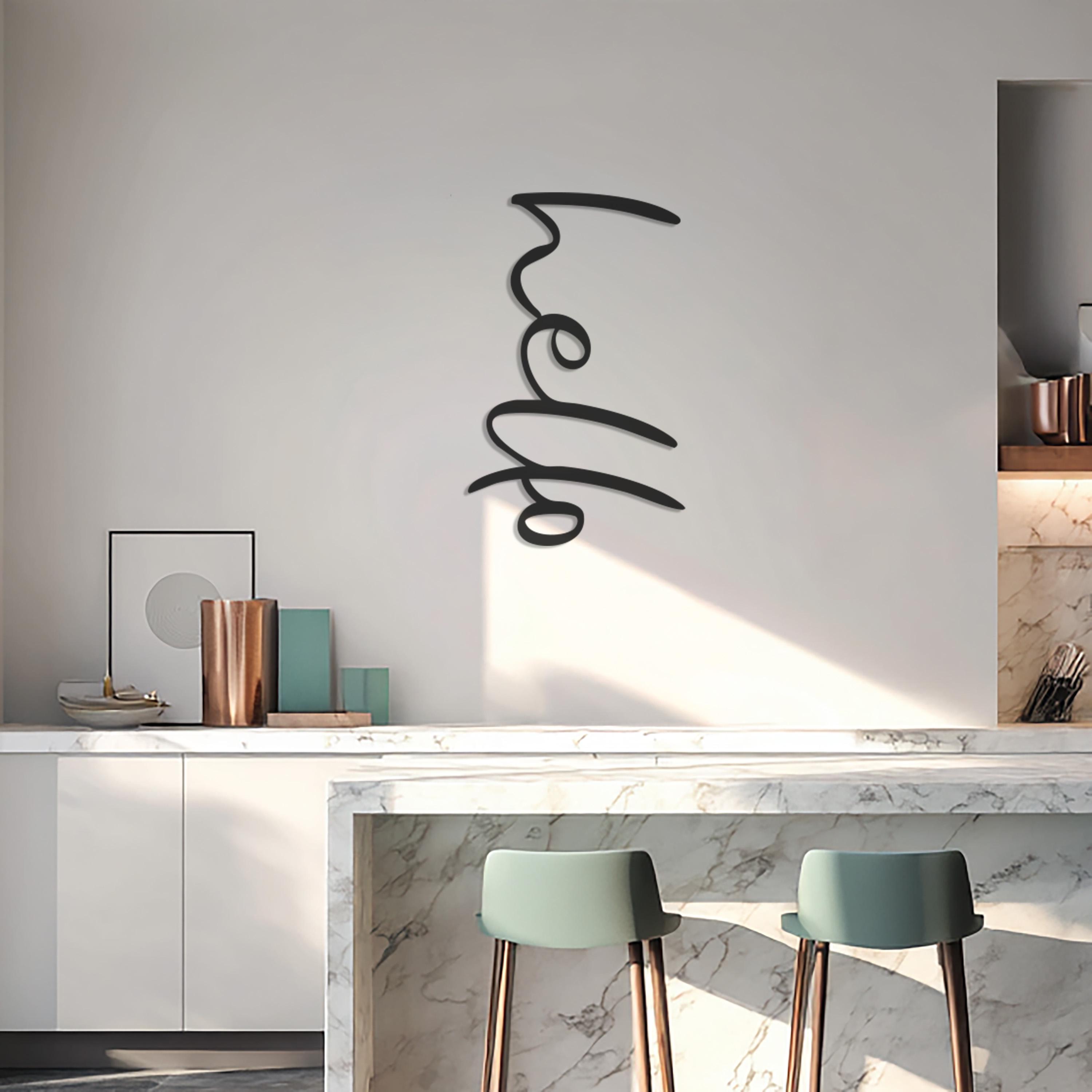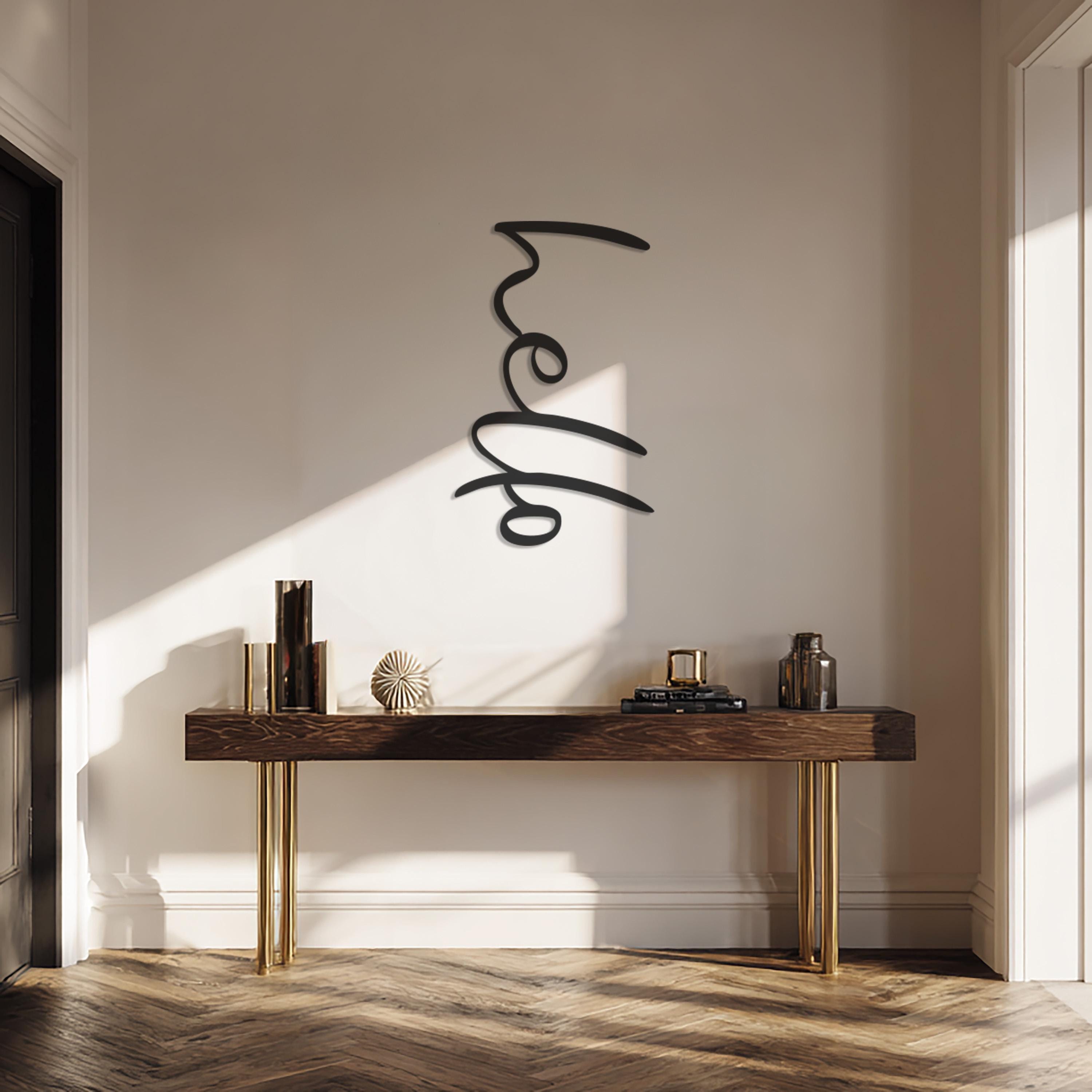 Hello Metal Wall Art, Modern Minimalist Word Sign, Black Metal Typography Decor for Entryway, Kitchen, Living Room, or Office Spaces