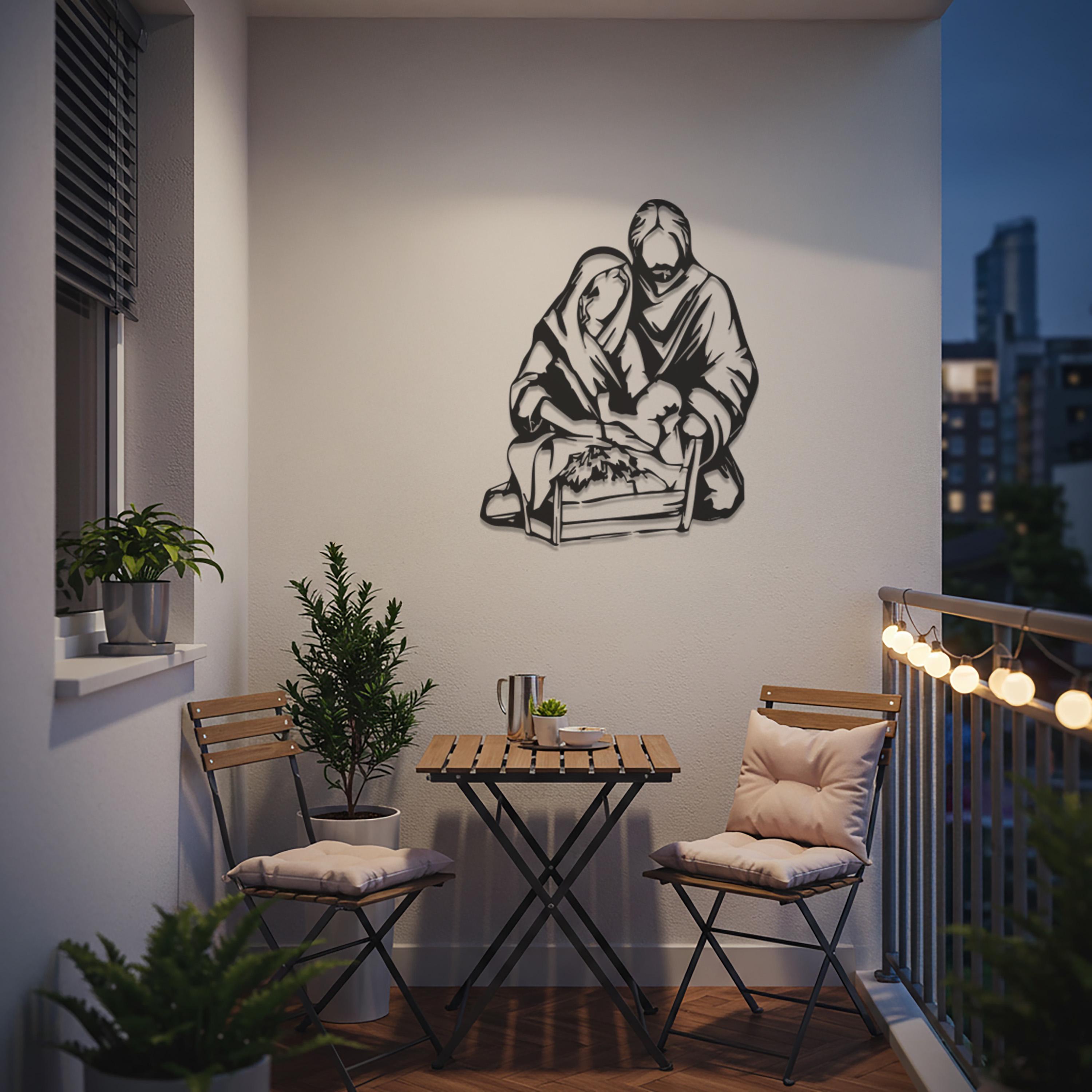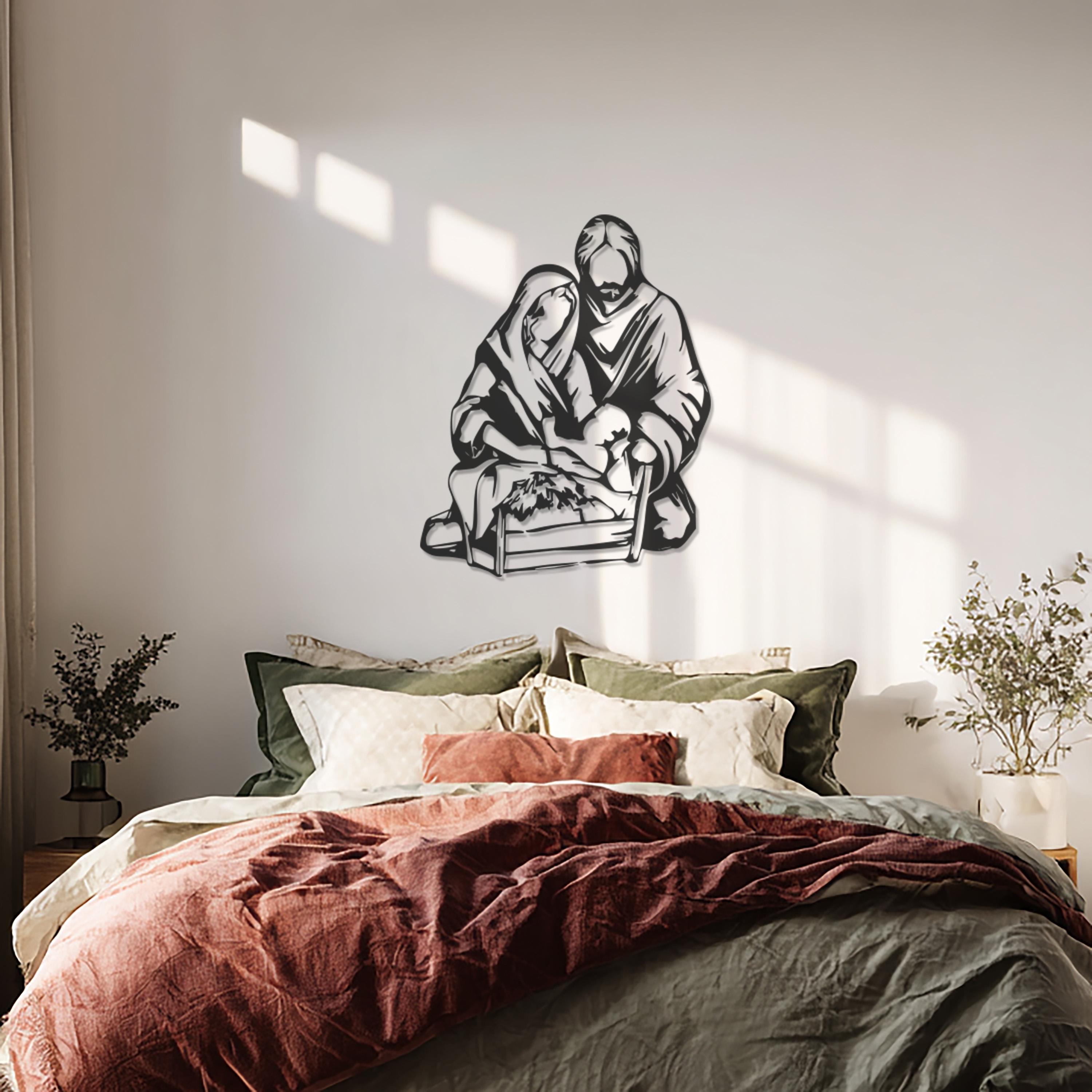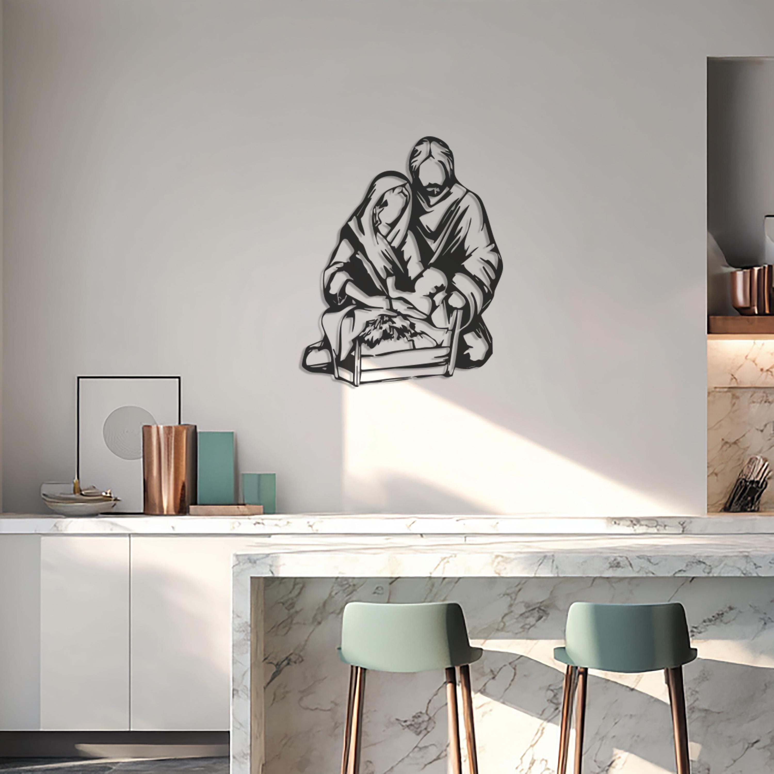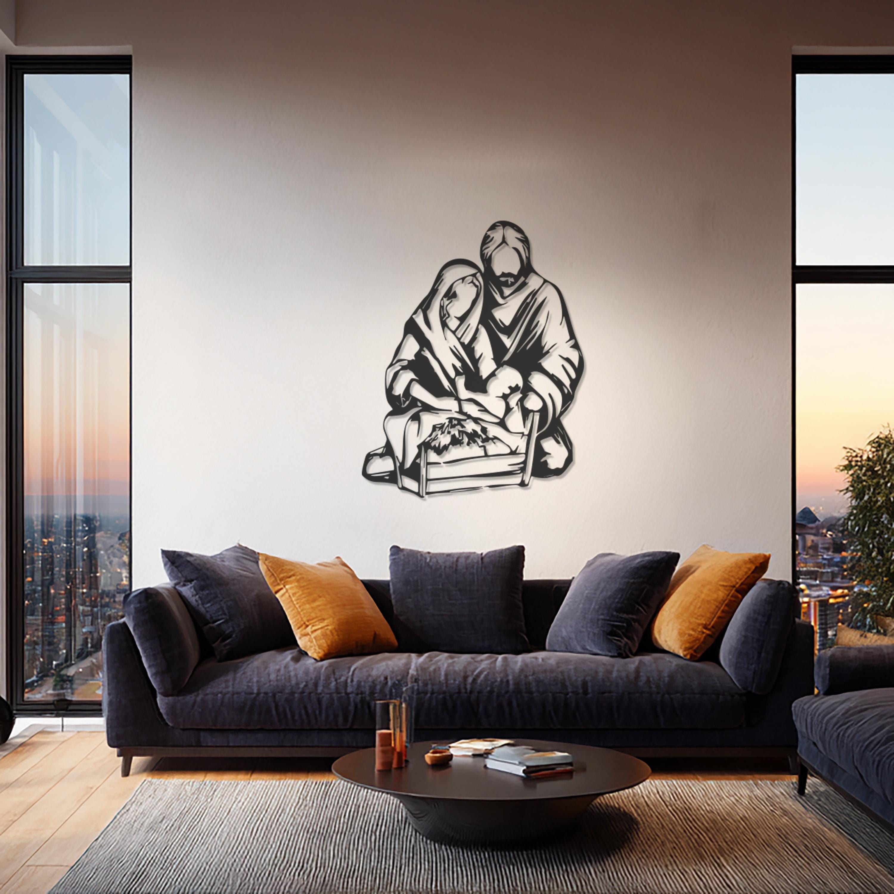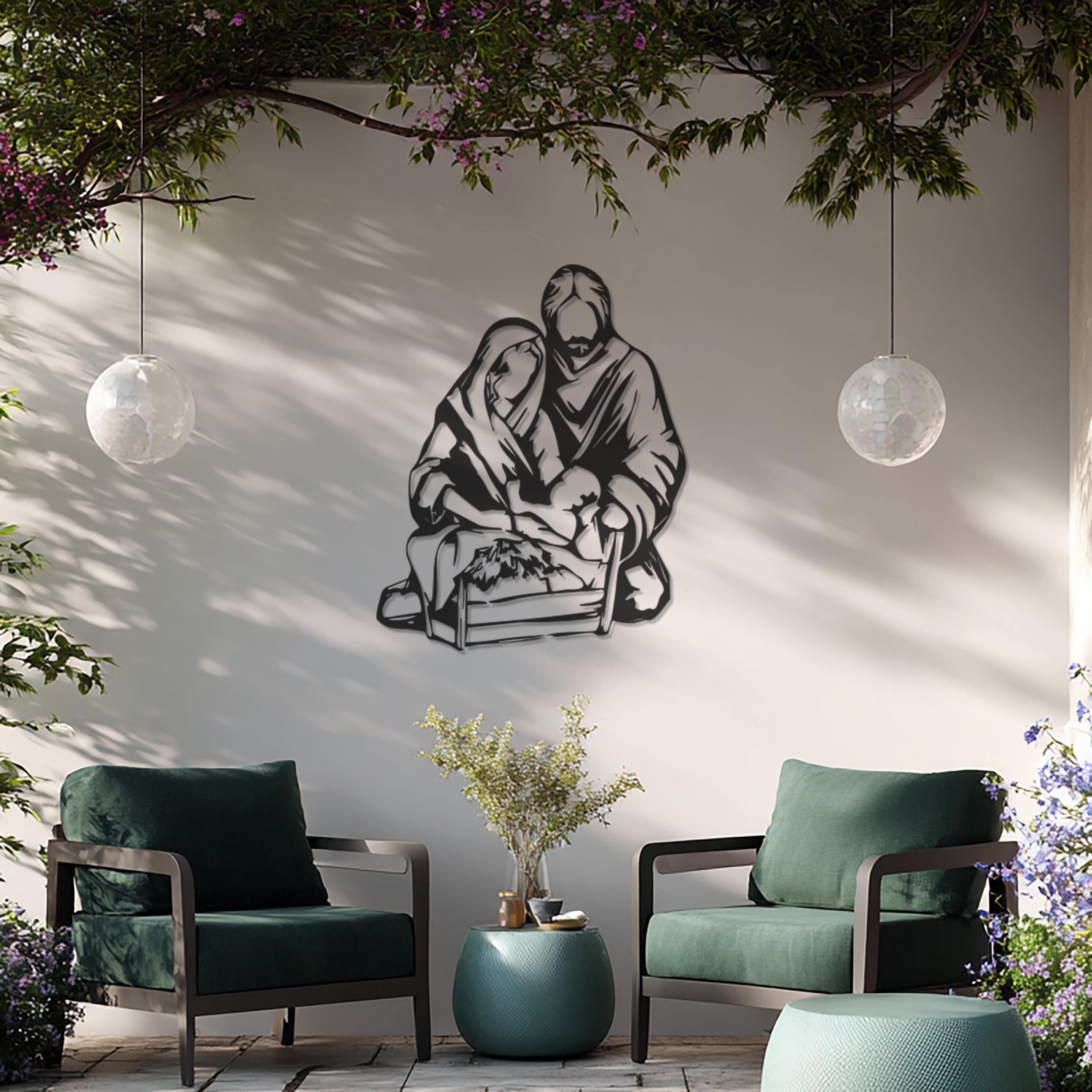 Holy Family Metal Wall Art, Minimalist Nativity Scene, Christian Home Decor