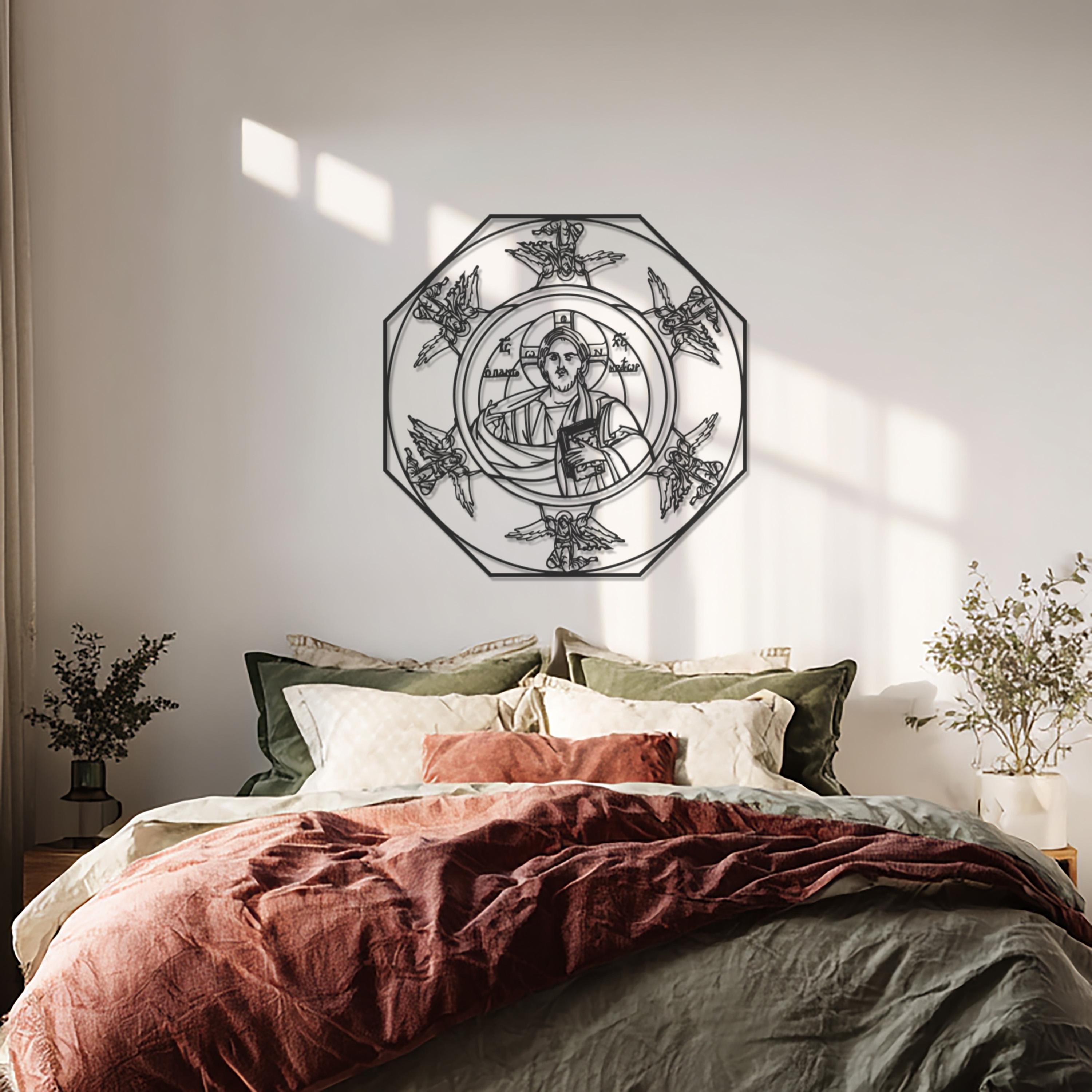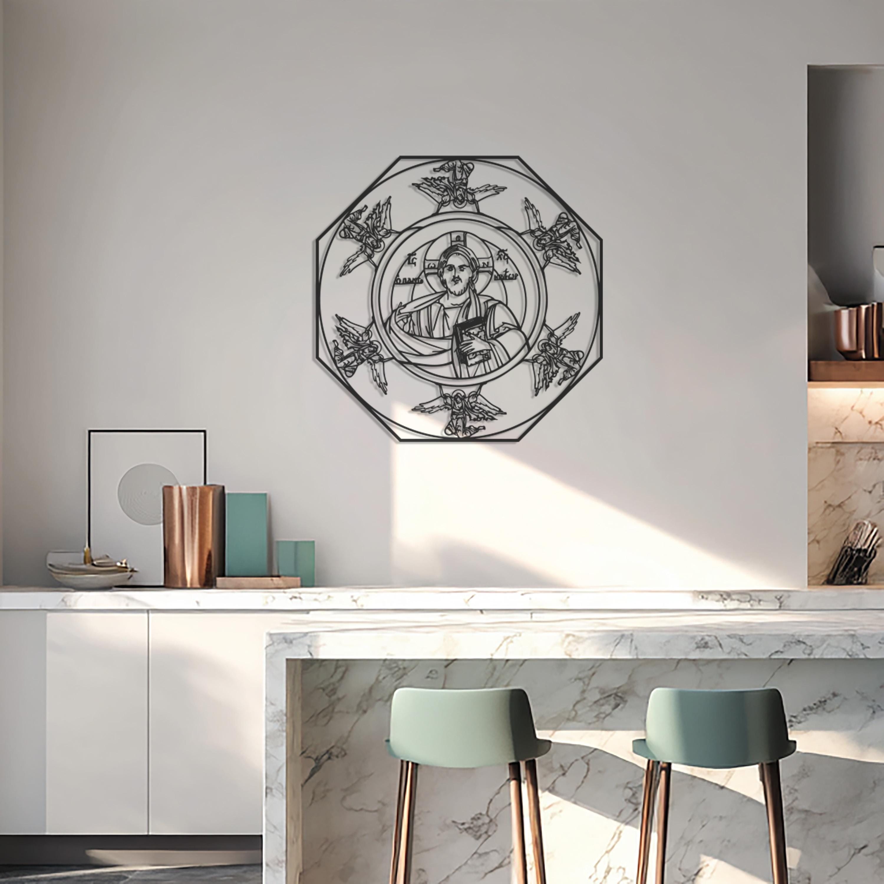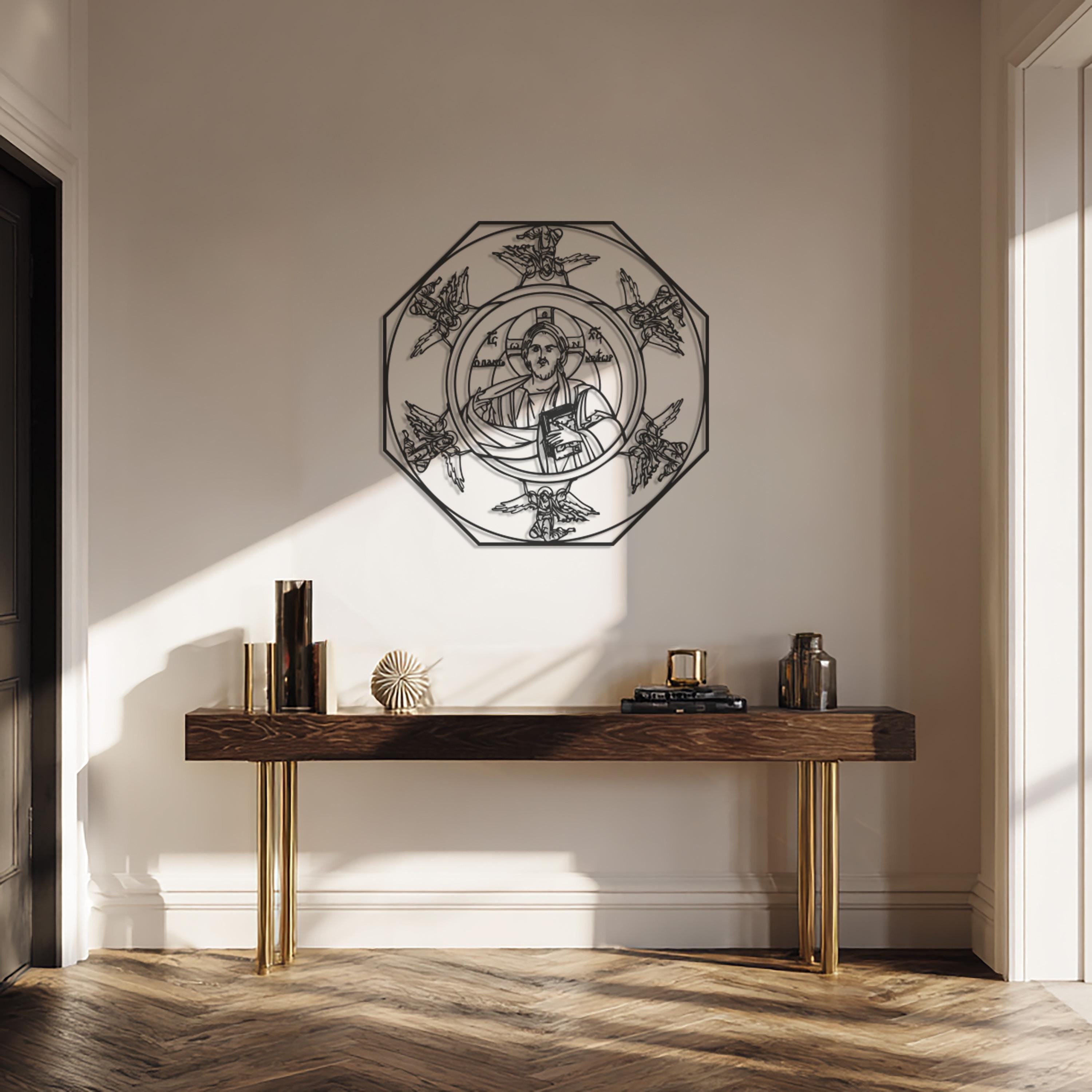 Bring a divine presence into your space with this Sacred Icon Metal Wall Art, featuring a detailed depiction of a saint surrounded by celestial angels. Crafted from premium-quality black metal, this piece combines sacred symbolism with modern craftsmanship. Its intricate lines and balanced symmetry make it a stunning addition to any prayer room, home sanctuary, or spiritual setting. Designed to inspire peace and reverence, this art piece unites faith and contemporary elegance in perfect harmony.