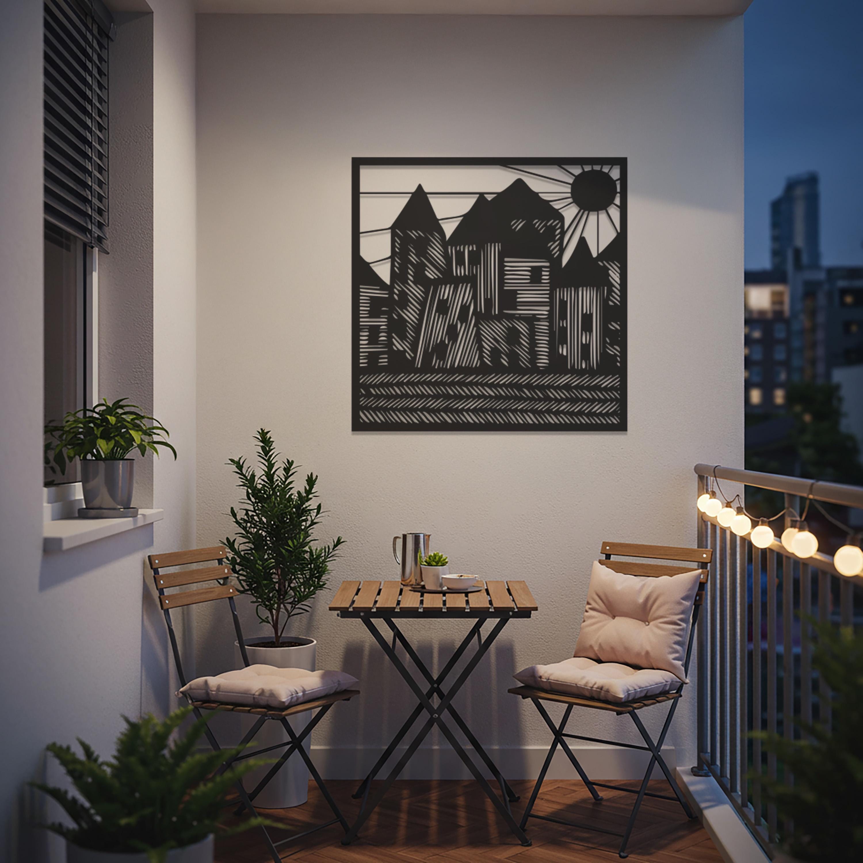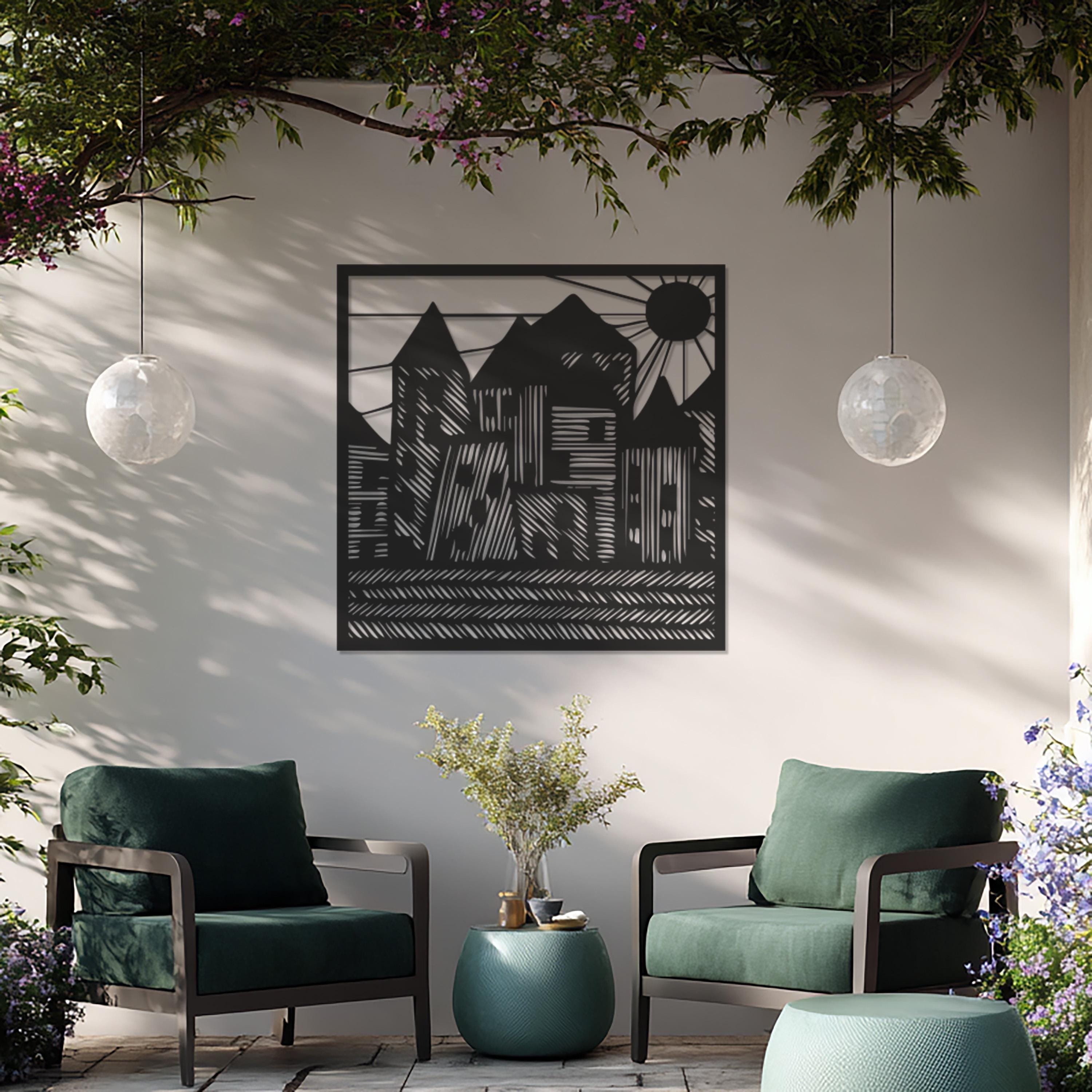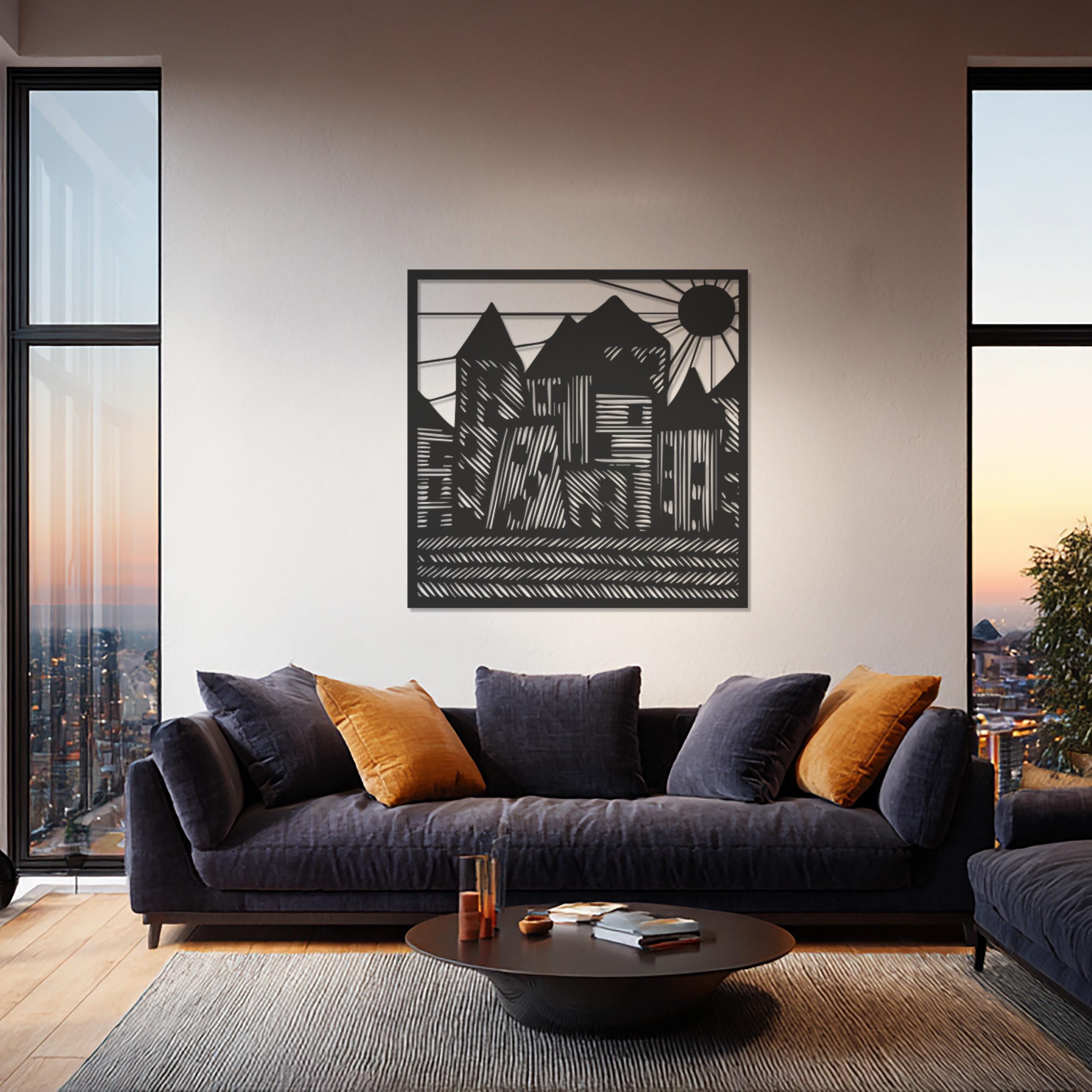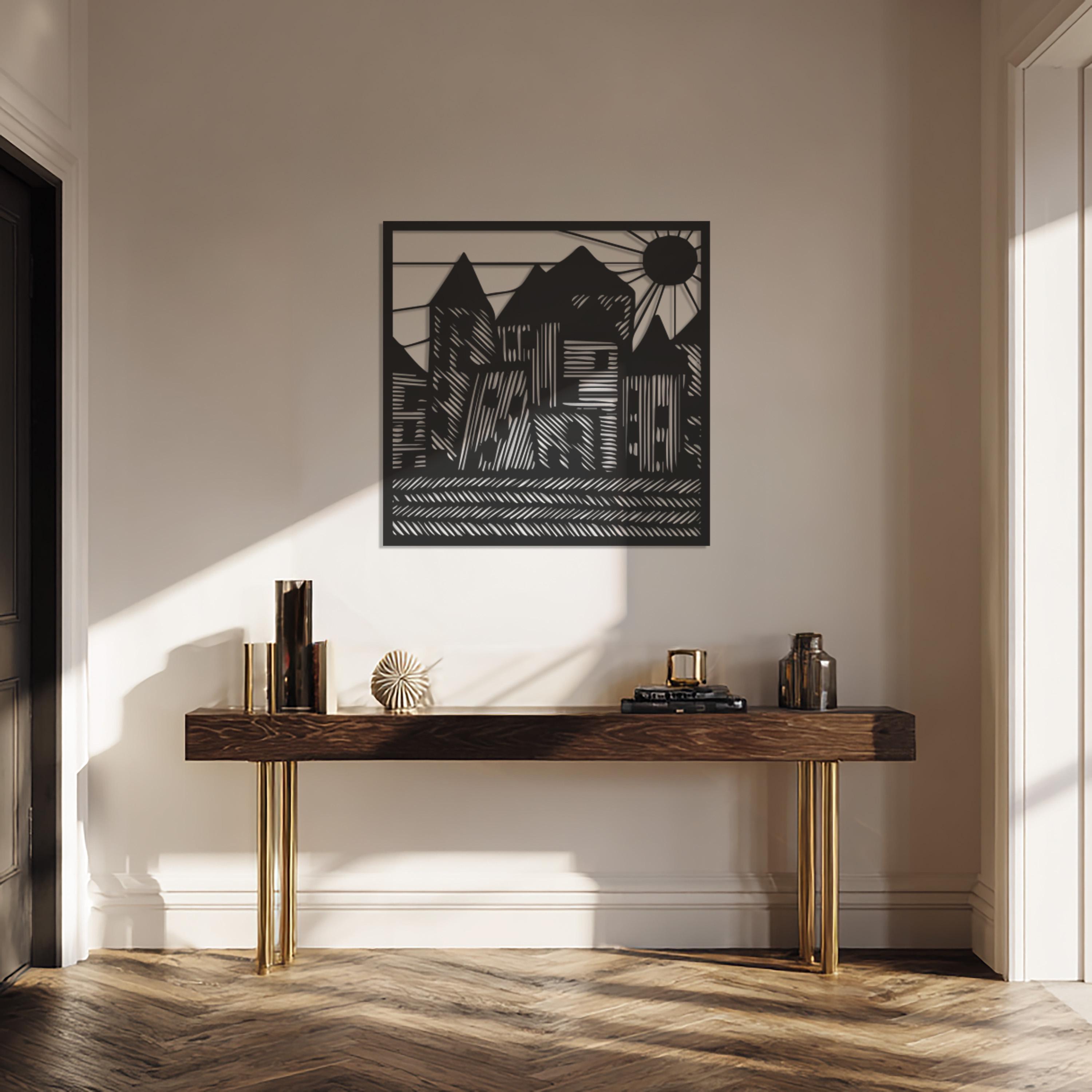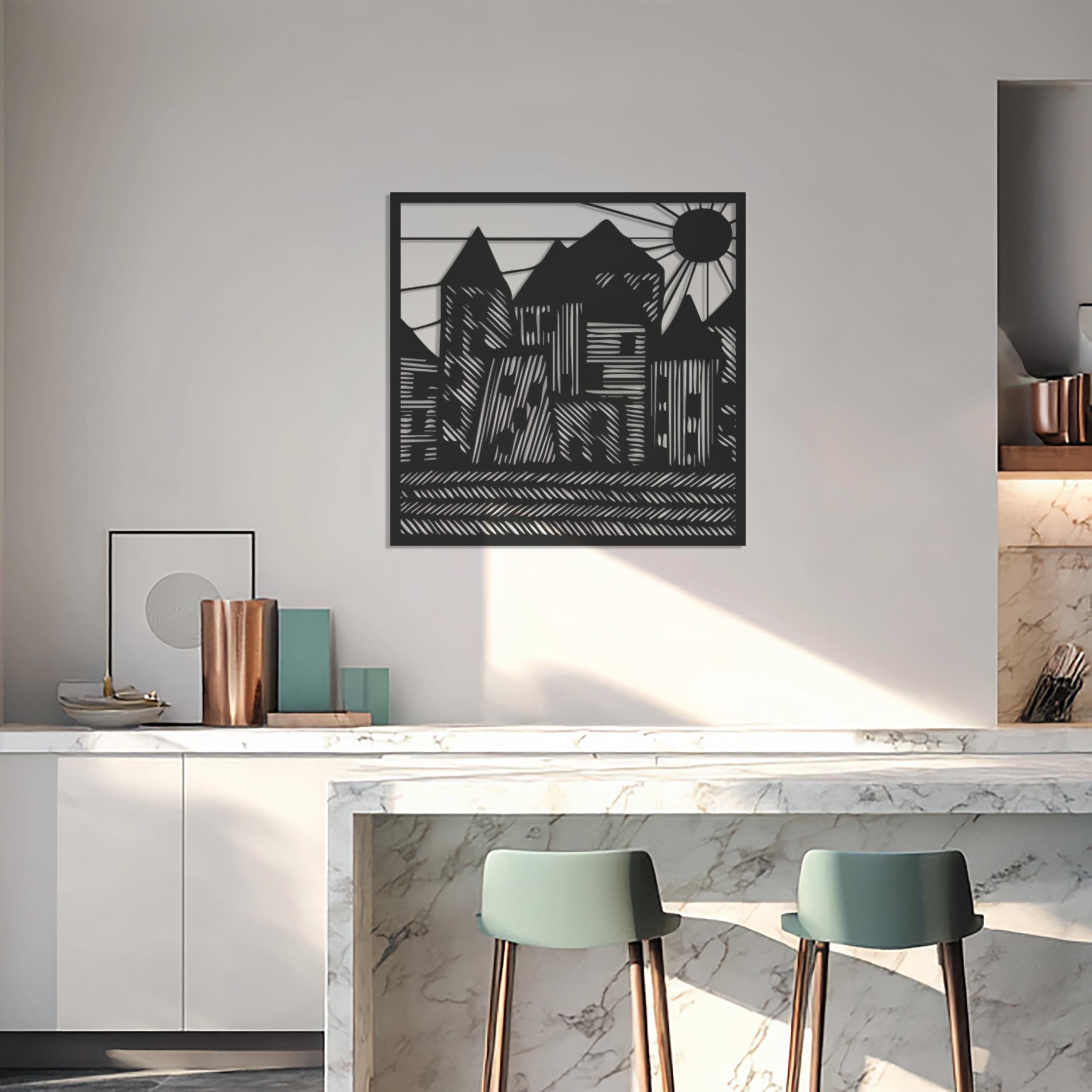 Bring the energy of the city into your home with this Modern Cityscape Metal Wall Art. Featuring a minimalist skyline with geometric precision, this black metal artwork captures the dynamic spirit of urban architecture under the rising sun. Perfect for modern interiors, it adds depth, sophistication, and a contemporary edge to your living room, office, or hallway. A stunning statement piece for those who love city life and artistic design.