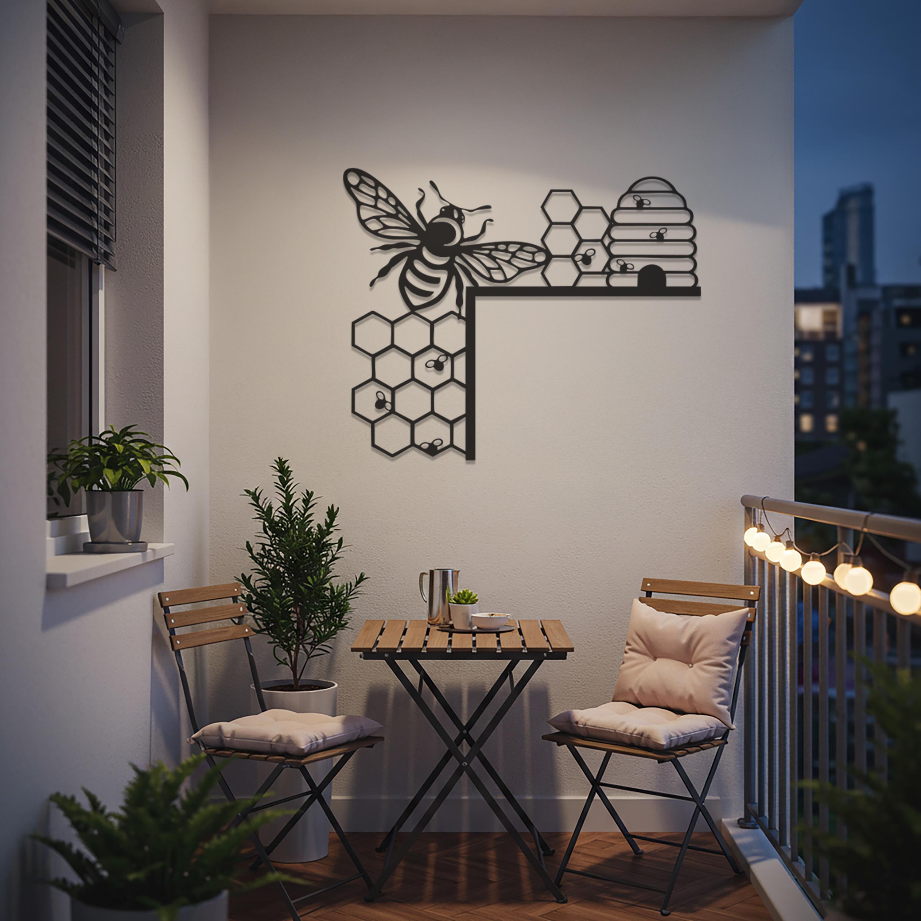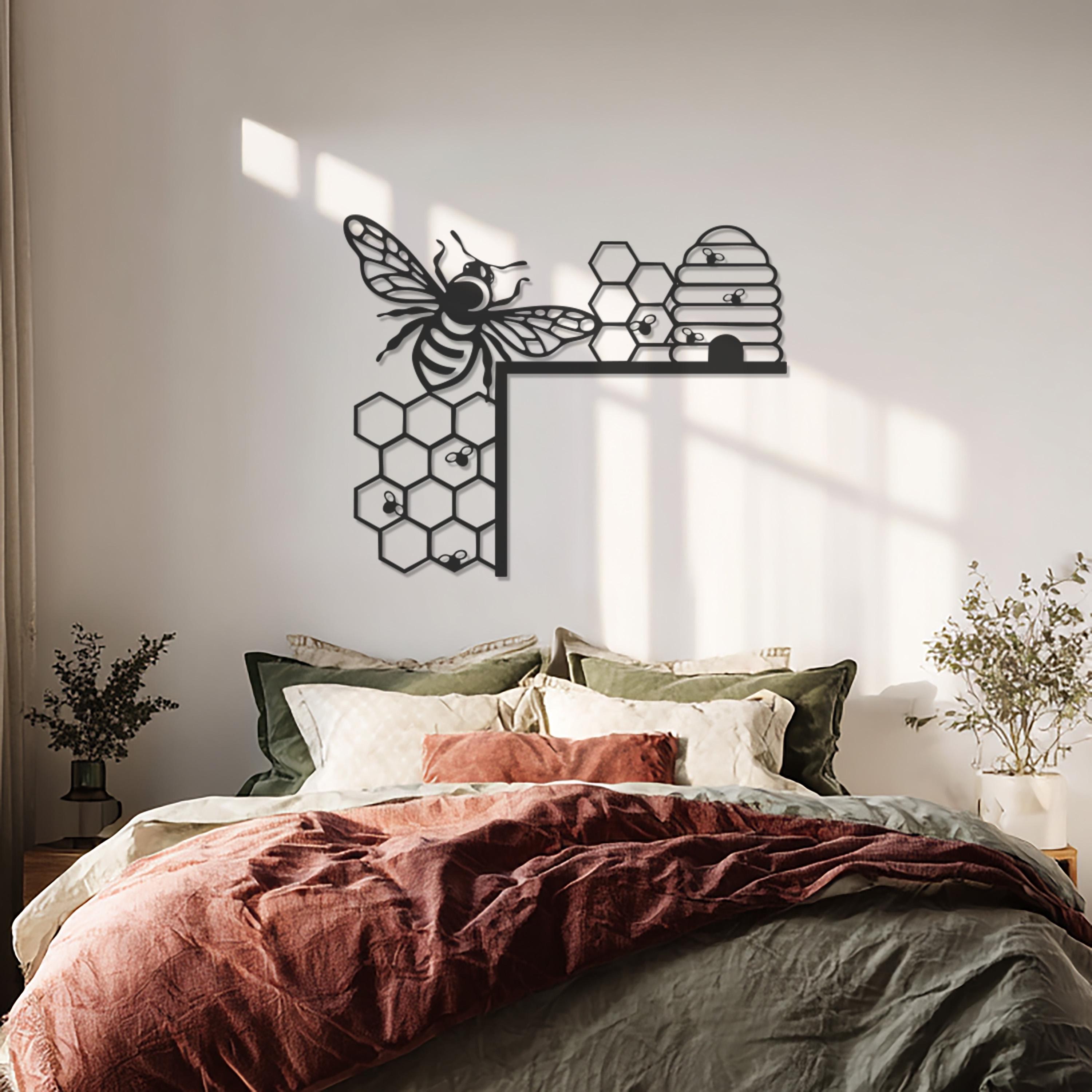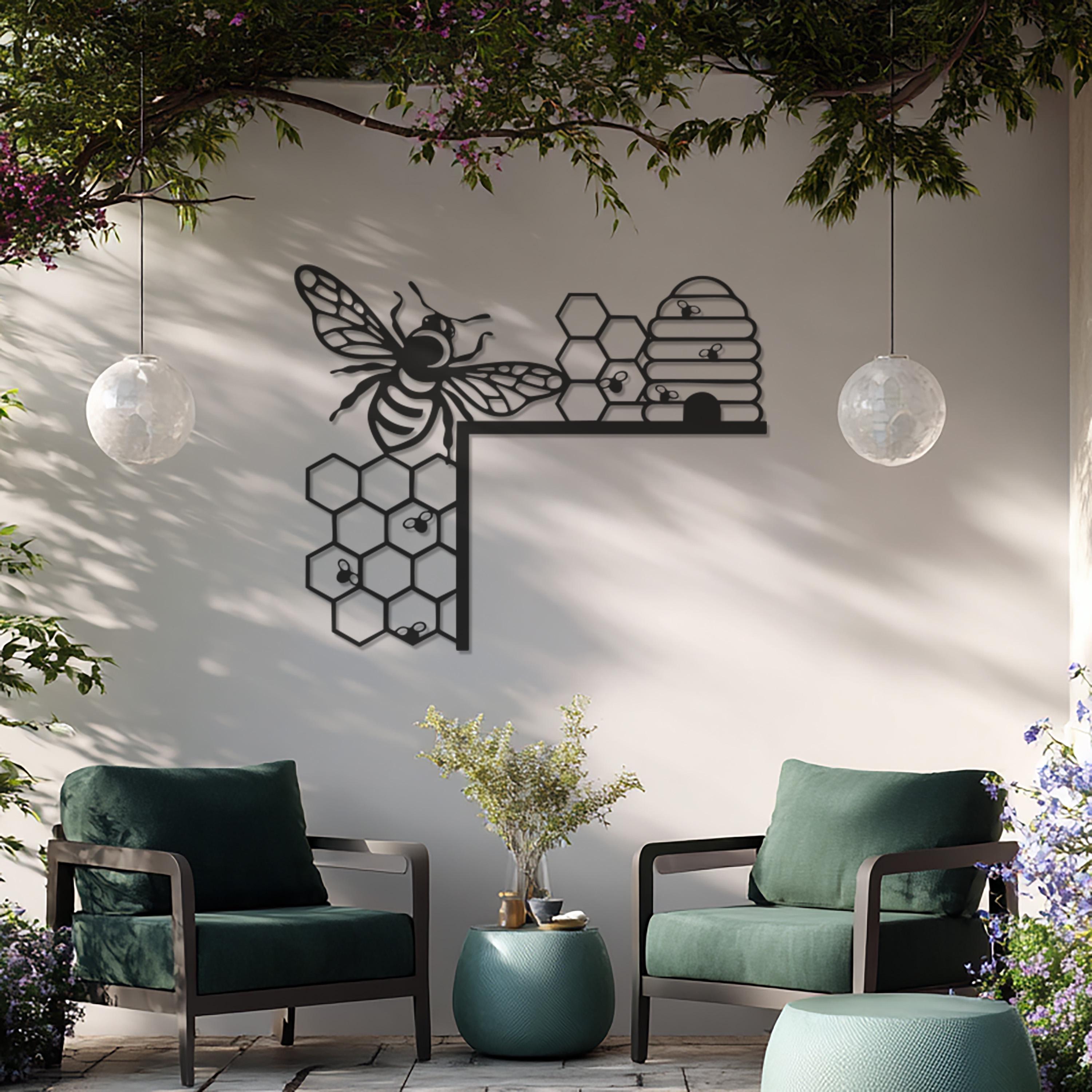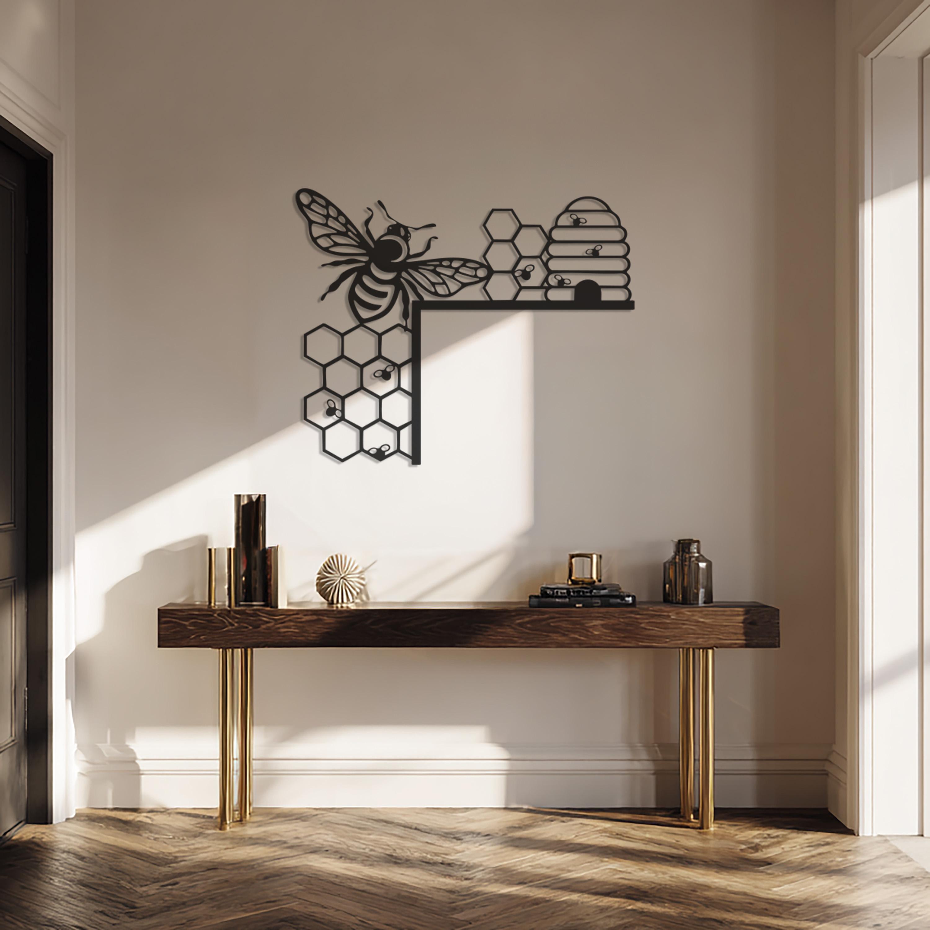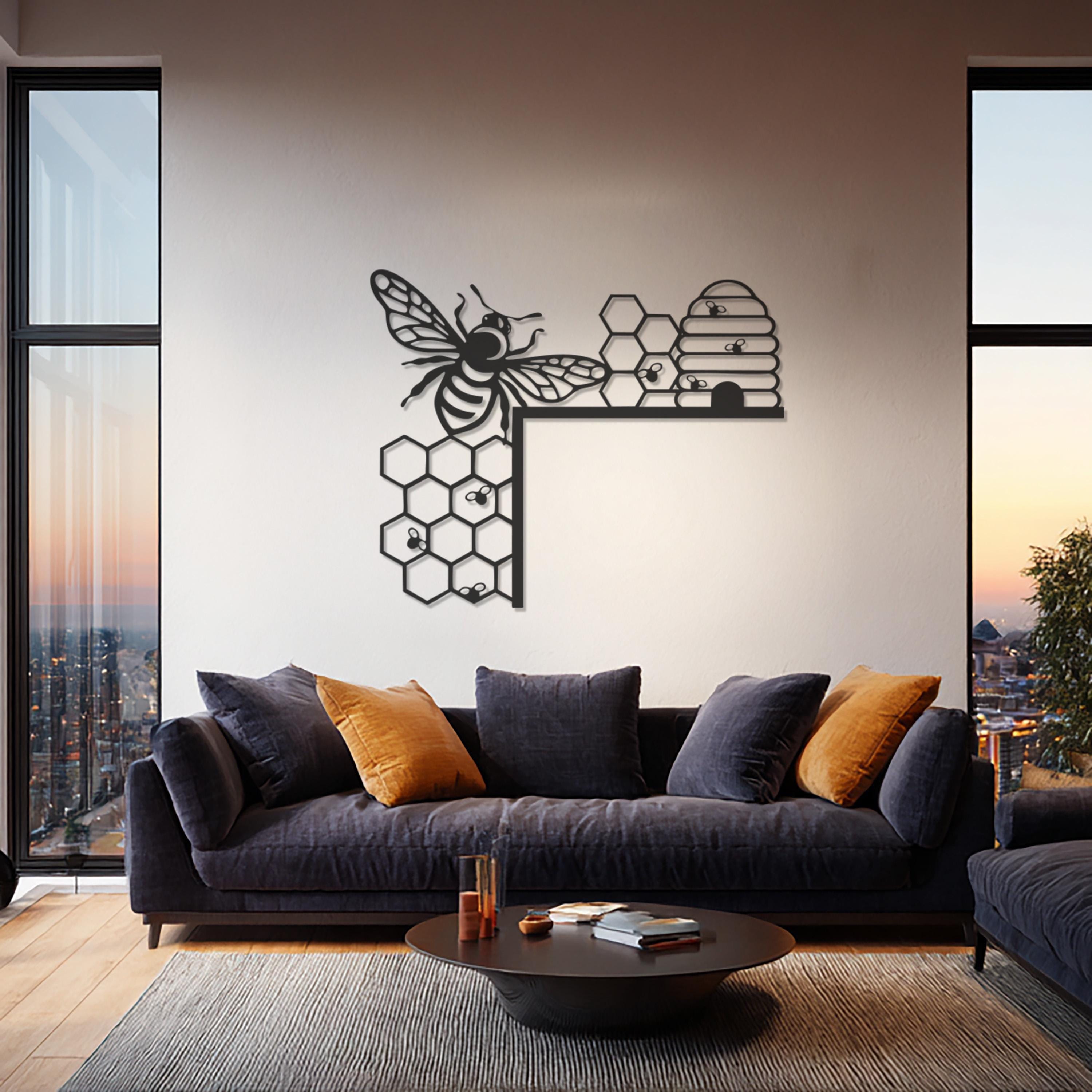 Bee and Honeycomb Metal Wall Art, Modern Nature-Inspired Design, Black Metal Bee Hive Decor for Kitchen, Living Room, or Office Wall