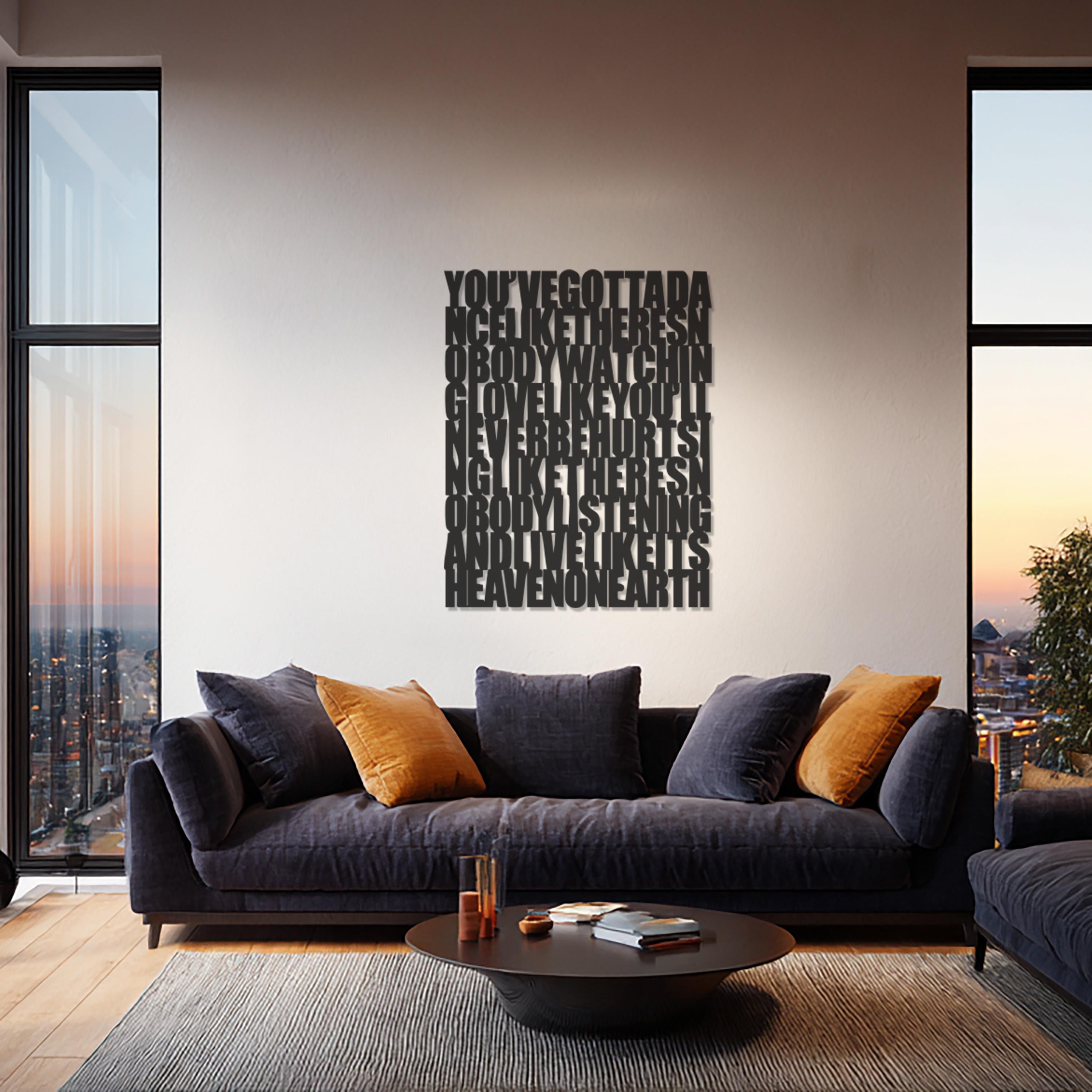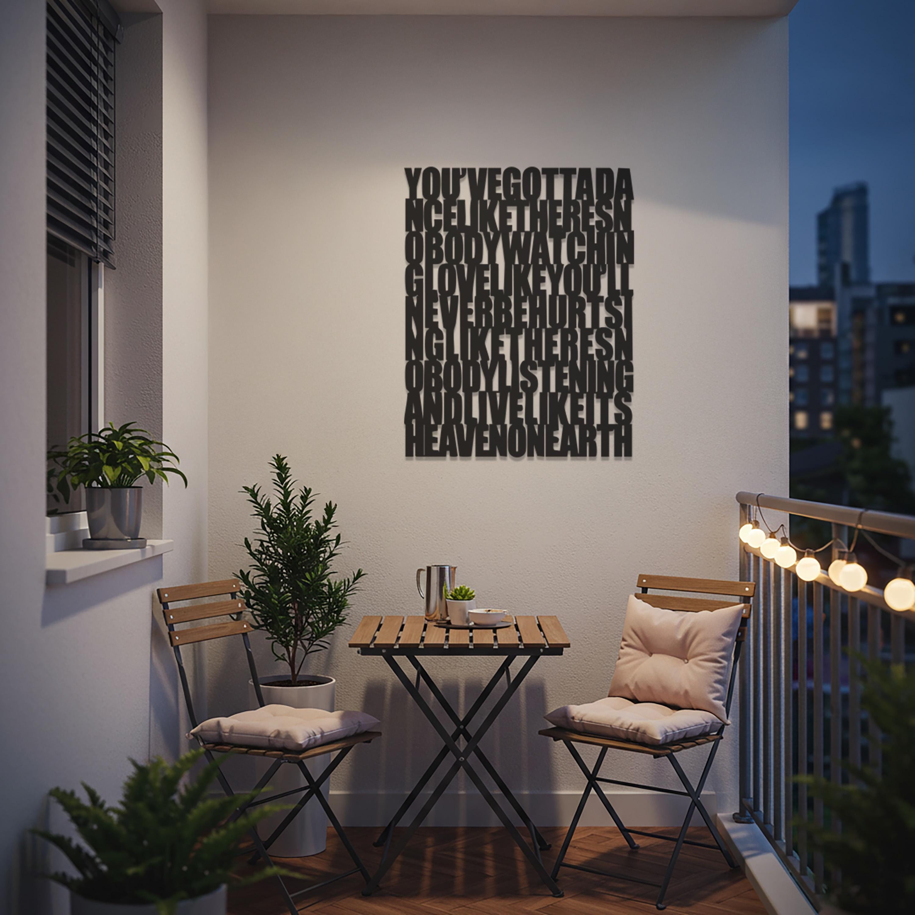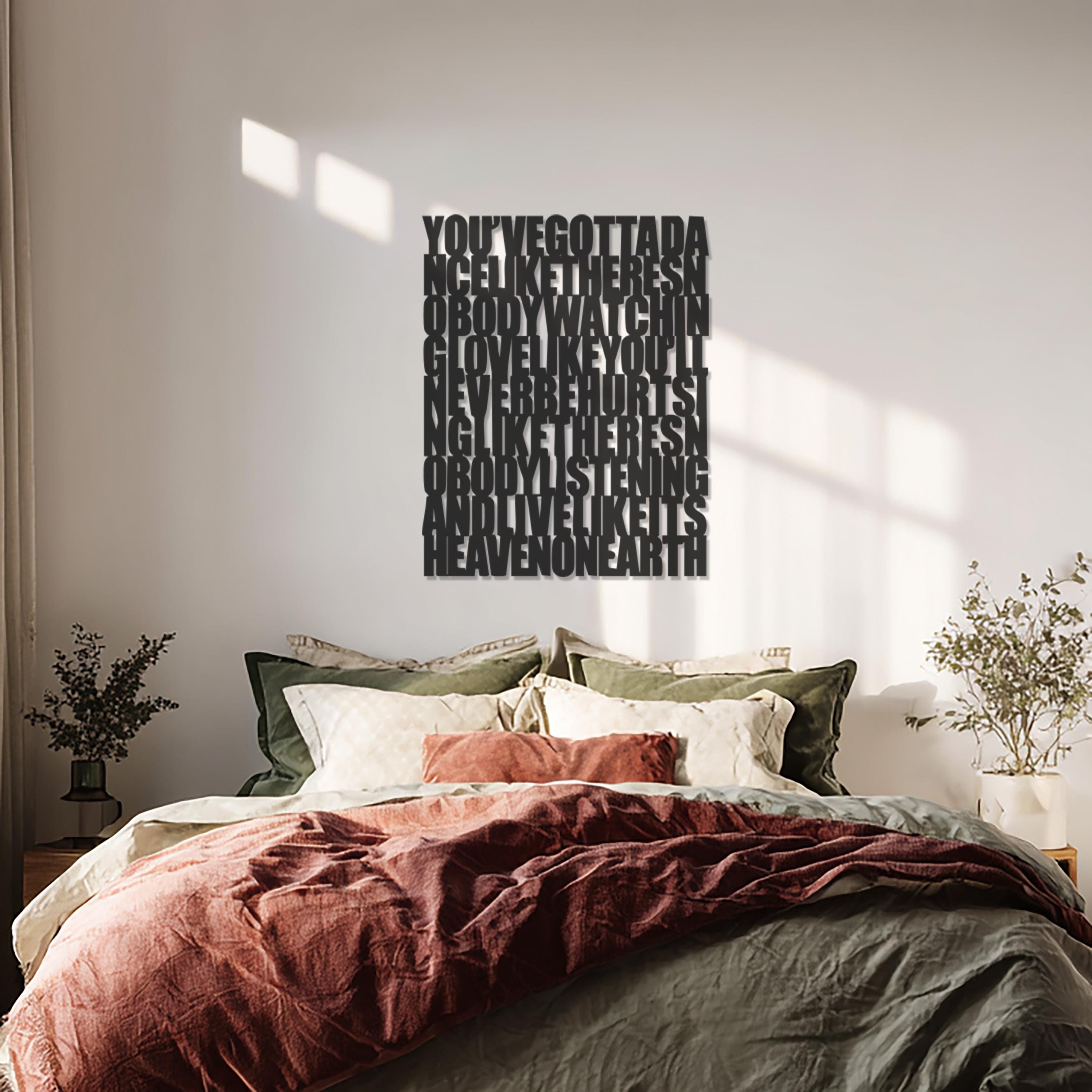 Inspire your daily life with this Inspirational Quote Metal Wall Art. Featuring elegant typography that reads “Dance like there’s nobody watching, love like you’ll never be hurt…”, this wall art brings positivity and motivation to any space. Perfect for modern interiors, it blends clean design with meaningful words — ideal for your living room, office, or bedroom. Crafted from high-quality matte black metal, it’s durable, stylish, and easy to mount.