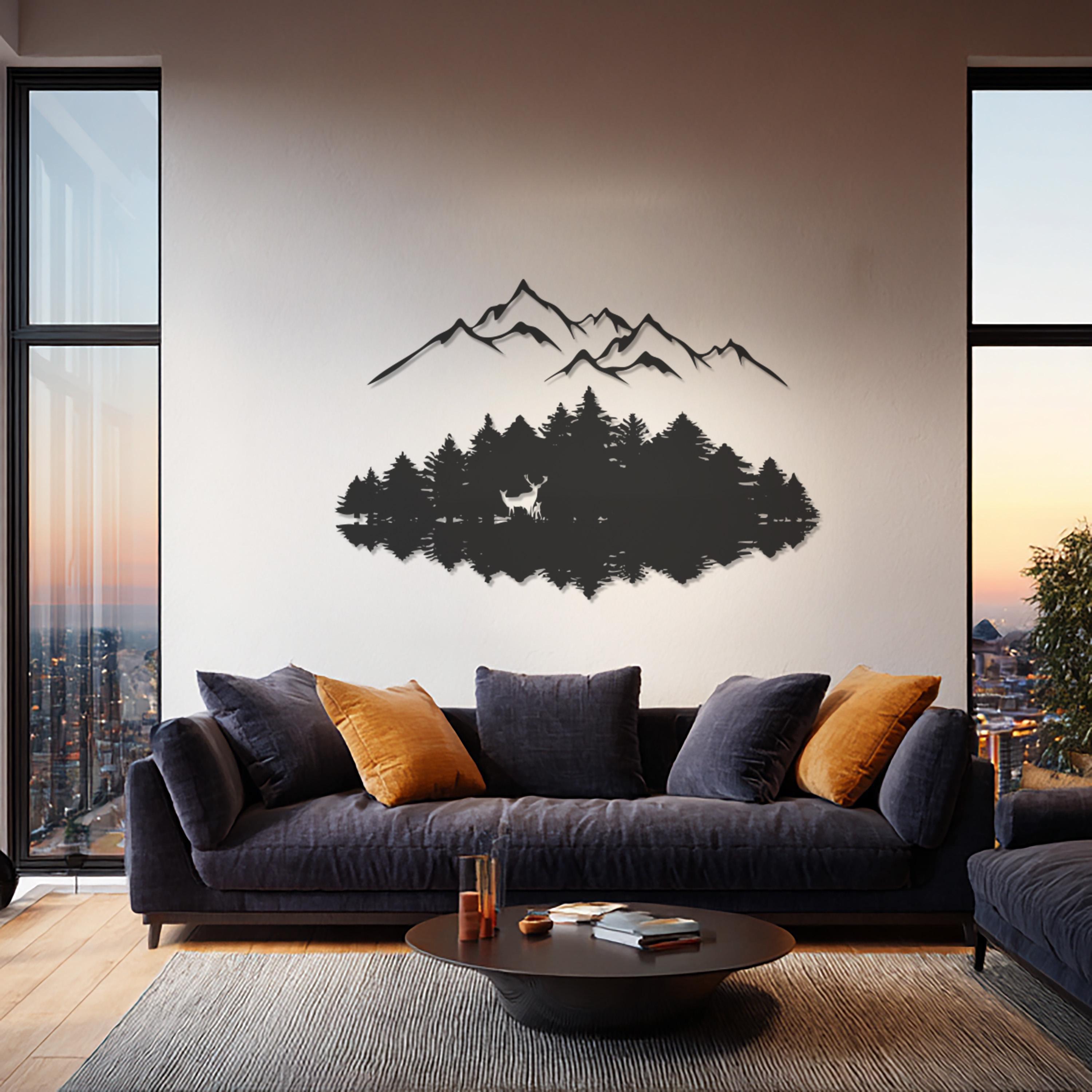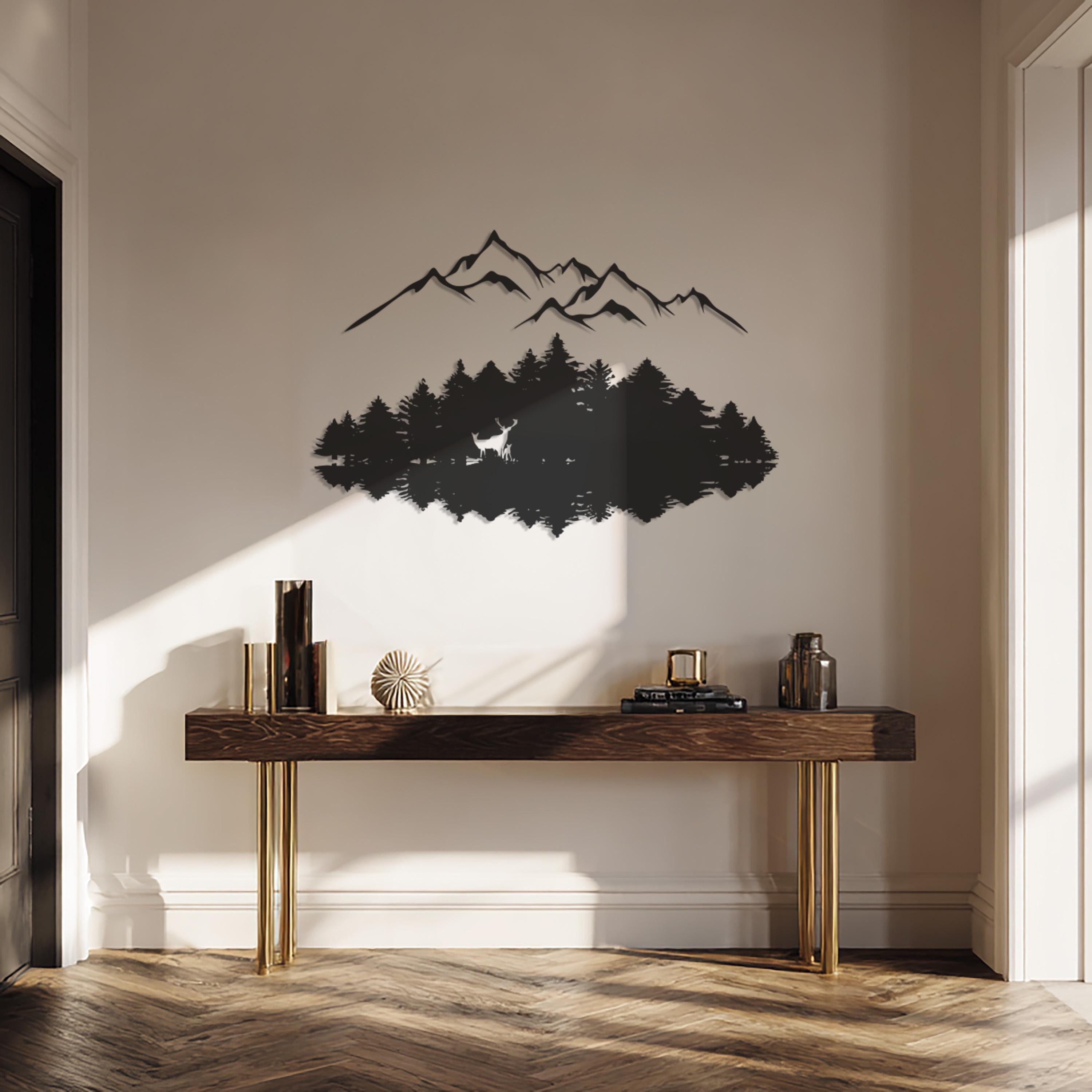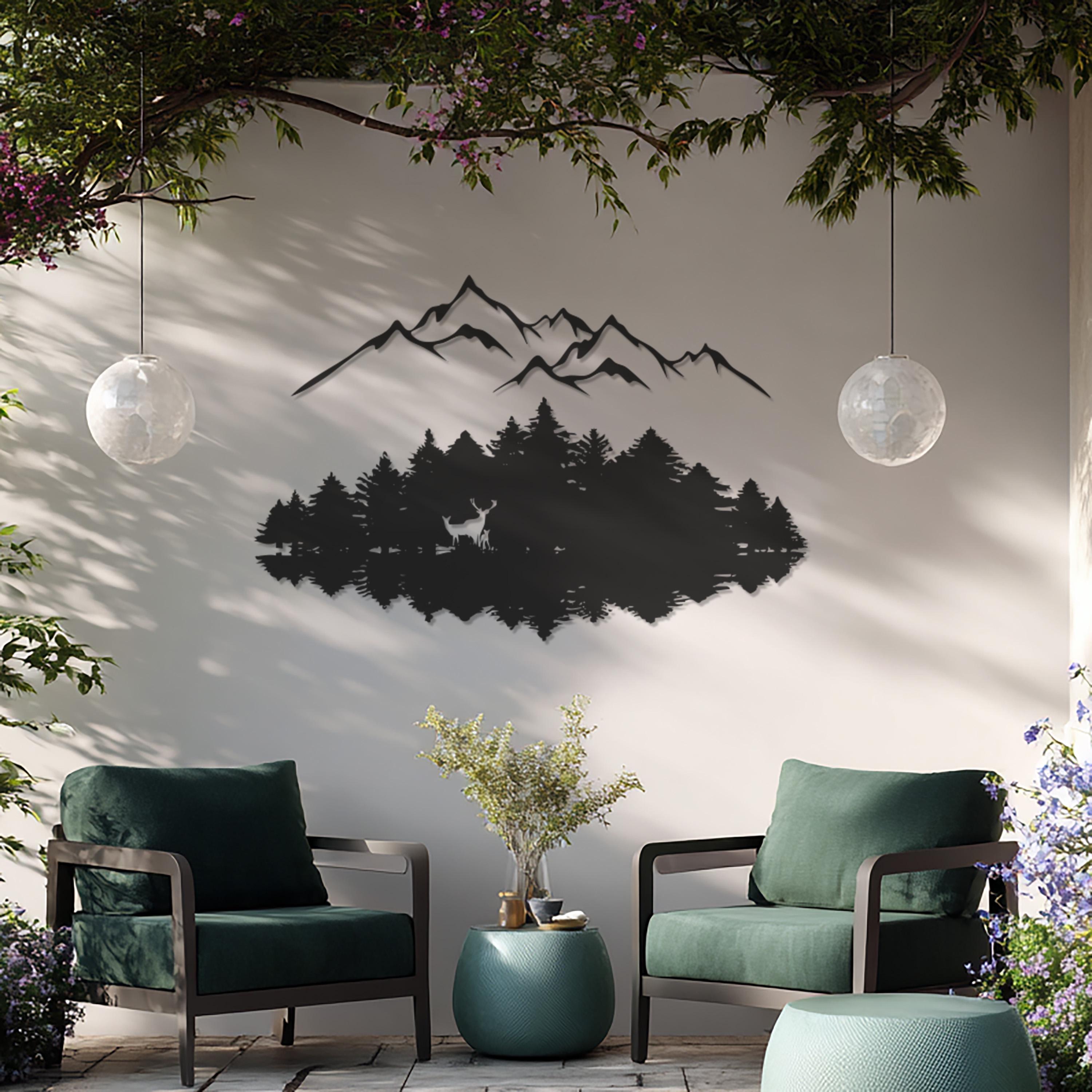 Mountain Forest Metal Wall Art, Nature Landscape Design, Modern Deer Silhouette, Minimalist Wilderness Decor for Living Room, Office, Cabin