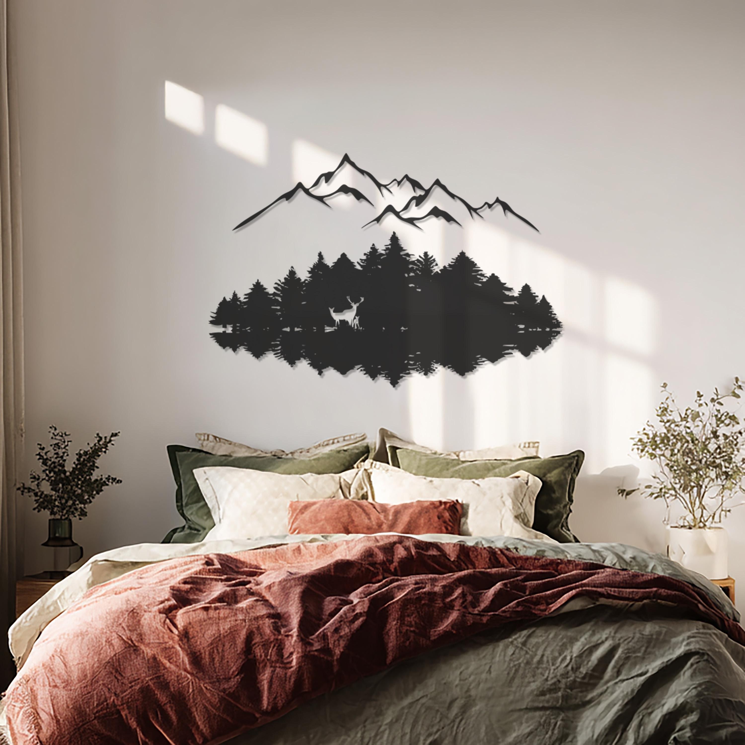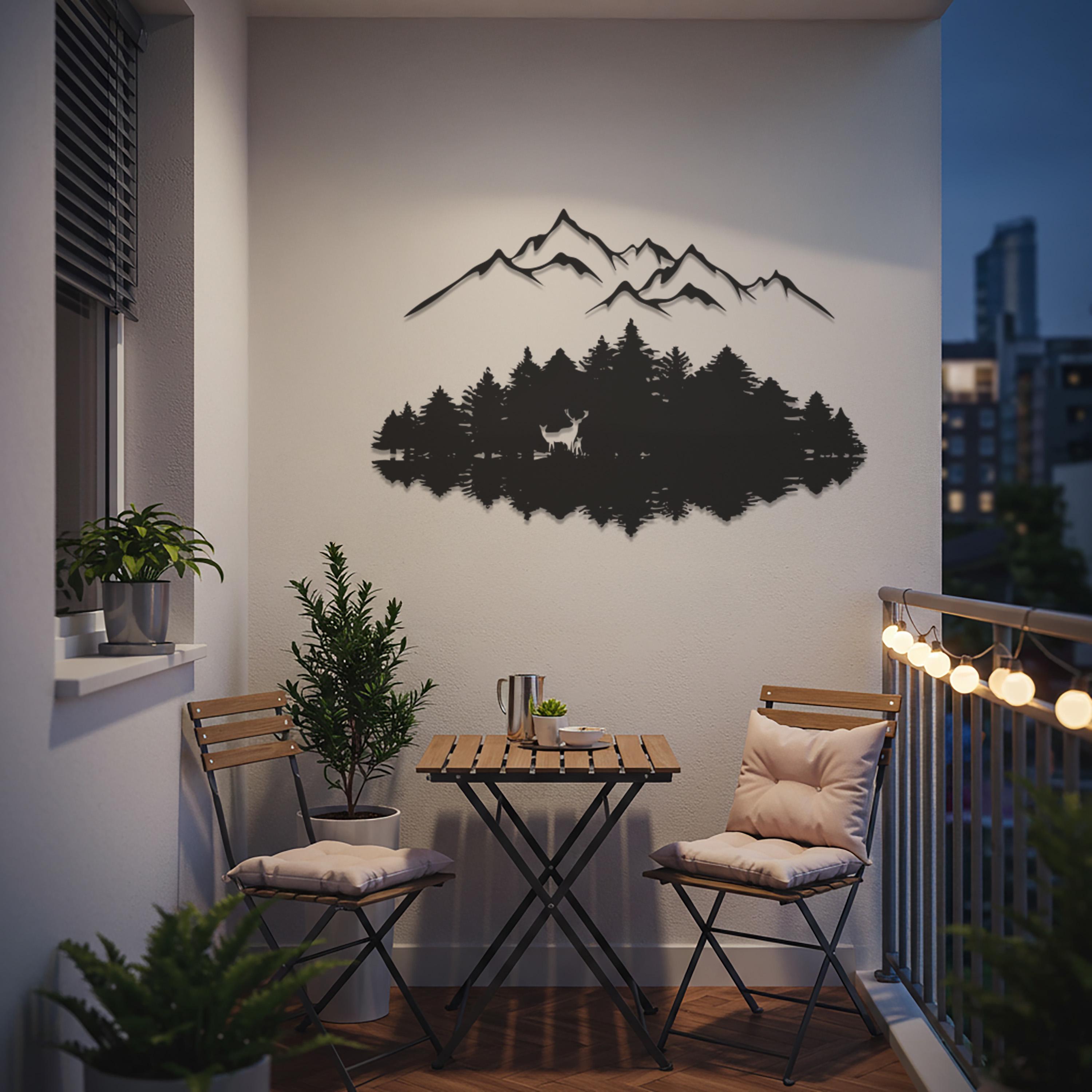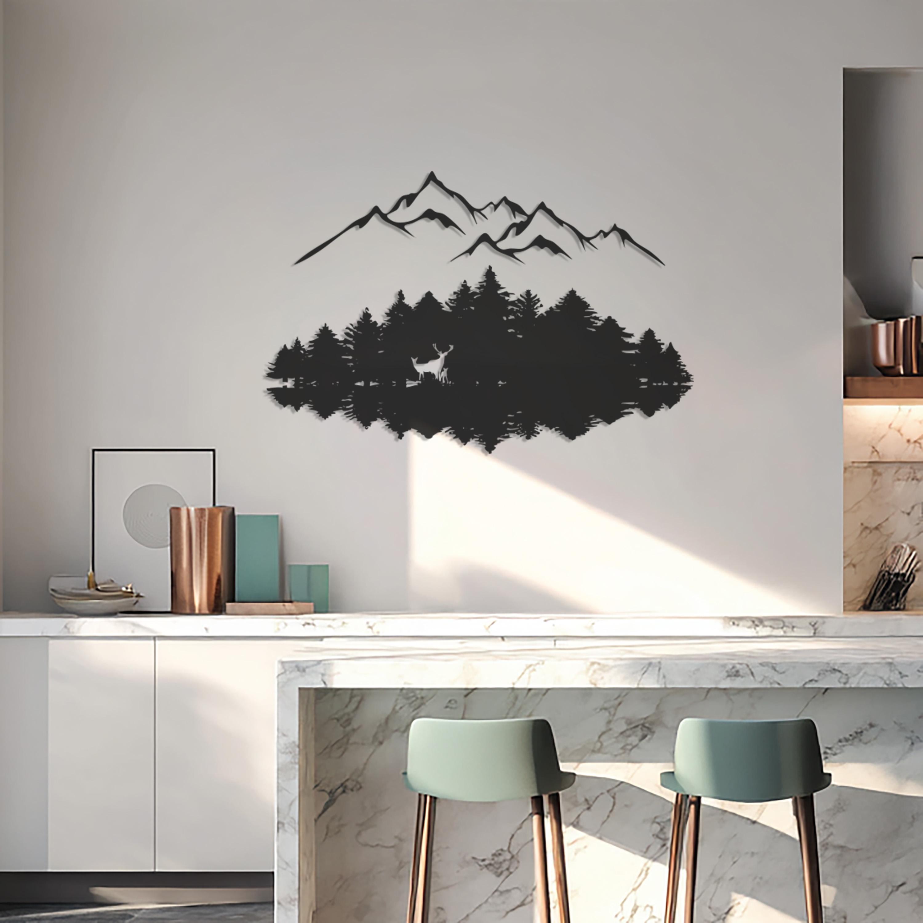 Mountain Forest Metal Wall Art, Nature Landscape Design, Modern Deer Silhouette, Minimalist Wilderness Decor for Living Room, Office, Cabin