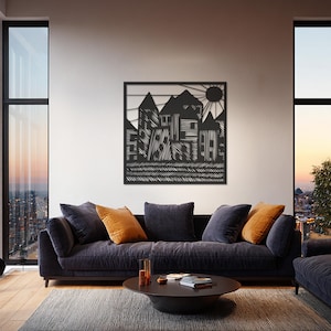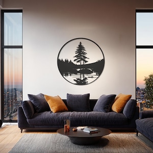 Bring the serenity of nature into your home with this Mountain Forest Metal Wall Art. Featuring majestic peaks, pine trees, and a deer by the water, this design captures the beauty of wilderness in a minimalist modern style. Crafted from durable metal, it’s lightweight, easy to hang, and perfect for nature lovers who want a calm, earthy atmosphere in their space.