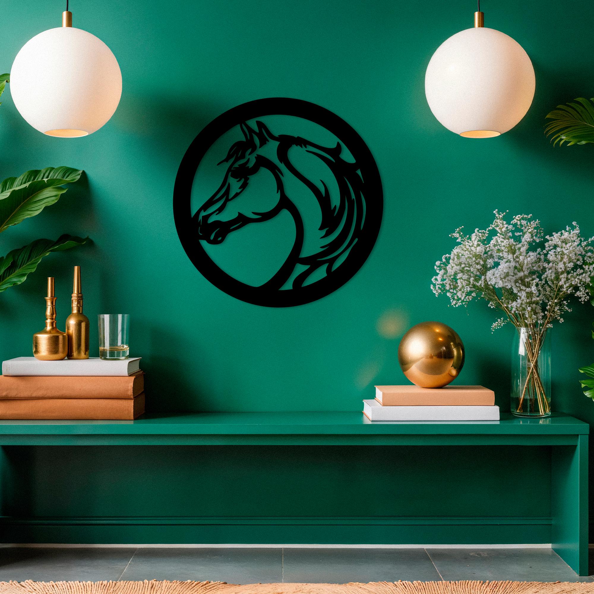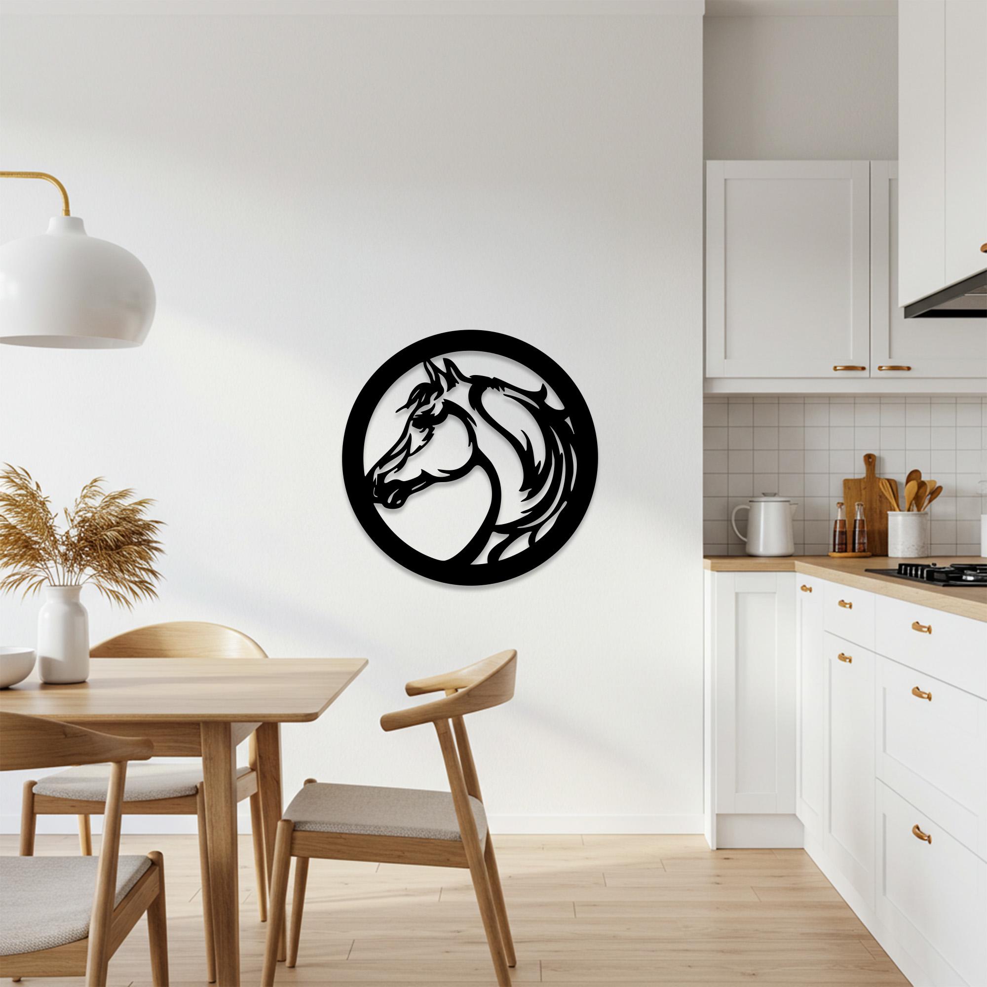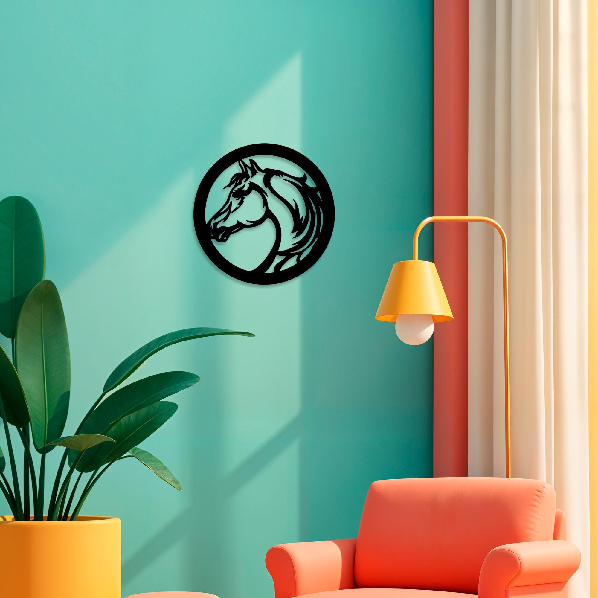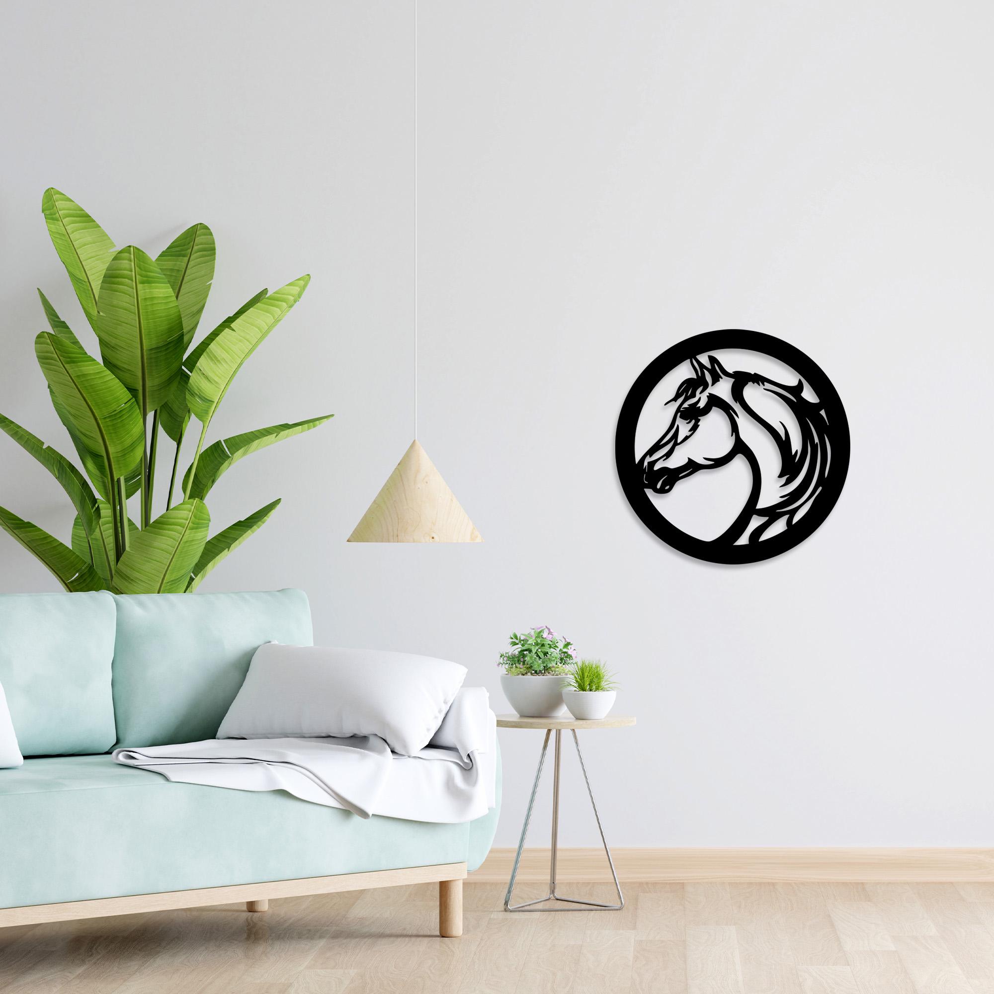 Perfect for living rooms, hallways, or country homes, this circular horse silhouette design brings sophistication and rustic charm to any interior.