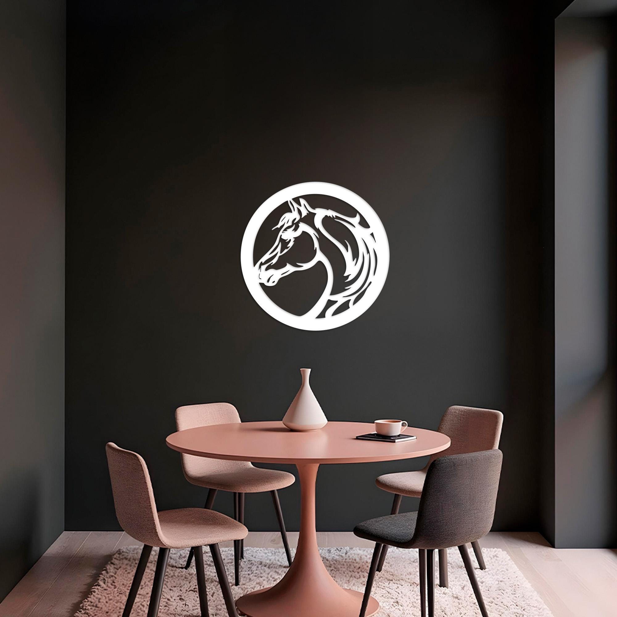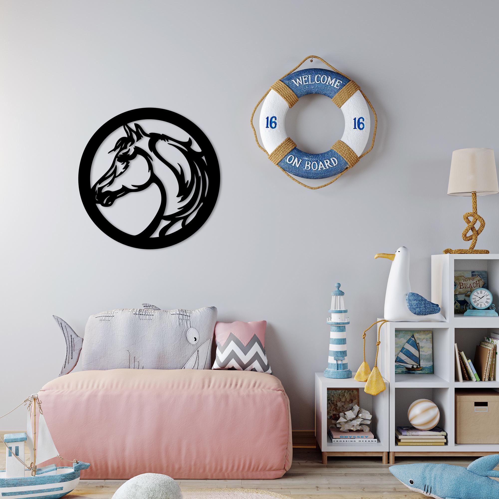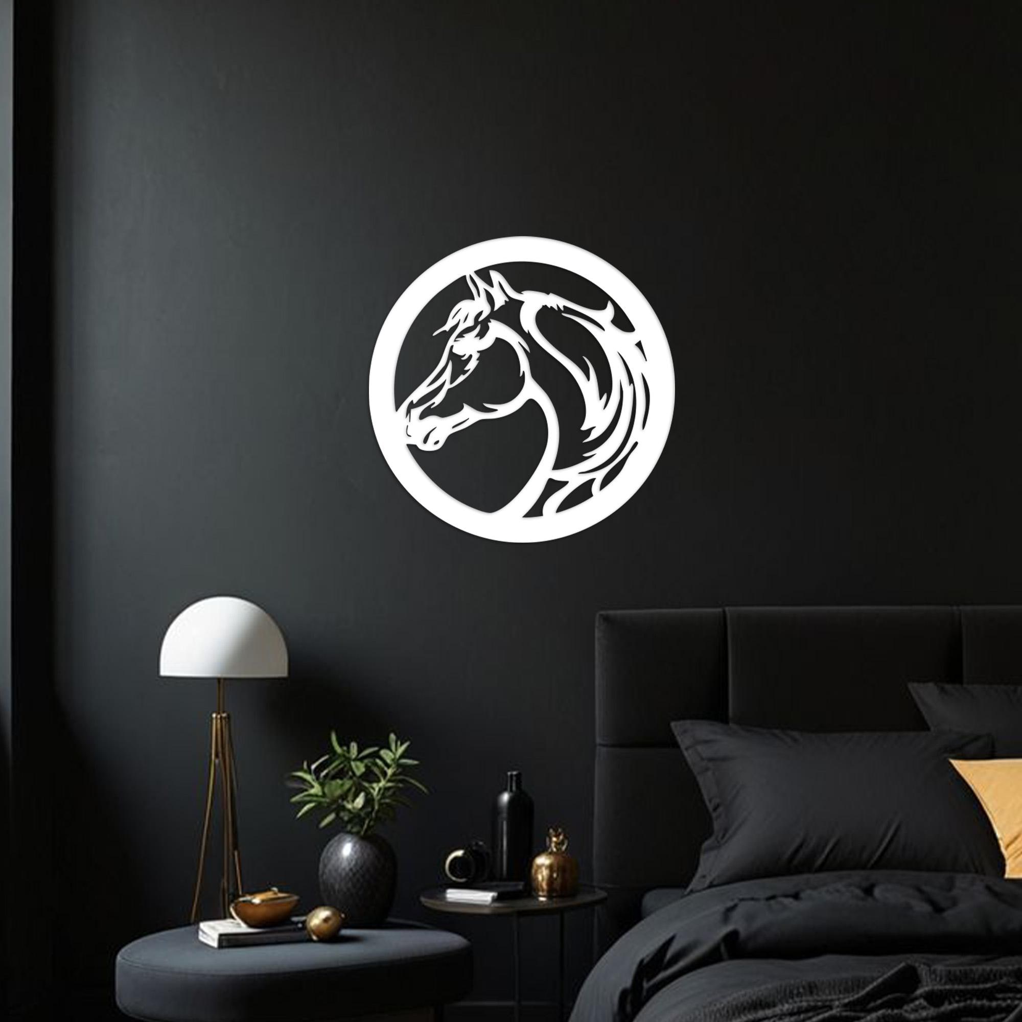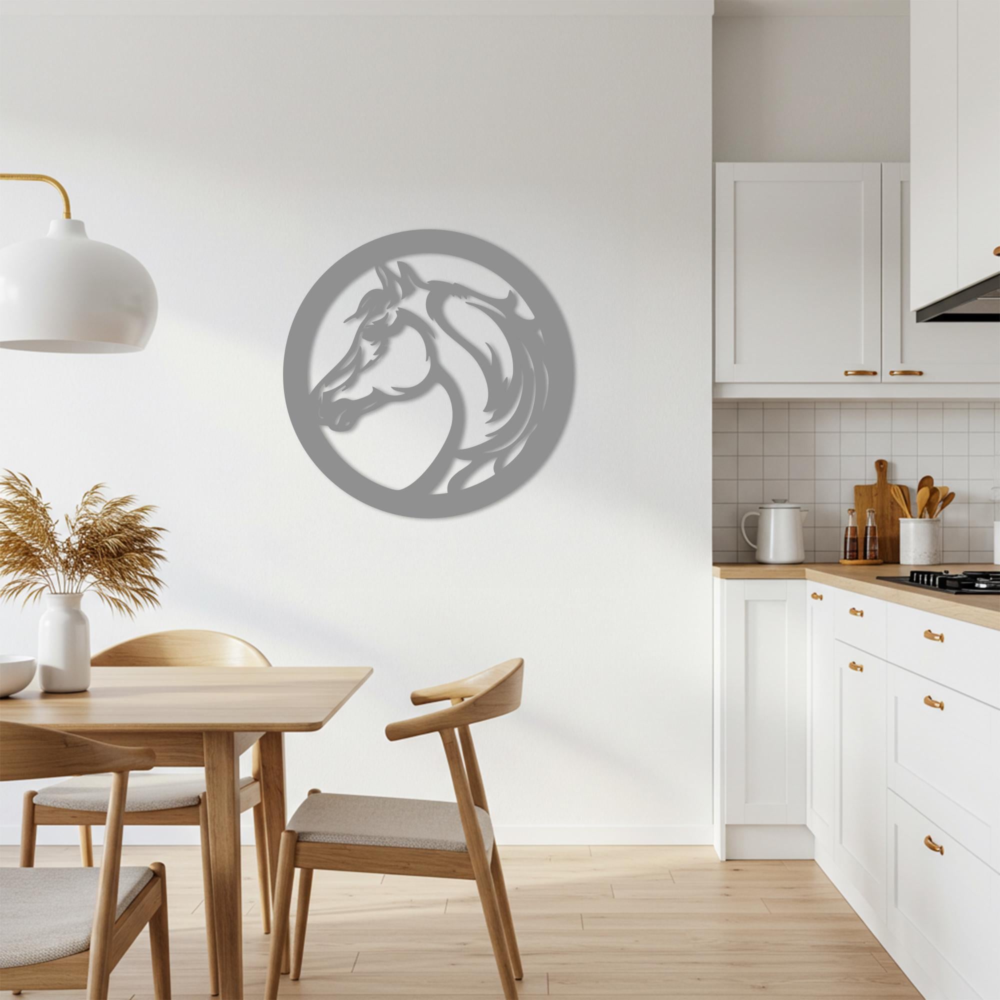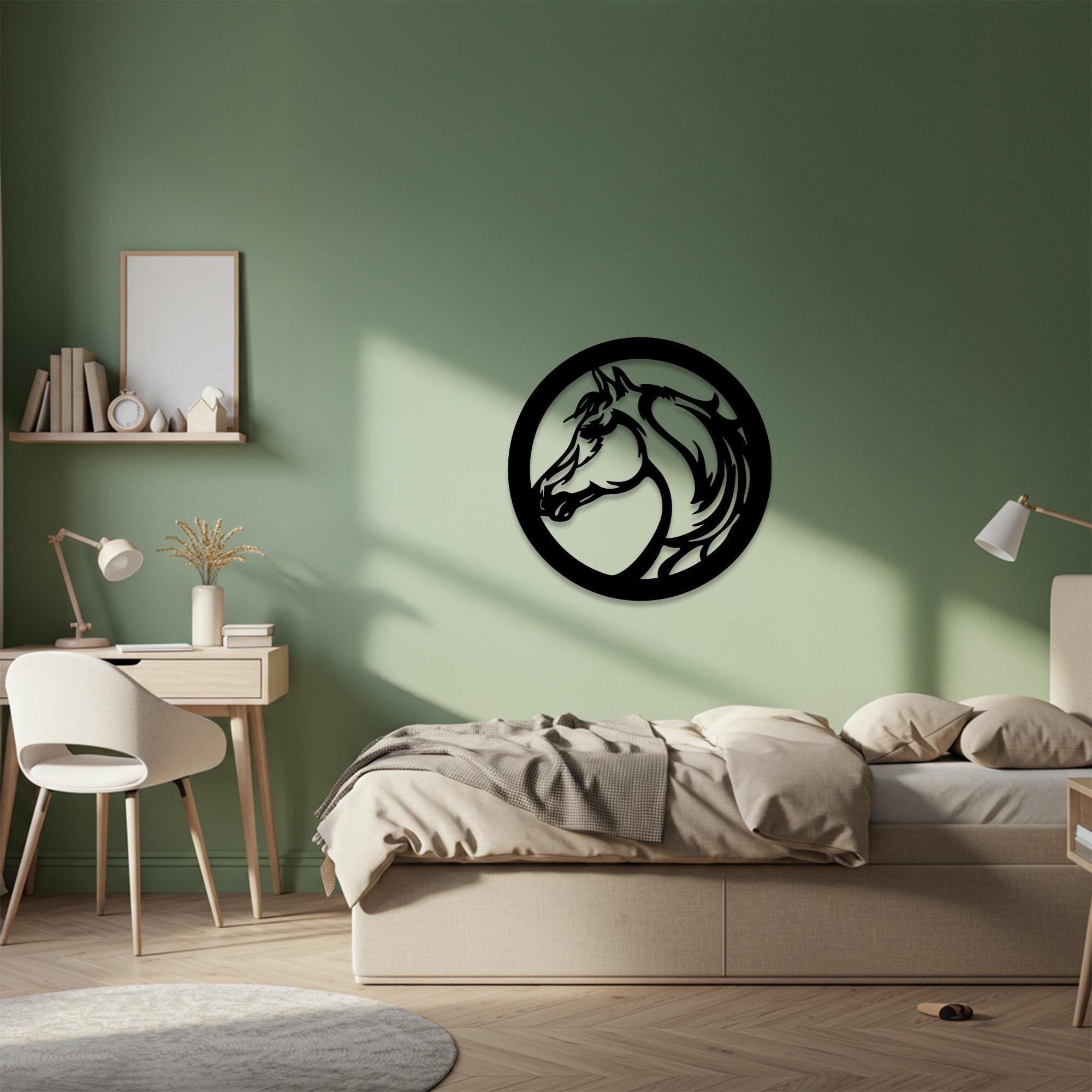Perfect for living rooms, hallways, or country homes, this circular horse silhouette design brings sophistication and rustic charm to any interior.