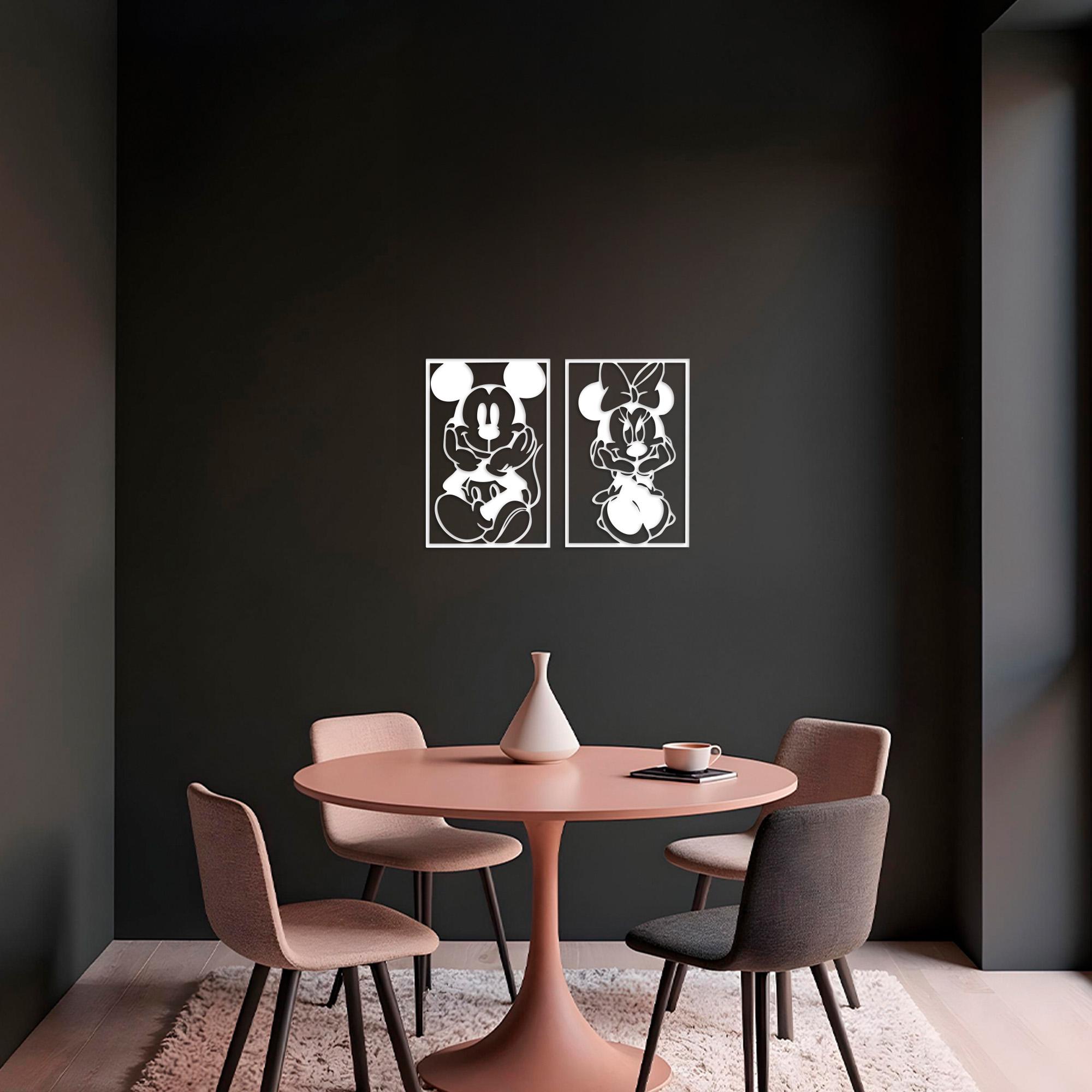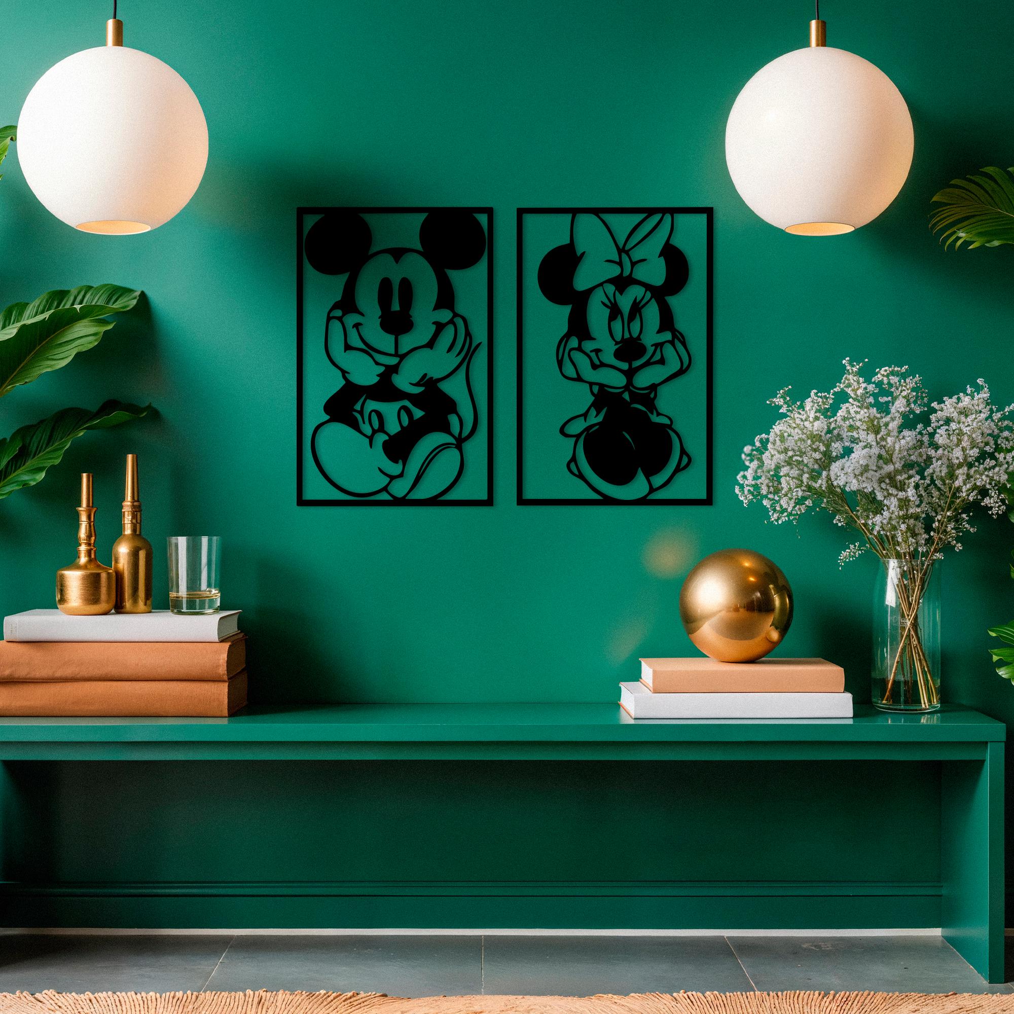 Bring a heartwarming touch of joy and whimsy to your space with our captivating Cartoon Mouse Couple Metal Wall Art. This adorable duo is a must-have for any kids' room, nursery, or playful modern home, celebrating the innocent charm of these beloved characters. Expertly precision-cut from high-quality, durable matte metal, this minimalist wall decor adds a cheerful and sweet touch to any room. It’s the perfect character-inspired accent for playrooms, bedrooms, or creative interiors, beautifully blending modern design with a touch of nostalgia.
