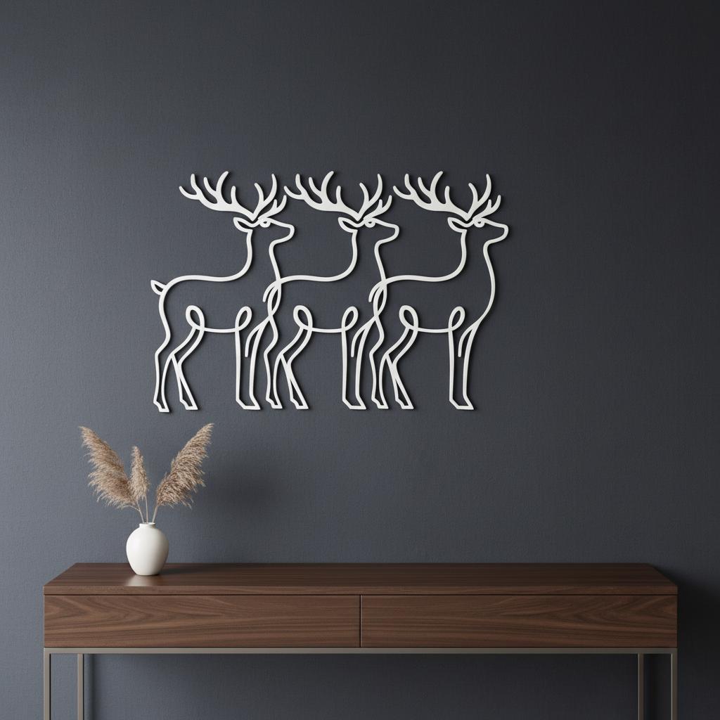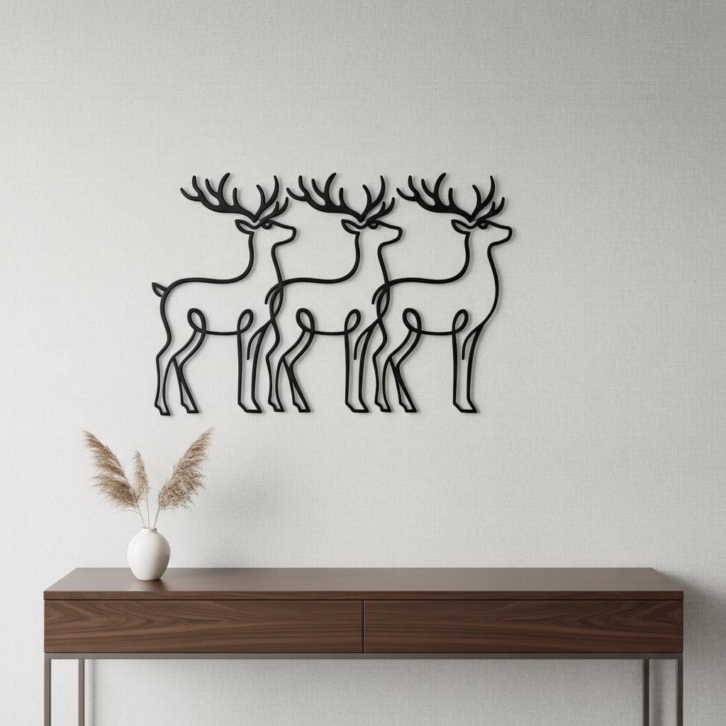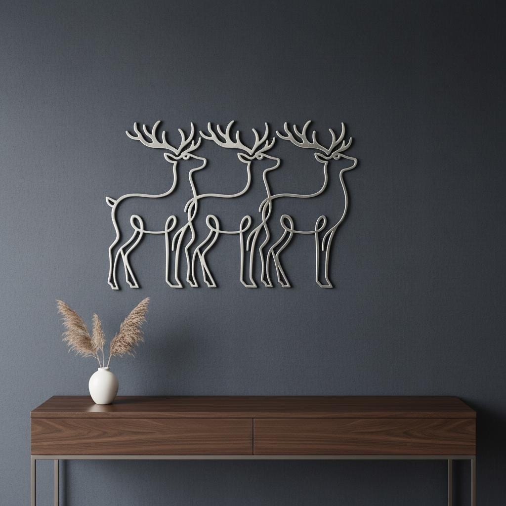 Add a touch of Scandinavian elegance and festive charm to your home with our captivating Minimalist Reindeer Metal Wall Art. This sleek statement piece features three elegant deer silhouettes in a clean, modern design, perfect for holiday cheer or year-round Nordic-inspired styling. Expertly laser-cut from premium, durable metal, this modern wall art adds a sophisticated and serene touch to any space, inviting a sense of calm and natural beauty. It’s the perfect minimalist decor for living rooms, hallways, cabins, or entryways that beautifully blends modern design with the spirit of winter and nature.