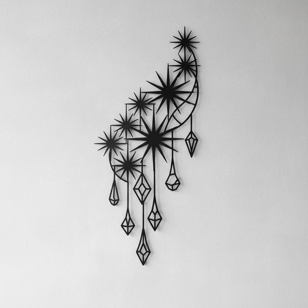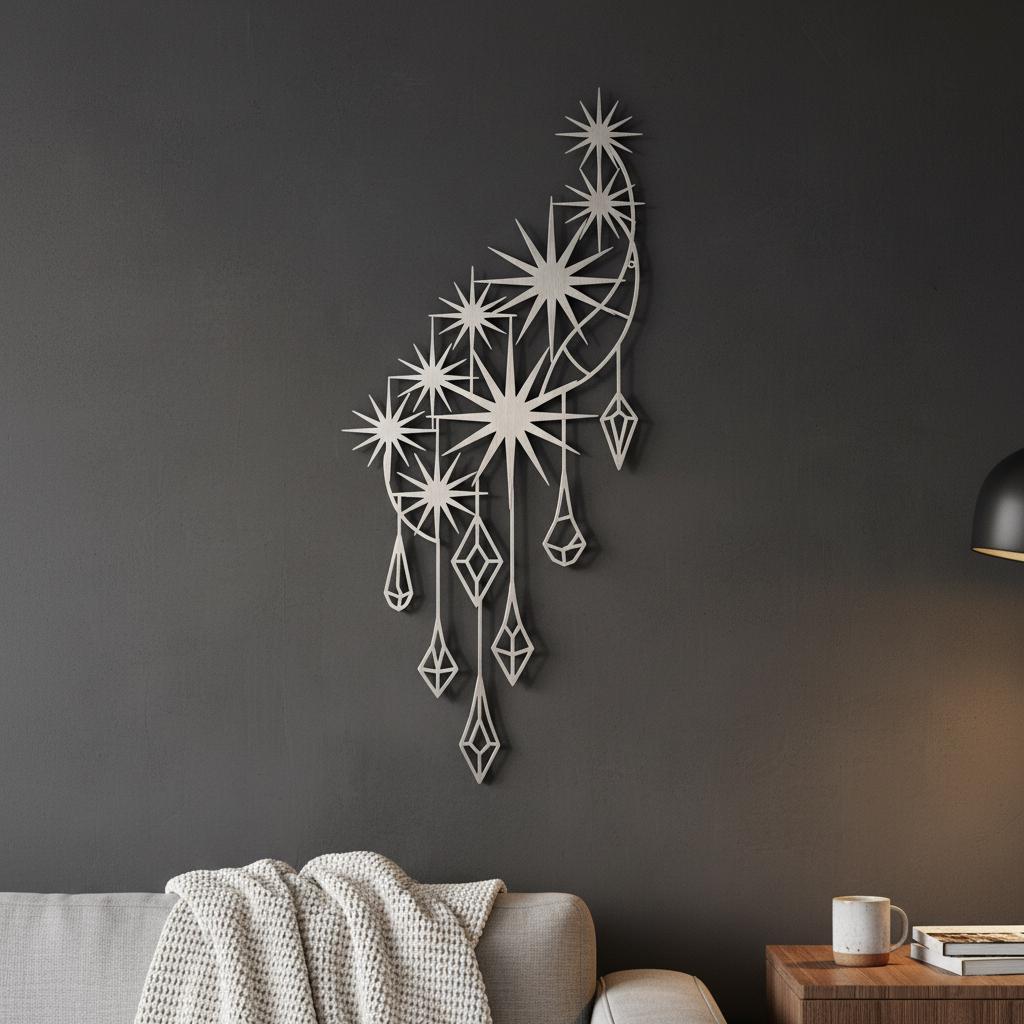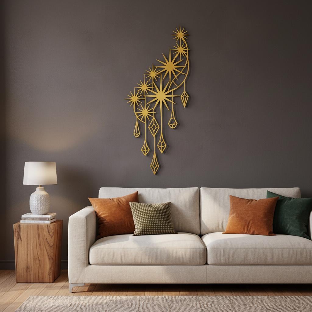 * Enchanting Celestial Design – Features a captivating crescent moon adorned with geometric stars and sparkling hanging crystals, bringing cosmic elegance to your decor.