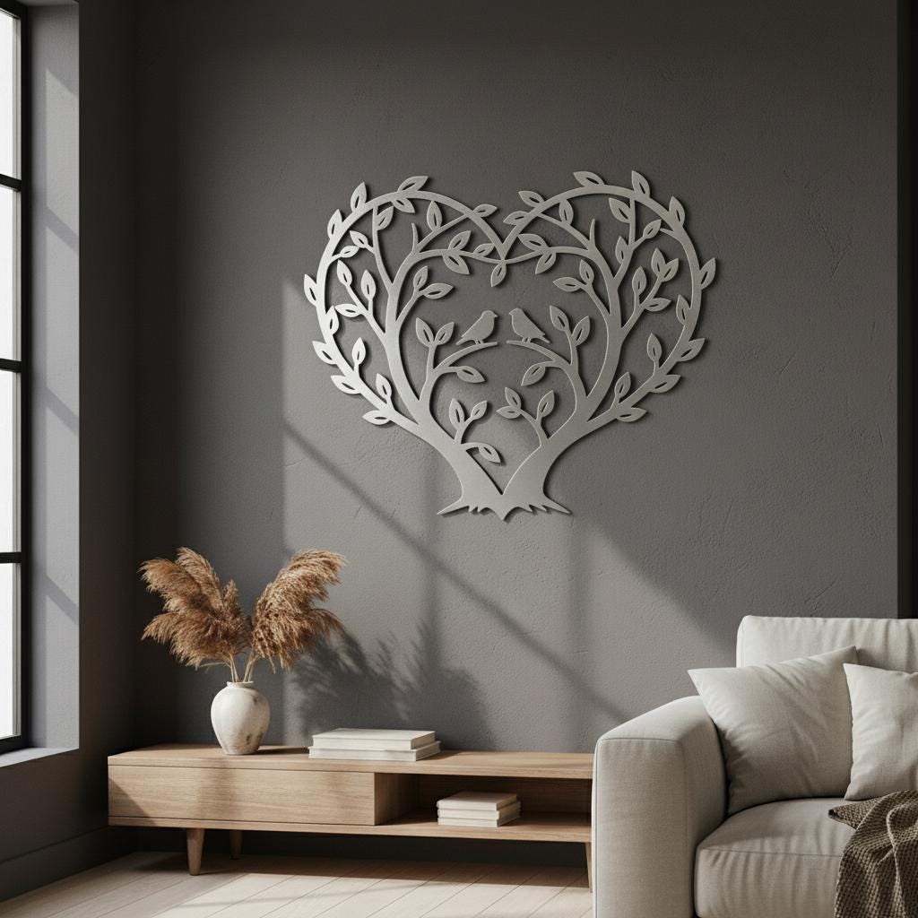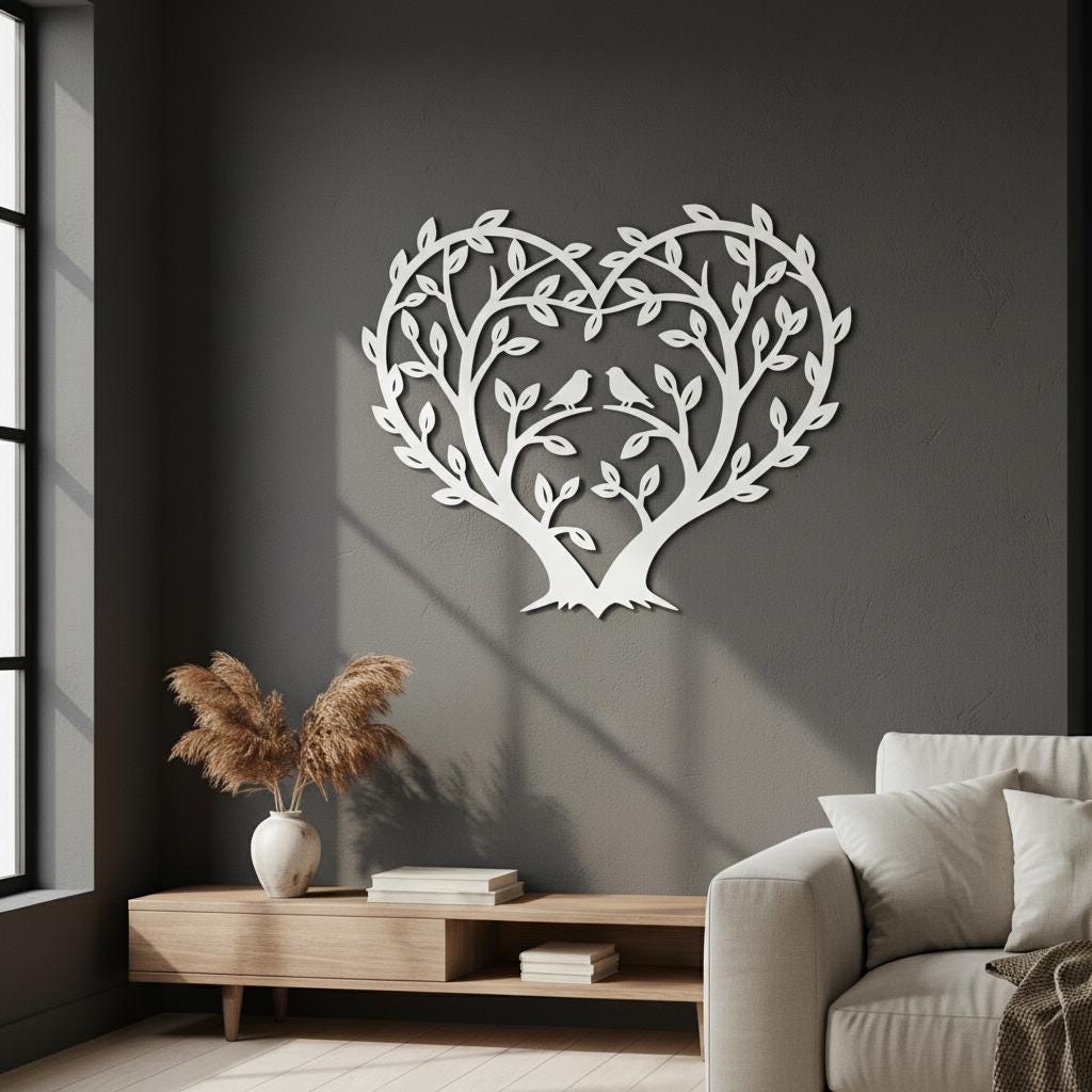 Heartfelt Grove Love Birds Metal Art – Romantic Tree of Life Decor | Modern Couple Gift