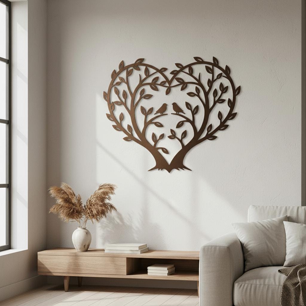✨ Heartfelt Grove Love Birds Metal Art – Romantic Tree of Life Decor | Modern Couple Gift ✨