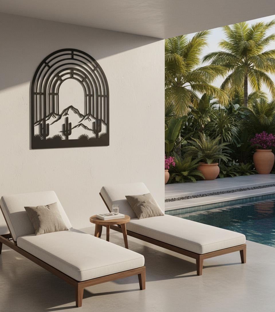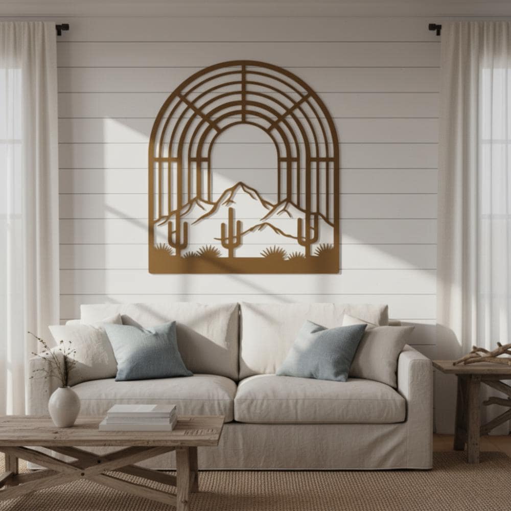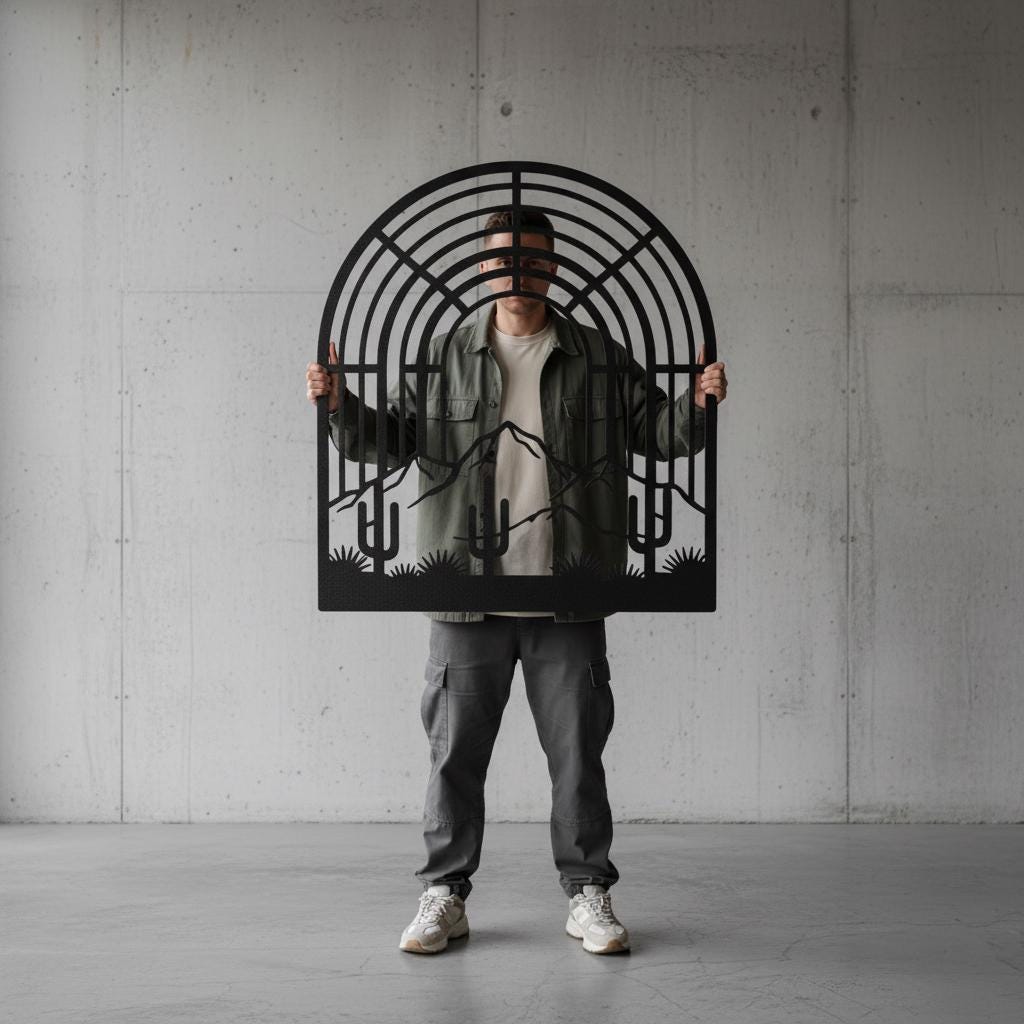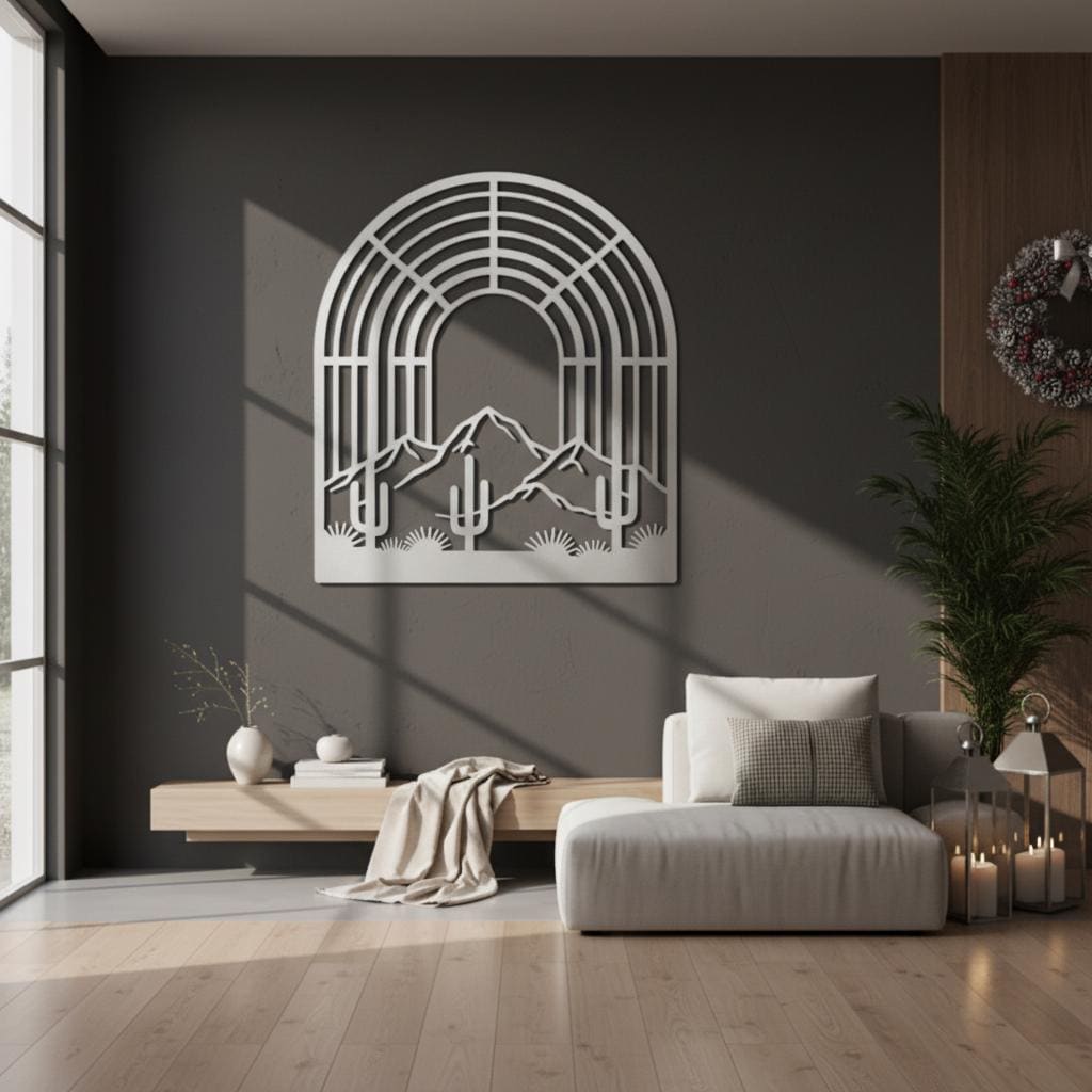 ✨ Desert Mountain Arch Metal Wall Art – Modern Boho Cactus Decor | Southwestern Landscape Home Gift ✨