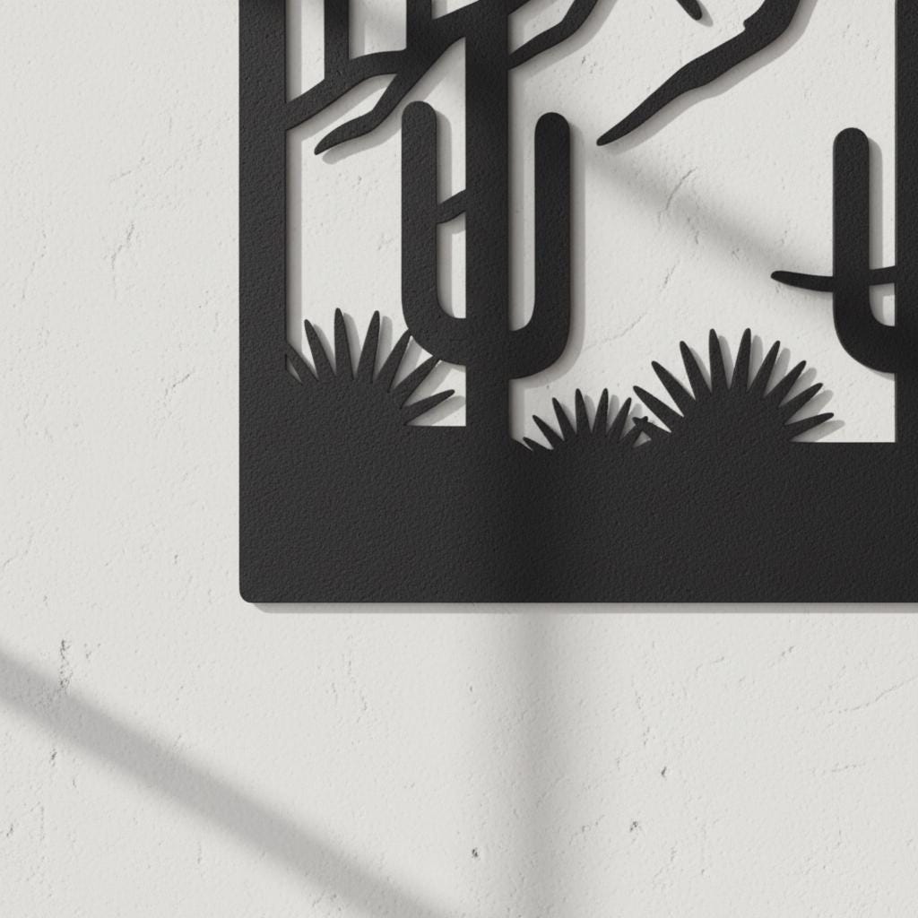 * Precision laser-cut from high-grade steel to capture the delicate details of the cactus and mountains.