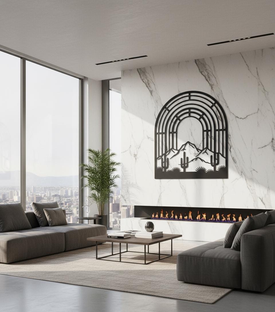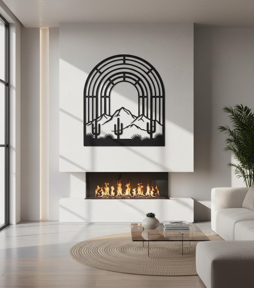 Elevate your interior with Radiant Archscape — a calming fusion of geometry and desert landscapes. Order your Desert Mountain Arch Metal Wall Art today and bring warmth, structure, and serene style to your home. This premium metal art piece is the perfect statement for any modern-boho or Southwestern-inspired space.