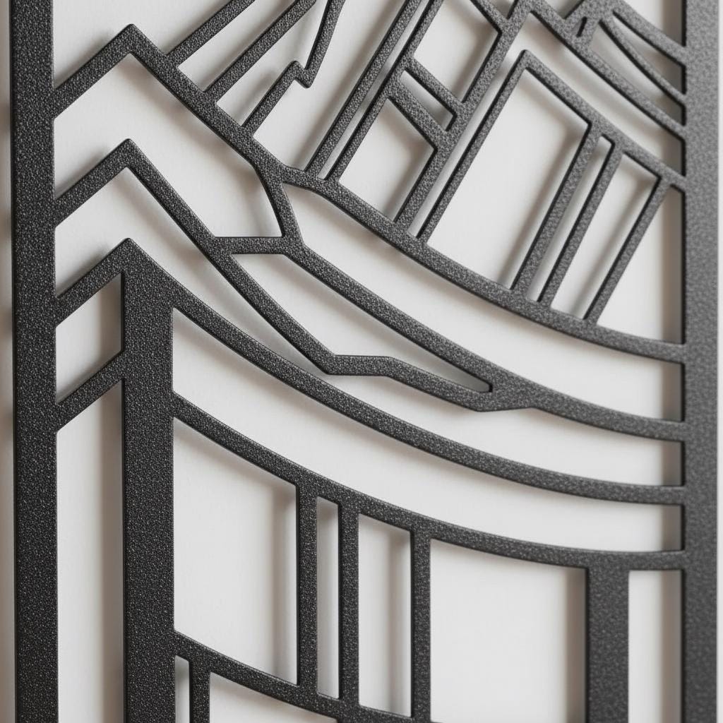 Bring architectural rhythm and balance to your space with our captivating Art Deco Mountain Sun Metal Wall Art. This sculptural metal wall art piece beautifully blends sunrise geometry with angular mountain peaks, capturing the essence of Art Deco architecture: bold lines, rising symmetry, and timeless elegance. Expertly laser-cut from premium, durable steel, this modern art piece adds a refined statement to any space. It’s the perfect design-driven decor for modern homes, boutique cafés, studios, and luxury spaces seeking a sophisticated focal point.