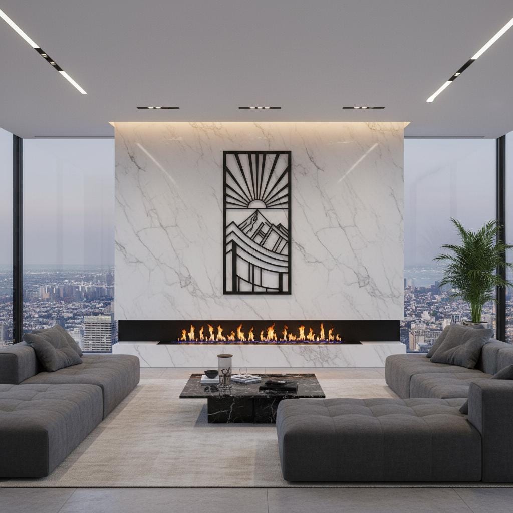 Transform your walls with Art Deco Mountain Sun — a modern sculpture shaped by light, geometry, and architectural rhythm. Order yours today and elevate your space instantly with this sophisticated and timeless statement piece.