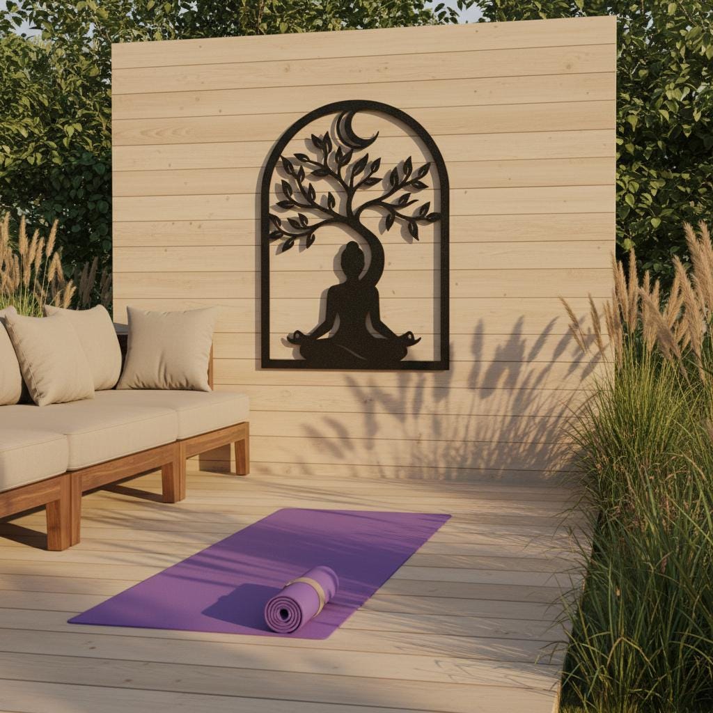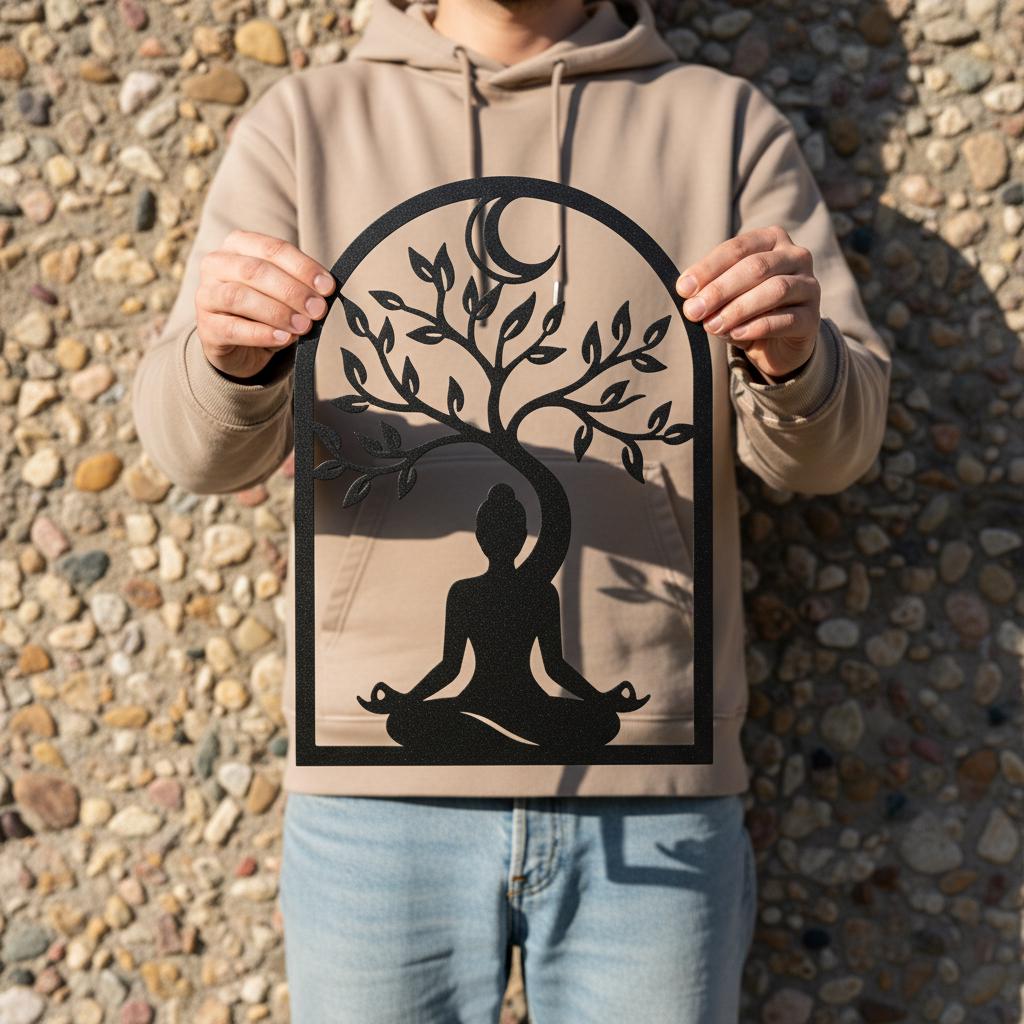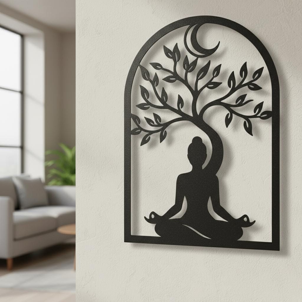 * Superior Craftsmanship – Precision laser-cut from high-quality steel with smooth, flowing lines that highlight the tree branches and tranquil figure.