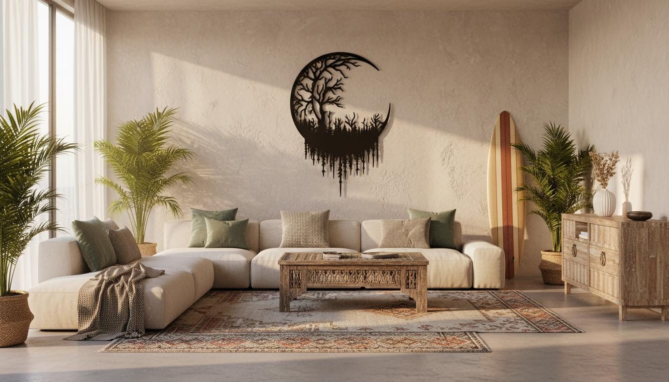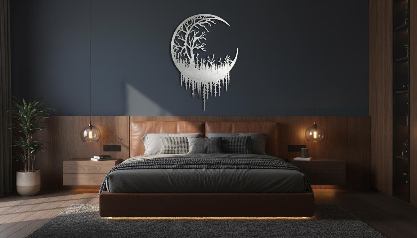 ✨ Moon Tree Forest Metal Wall Art | Mysterious Shadow Decor | Supernatural Woodland Theme Gift ✨