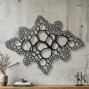 This biomorphic metal wall art explores the hidden geometry of nature — cellular growth, organic expansion, and fluid structural movement translated into architectural steel.
