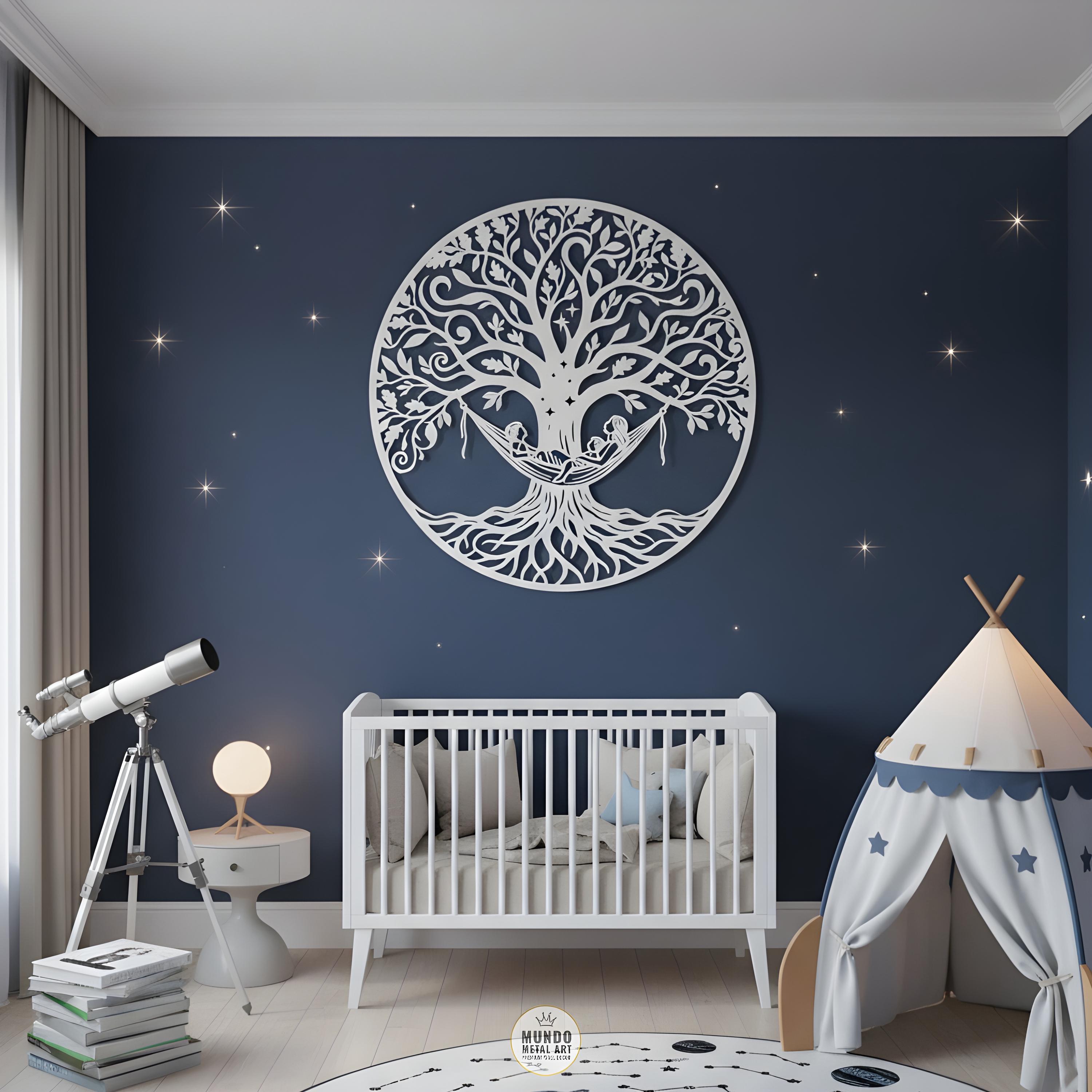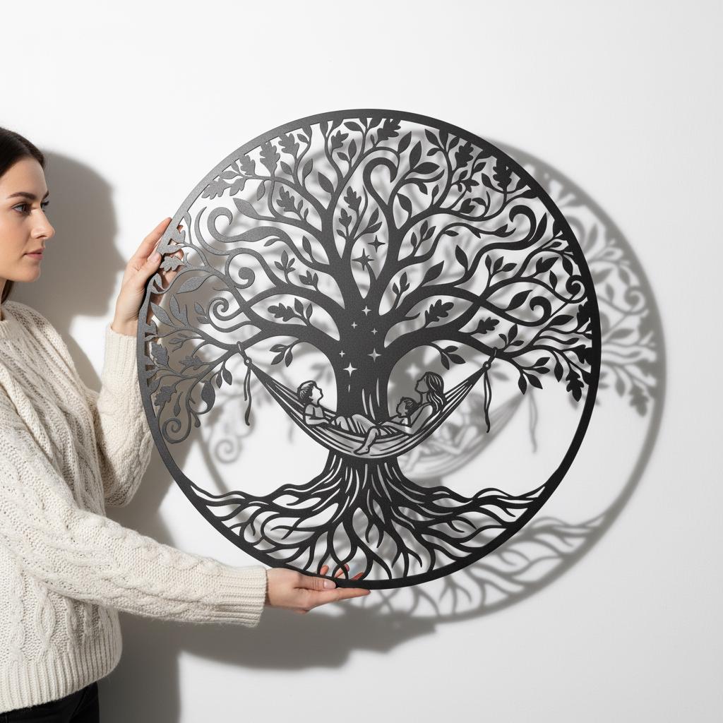 Tree of Life Metal Decor, Mother and Child Hammock, Family Gift, Mothers Day Decor
